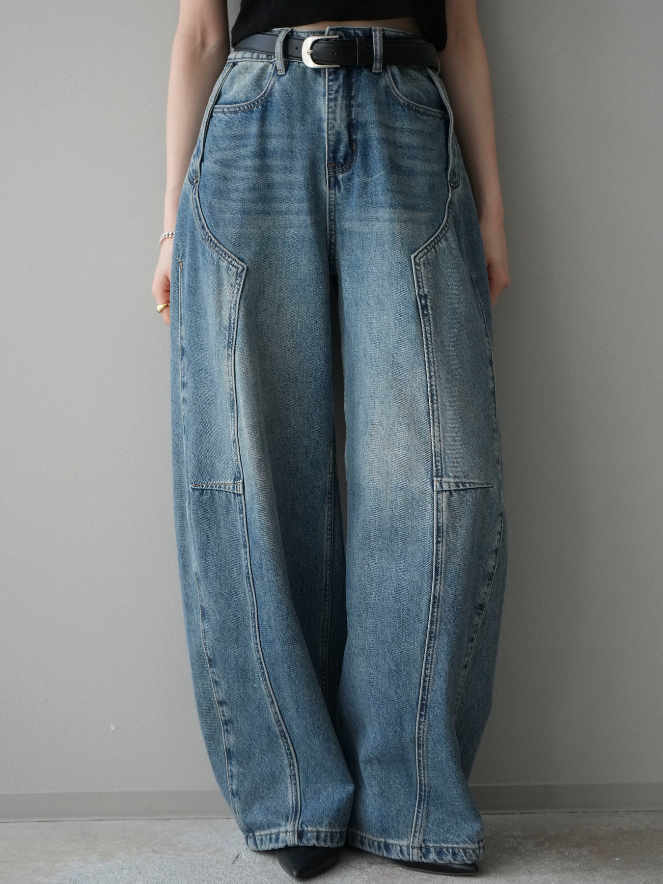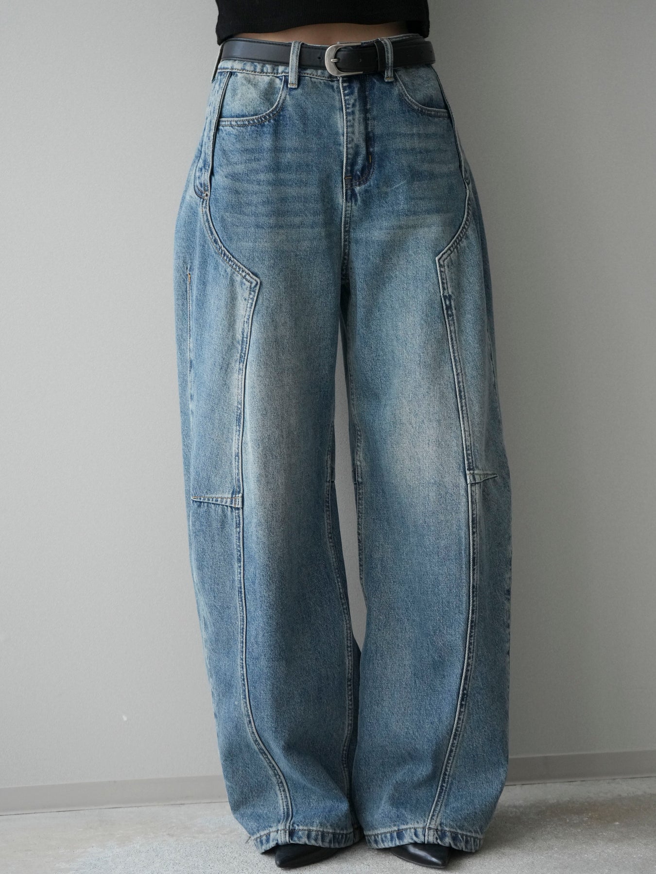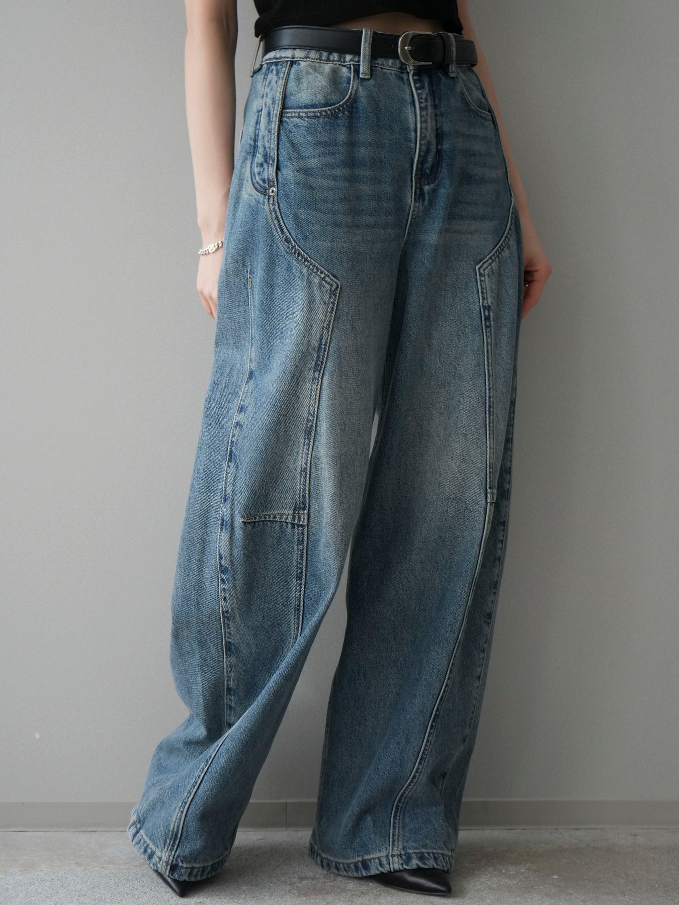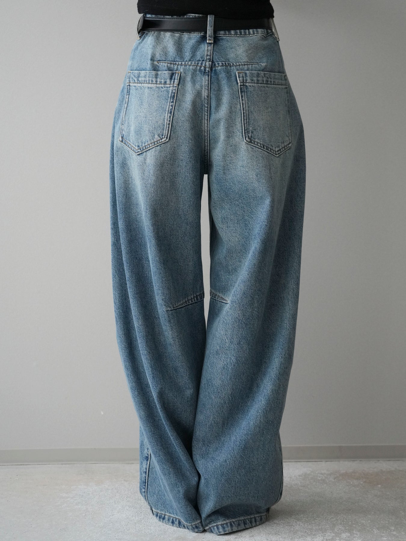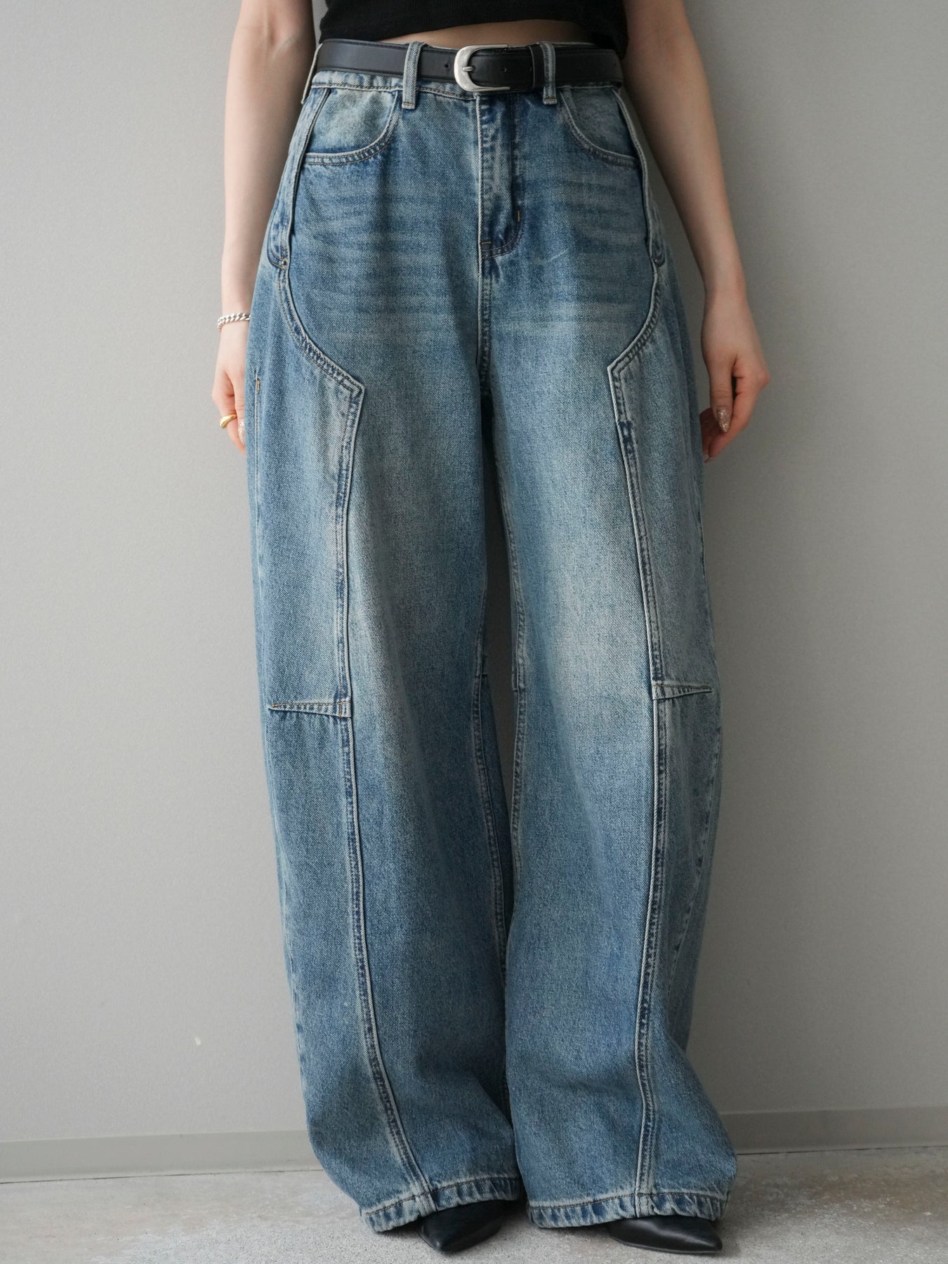[予約]ベルト付3Dカーブデニムパンツ/blue