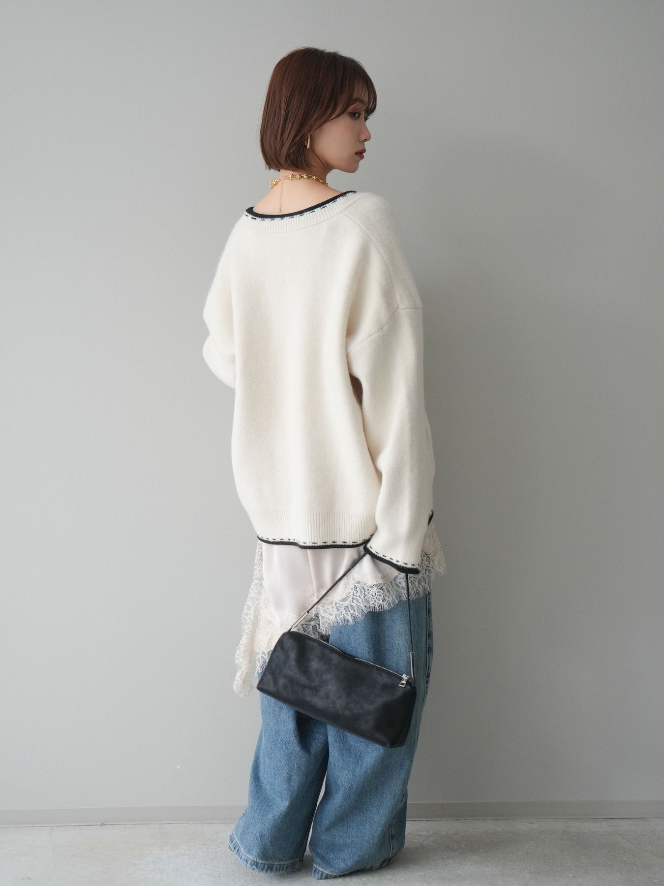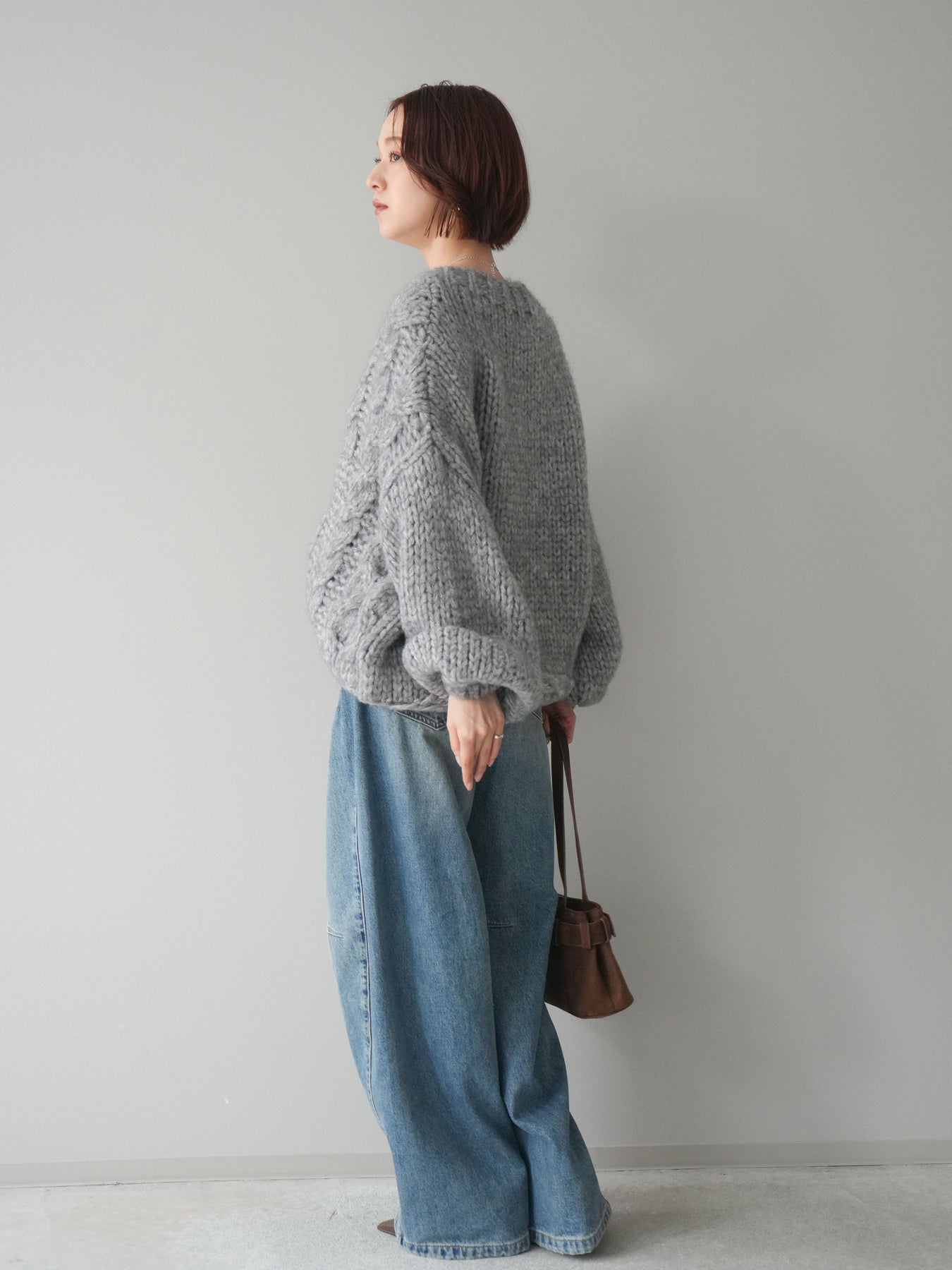 ・お手入れ方法:水温30℃以下手洗いでのお洗濯をお薦めします。素材の特性上、洗濯の際に色落ちが生じる恐れがありますので単独で・短時間でのお洗濯をお薦めします。裏返してネットに入れ手洗いコースで洗濯、洗濯後は形を整えてから干してください。※タンブラー乾燥は控えてください。濡れたままの状態で擦れると、色落ち色移りすることがあります。つけ置き洗いや雨や汗で濡れたまま放置は避け、速やかに処理してください。着用中の摩擦や汗、水濡れ、濃淡差があるものとの重ね着にご注意ください。また、素材の特性上伸びやすい為ハンガーの使用はお控えいただき畳んで保管ください。