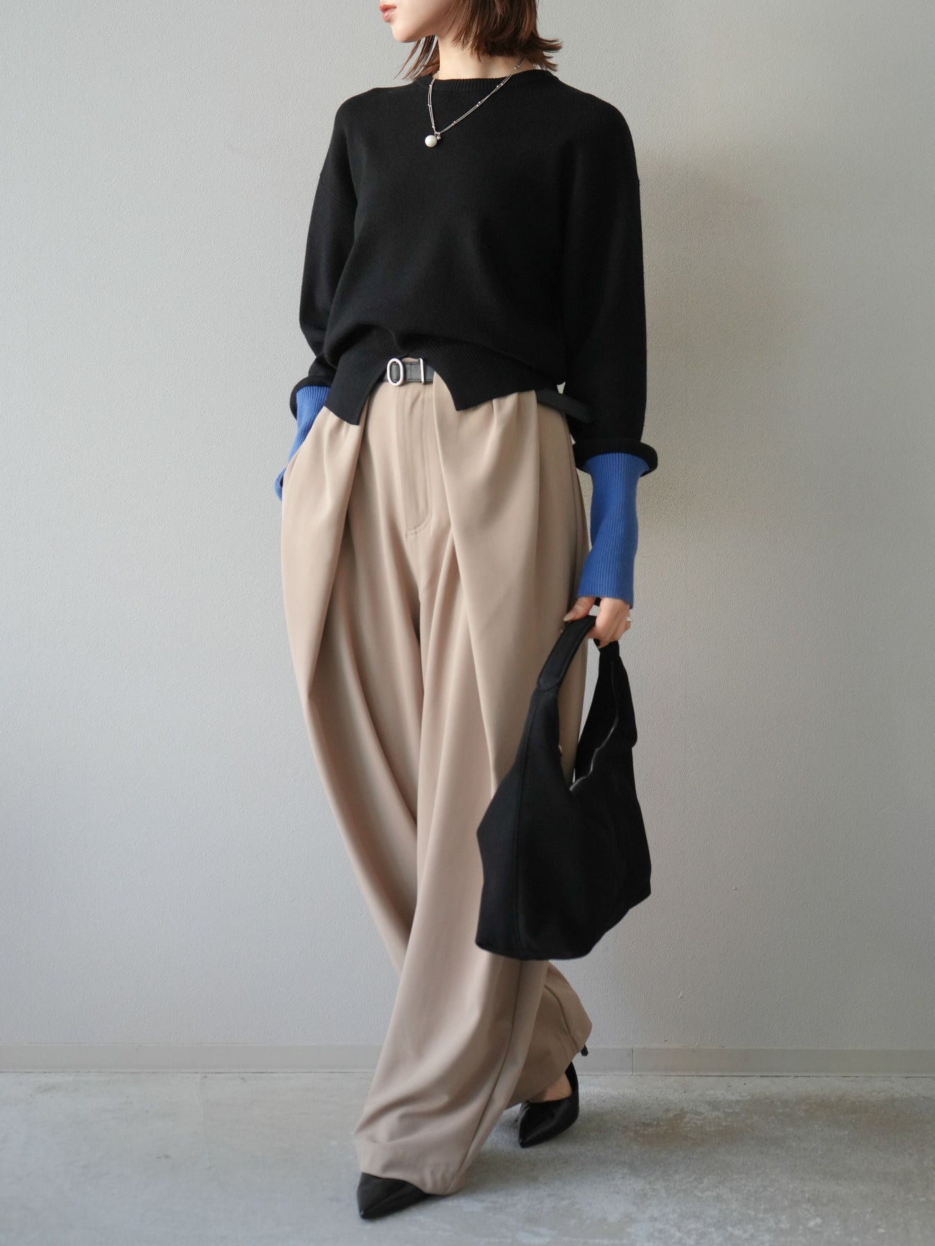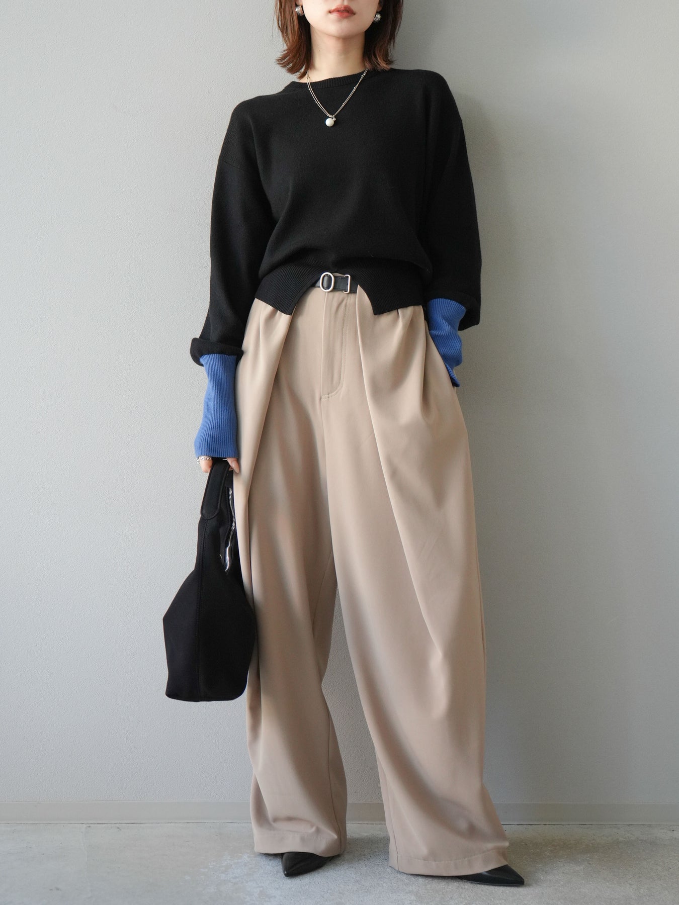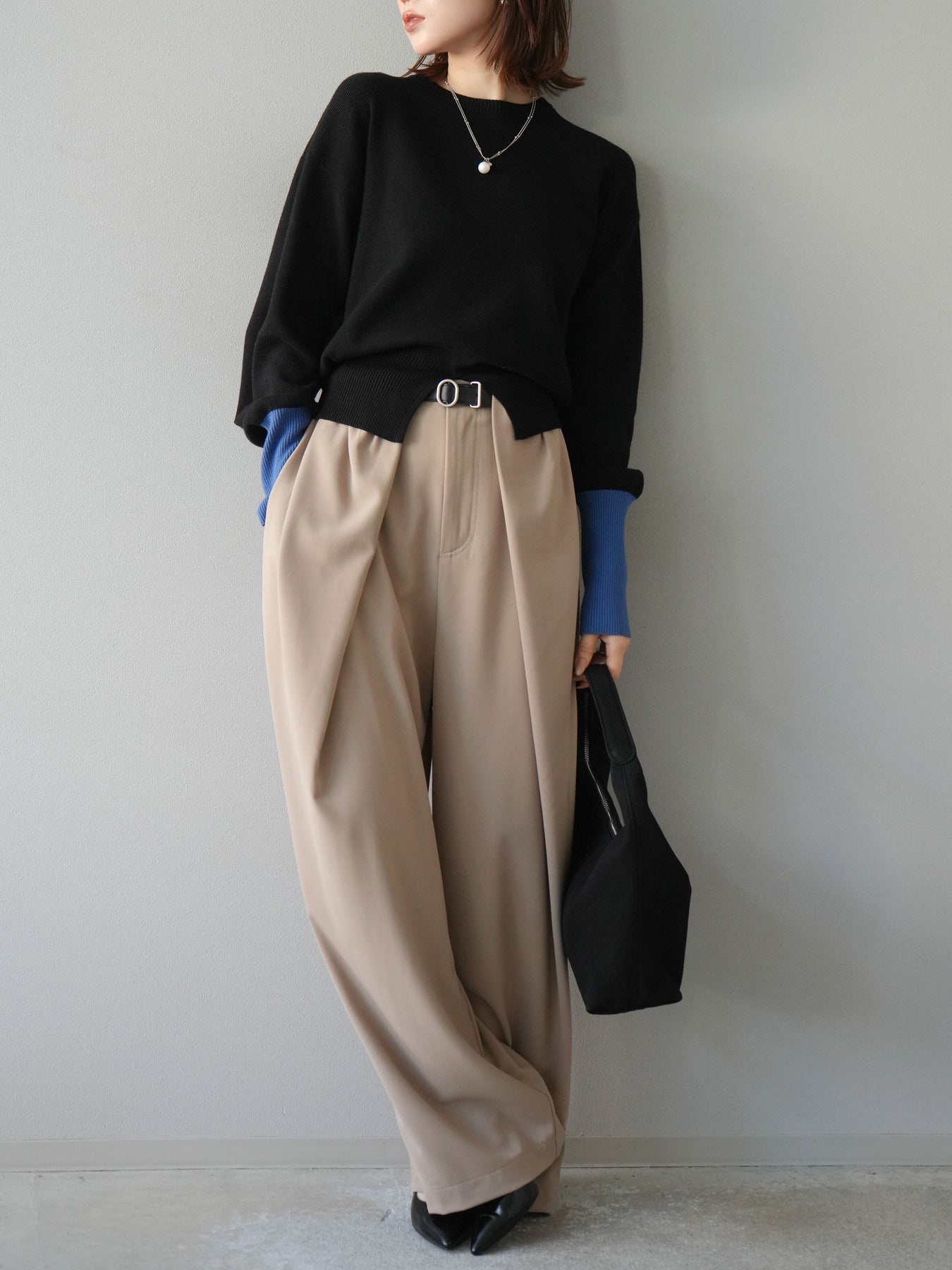 タックを深めに入れた立体感のあるシルエットが魅力のワイドパンツ。付属のベルトがウエストラインを引き締め、すっきりとした印象に仕上げてくれます。ゆったりとしたシルエットながらも落ち感のある生地を使用することで、上品さとリラックス感を両立。トップスをインしてもアウトしてもバランス良く着こなせ、オンオフ問わず活躍する万能な一本です。パンプスやブーツでモードに、スニーカーでカジュアルにと、足元次第で雰囲気を変えられるアイテムです。
