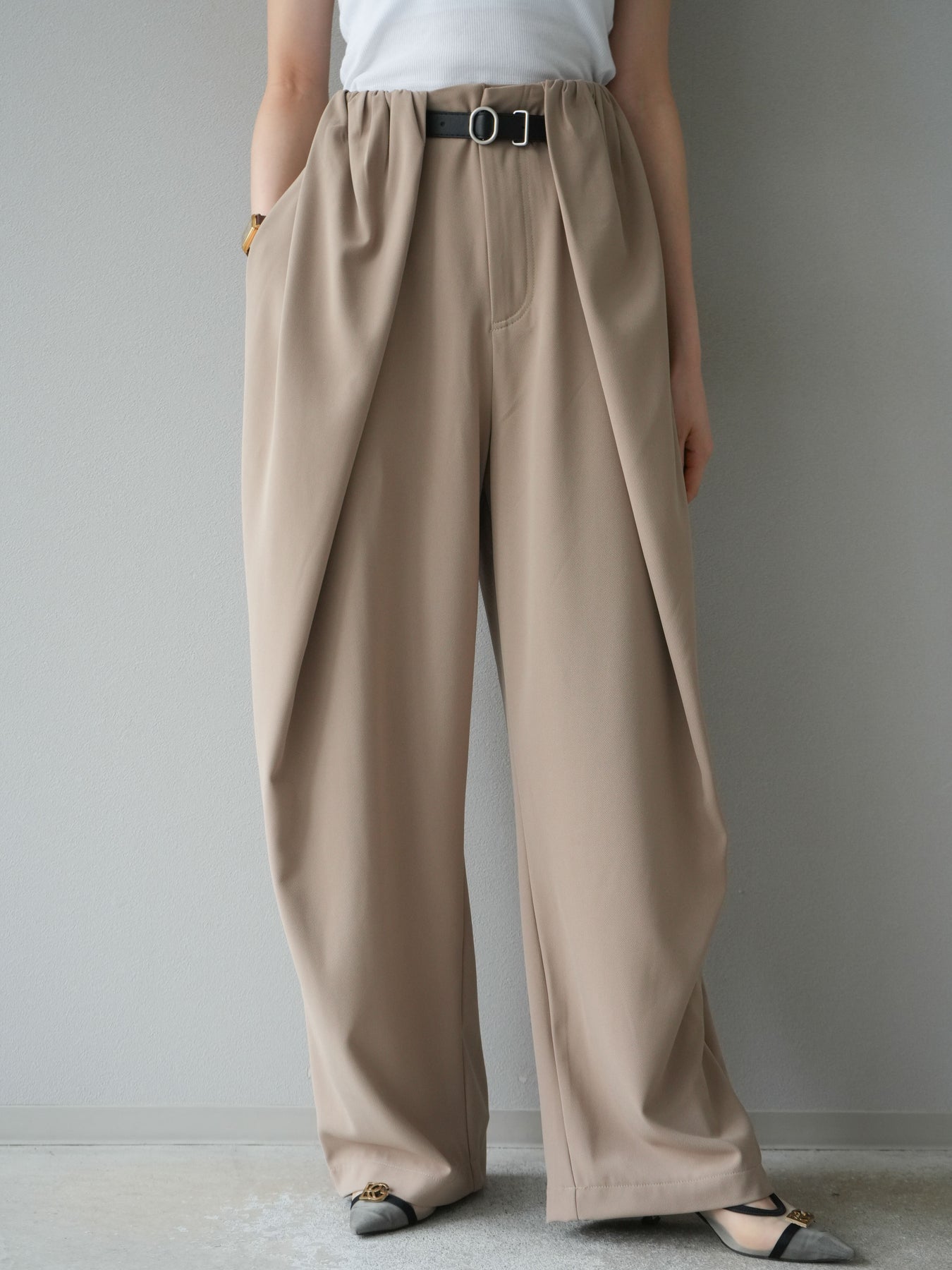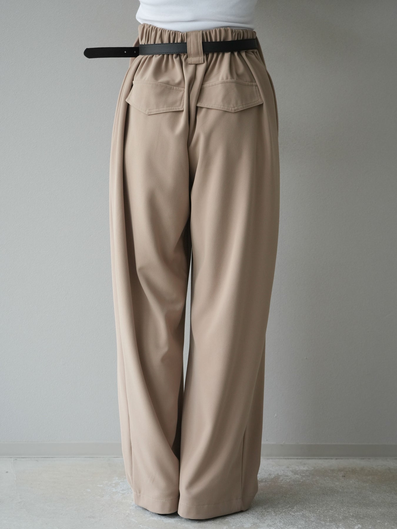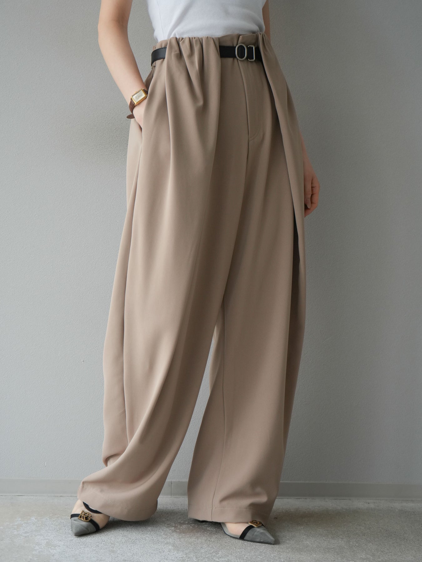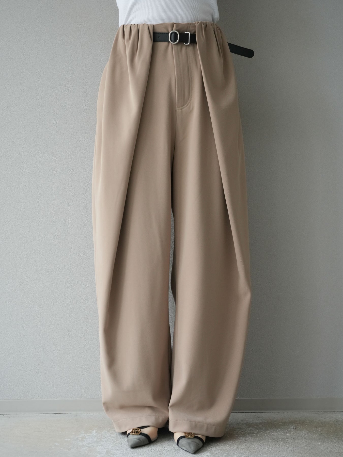 [予約]ベルト付タックワイドパンツ/ベージュ