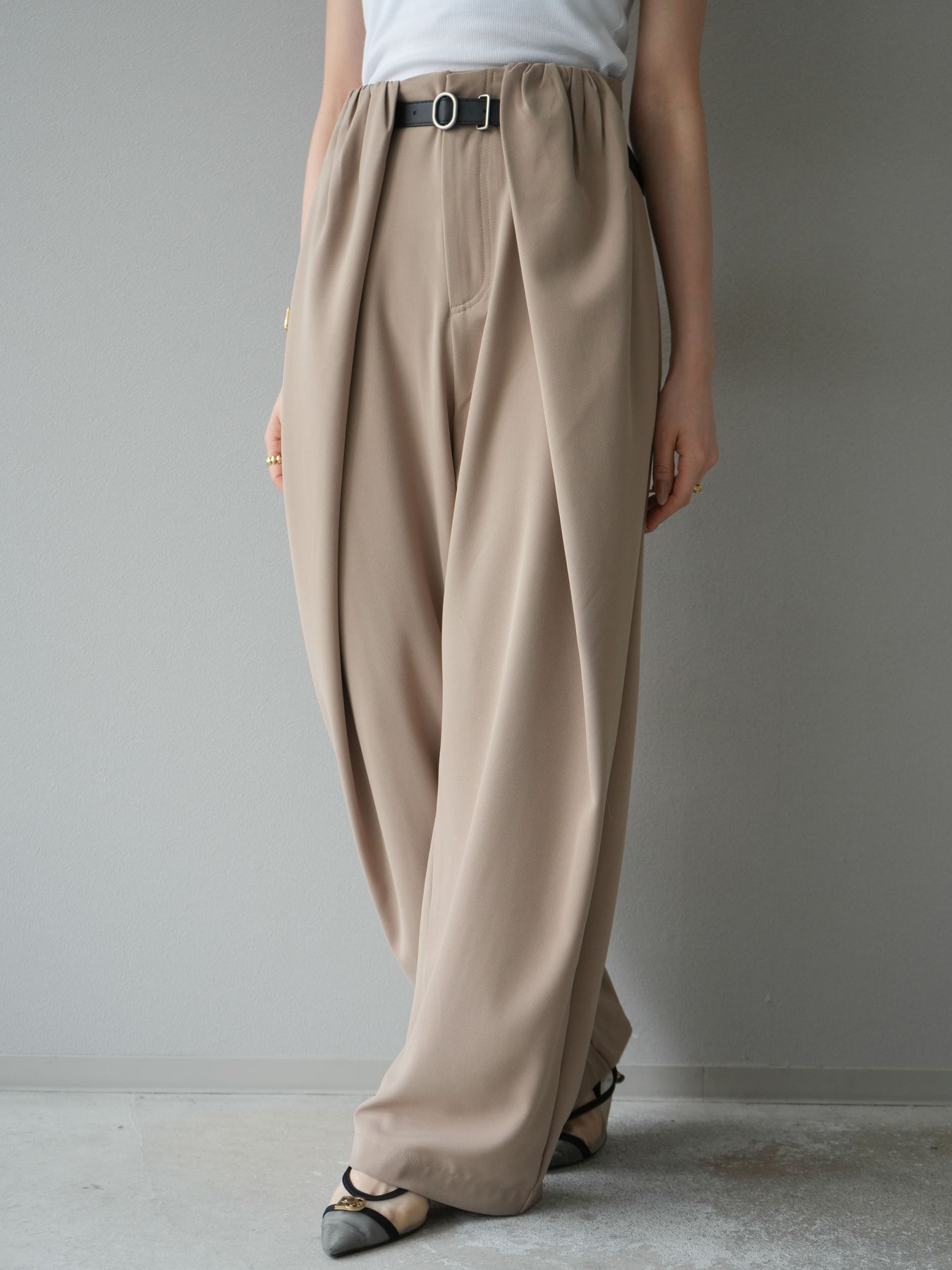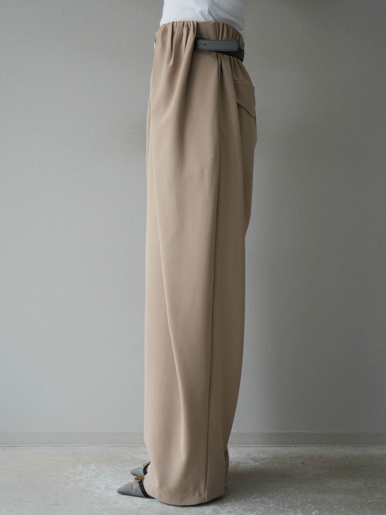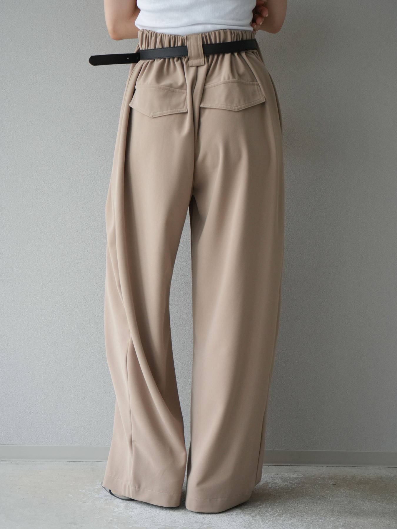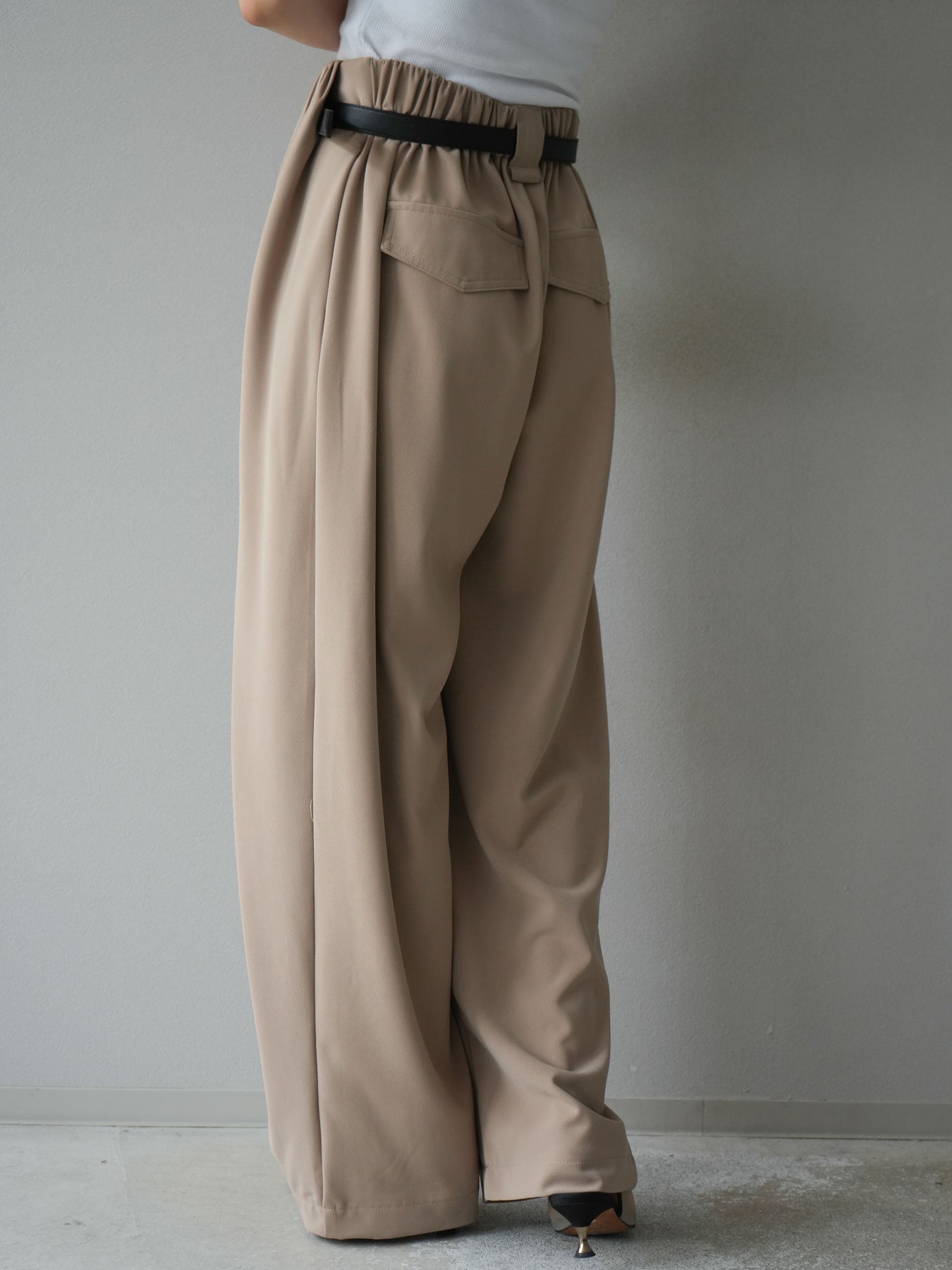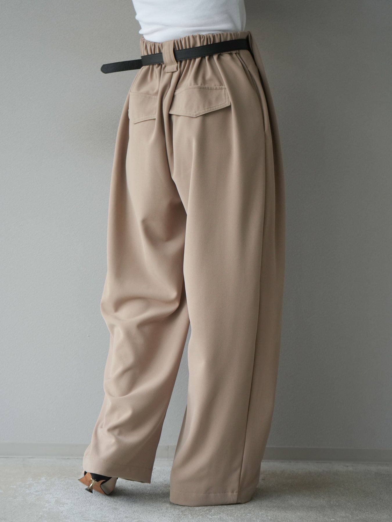 [予約]ベルト付タックワイドパンツ/ベージュ