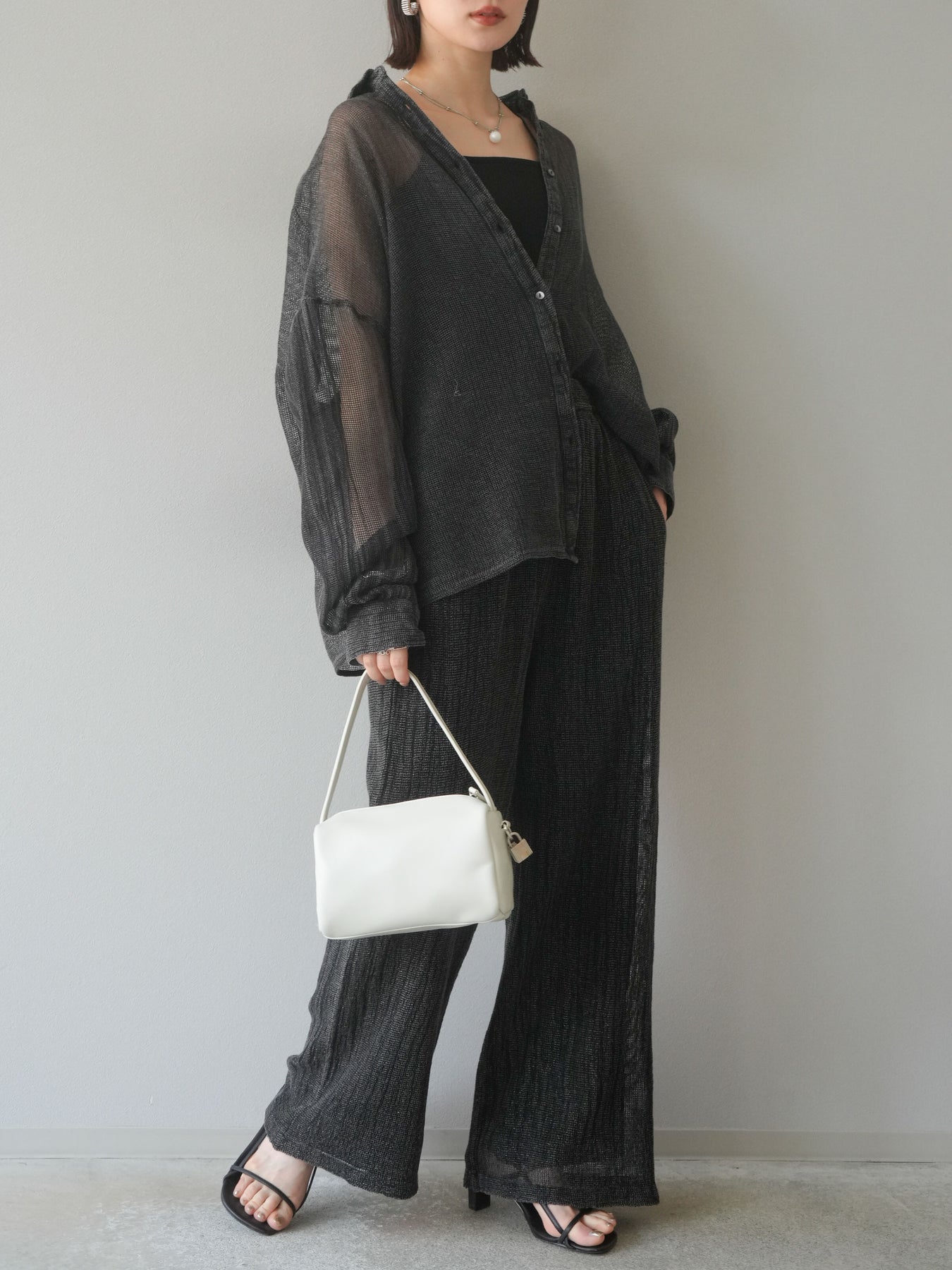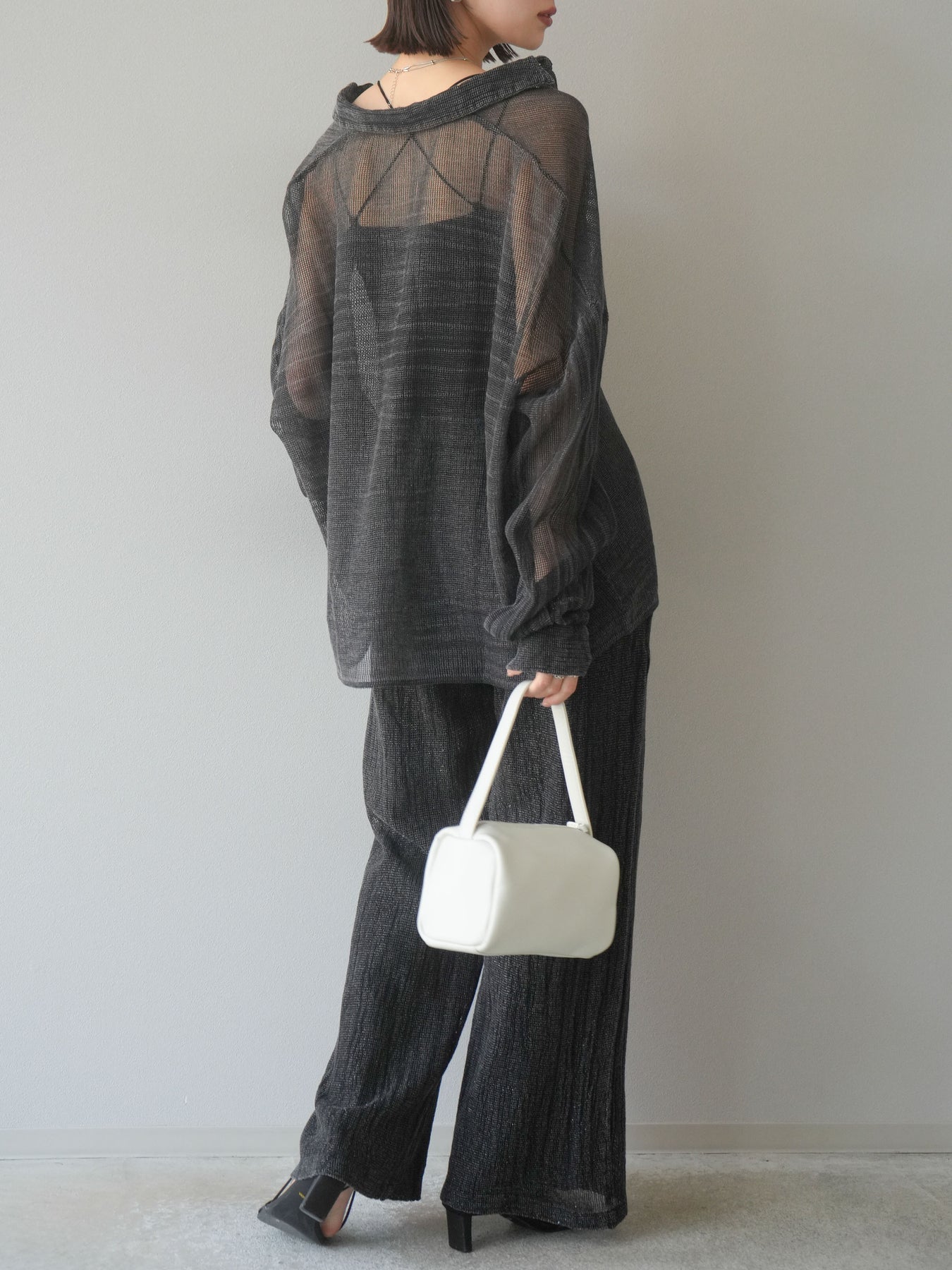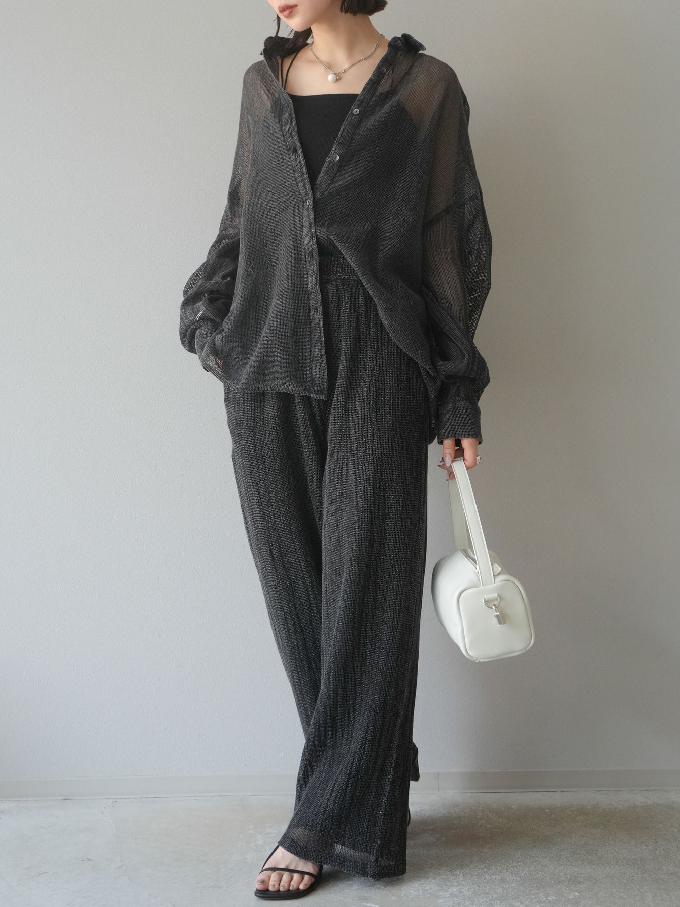 [予約]コットンラメメッシュイージーパンツ/グレー