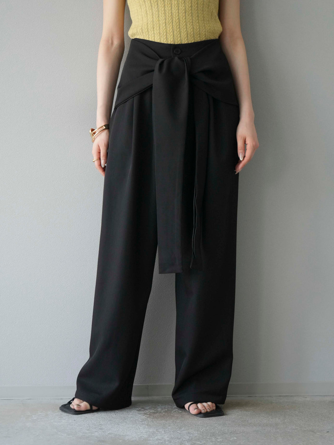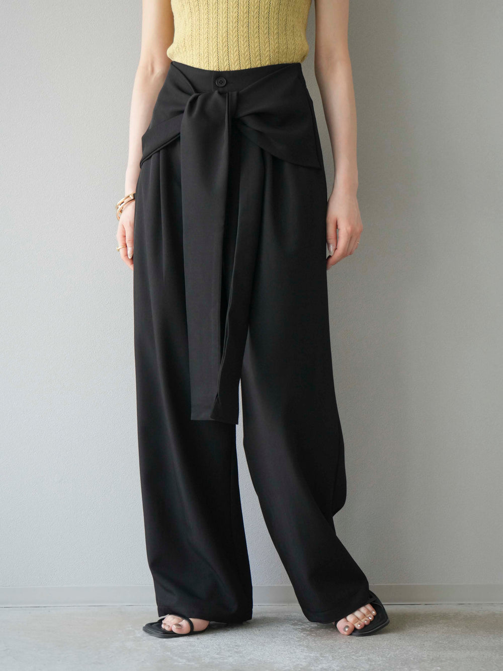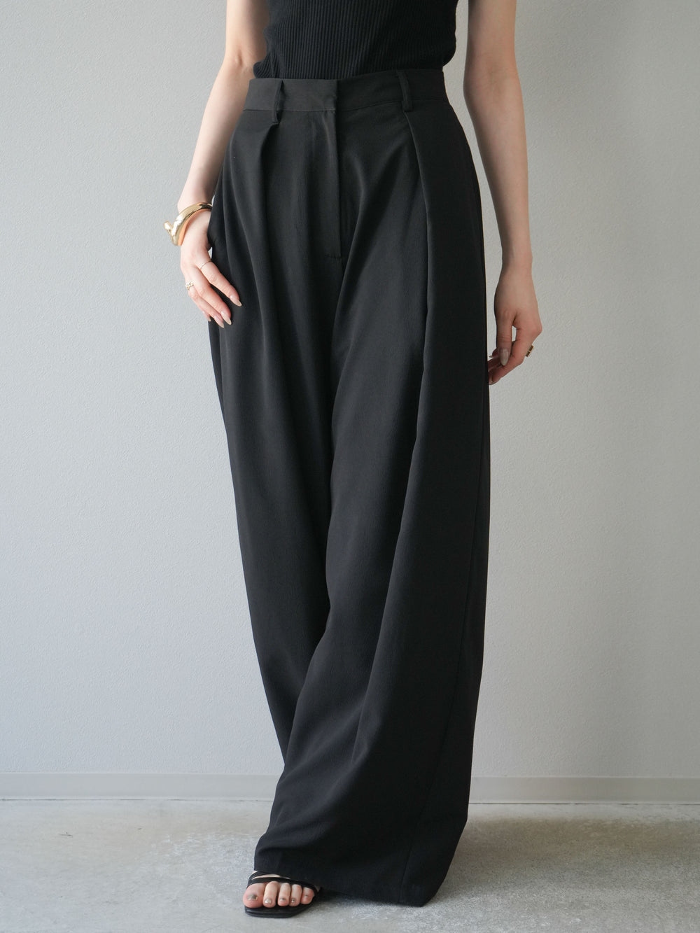 [予約]モチーフベルト付スエードタックワイドパンツ/black