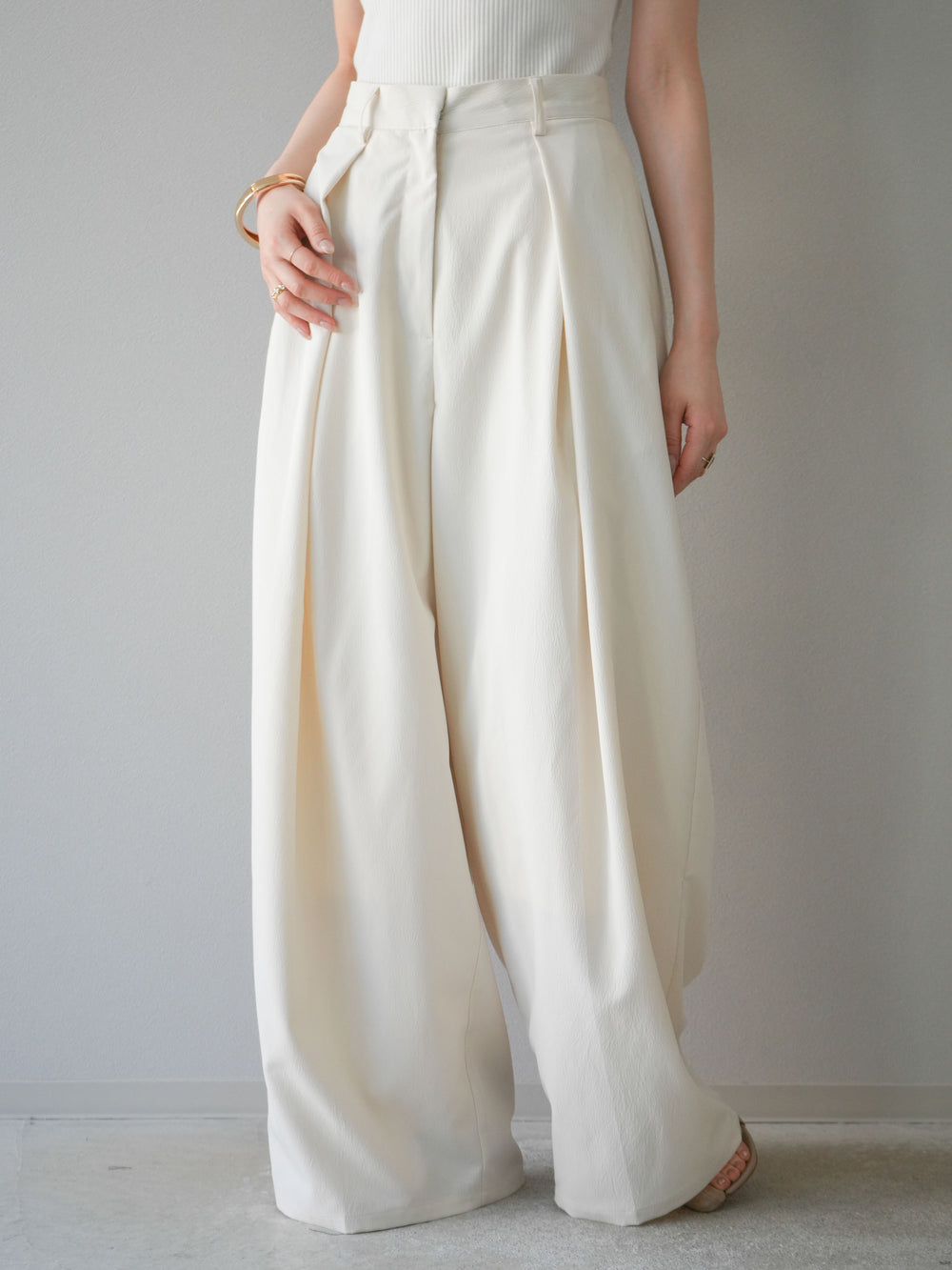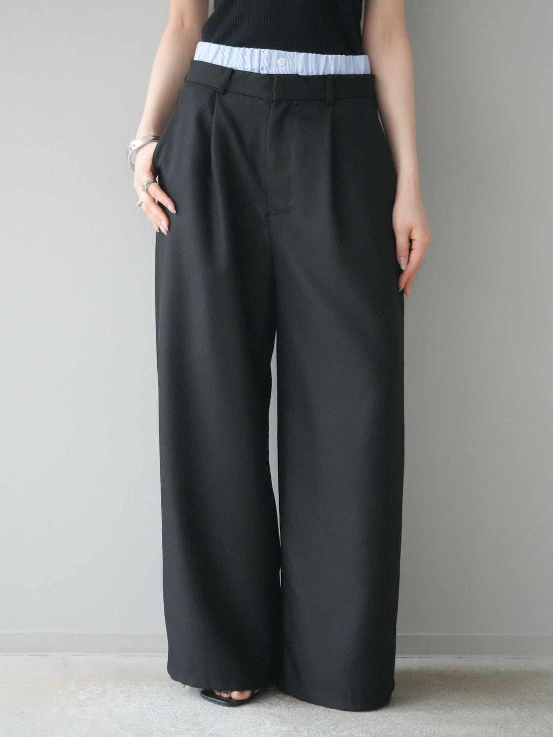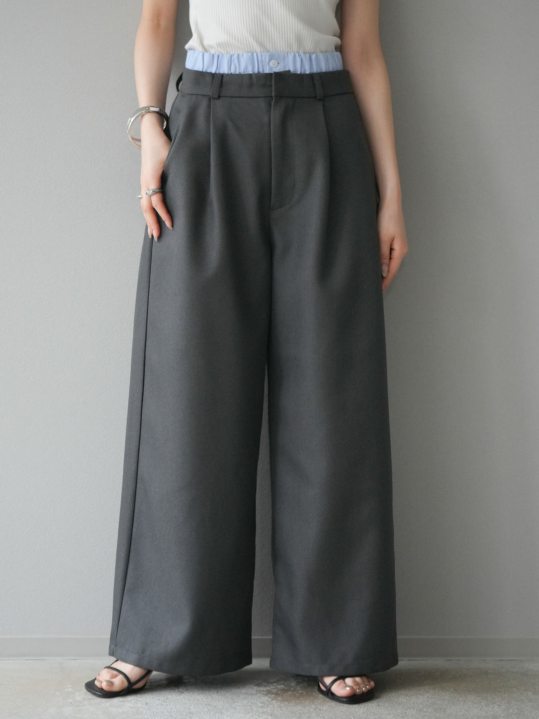 [予約]モチーフベルト付スエードタックワイドパンツ/black