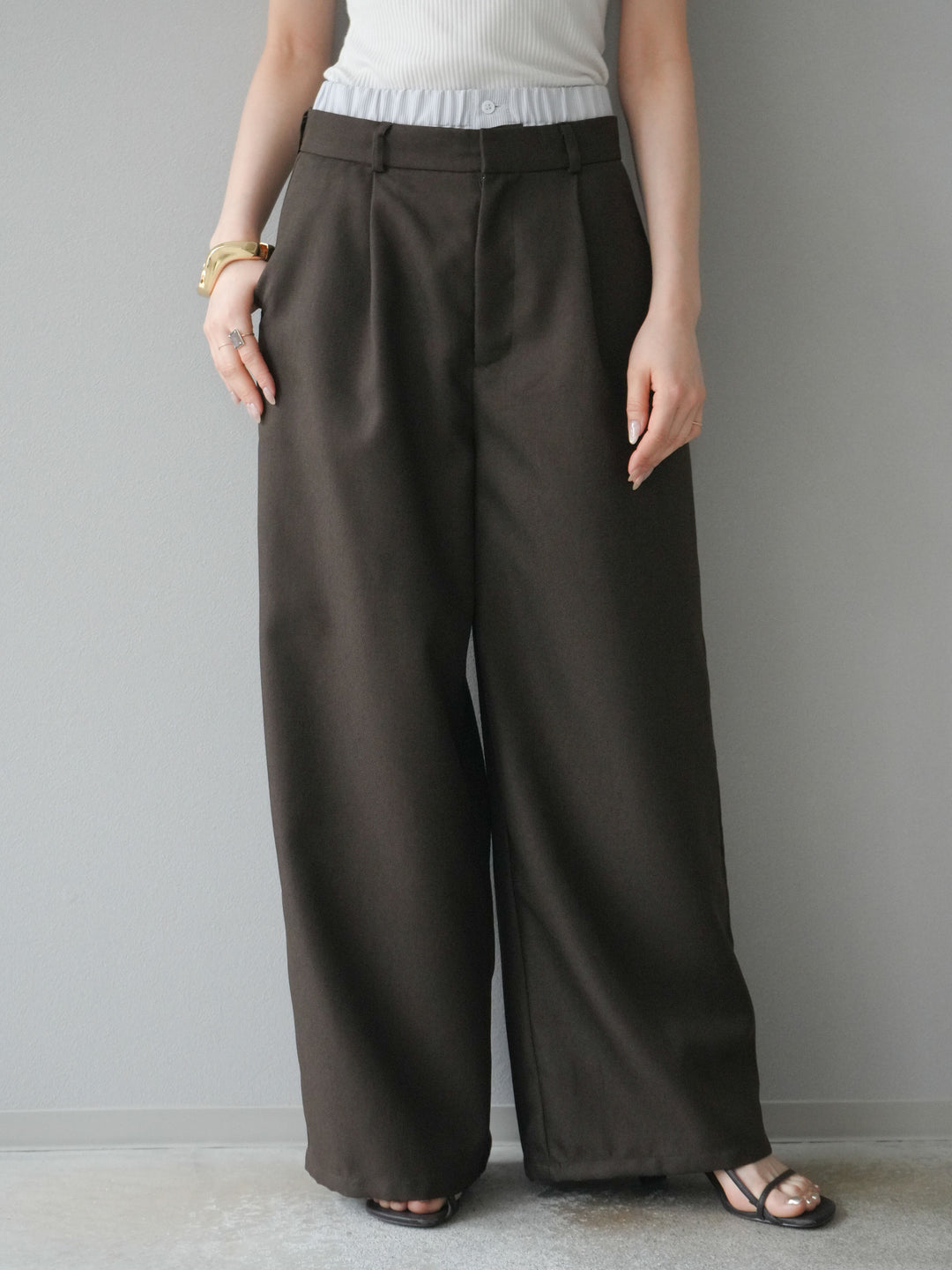 [予約]モチーフベルト付スエードタックワイドパンツ/brown