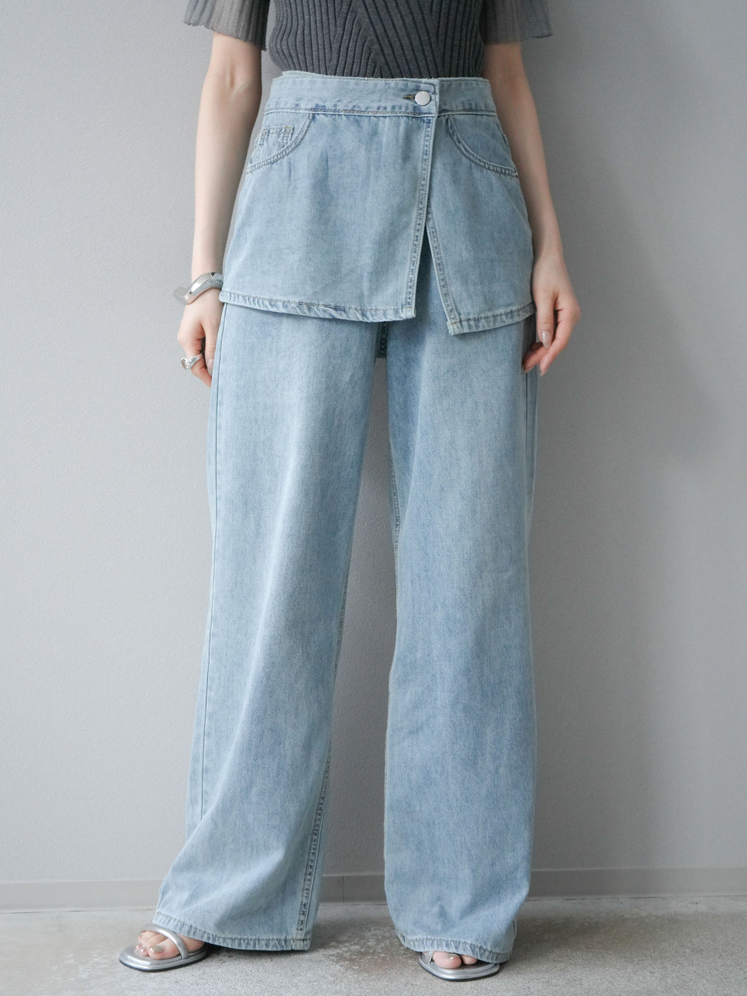 [予約]サイドフリンジワイドデニムパンツ/navy