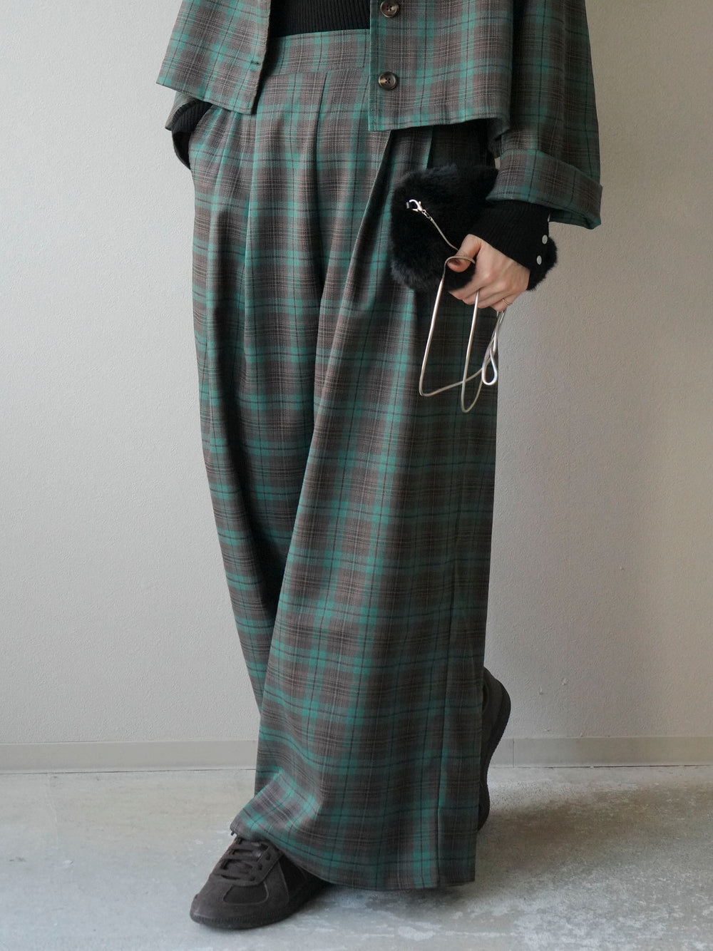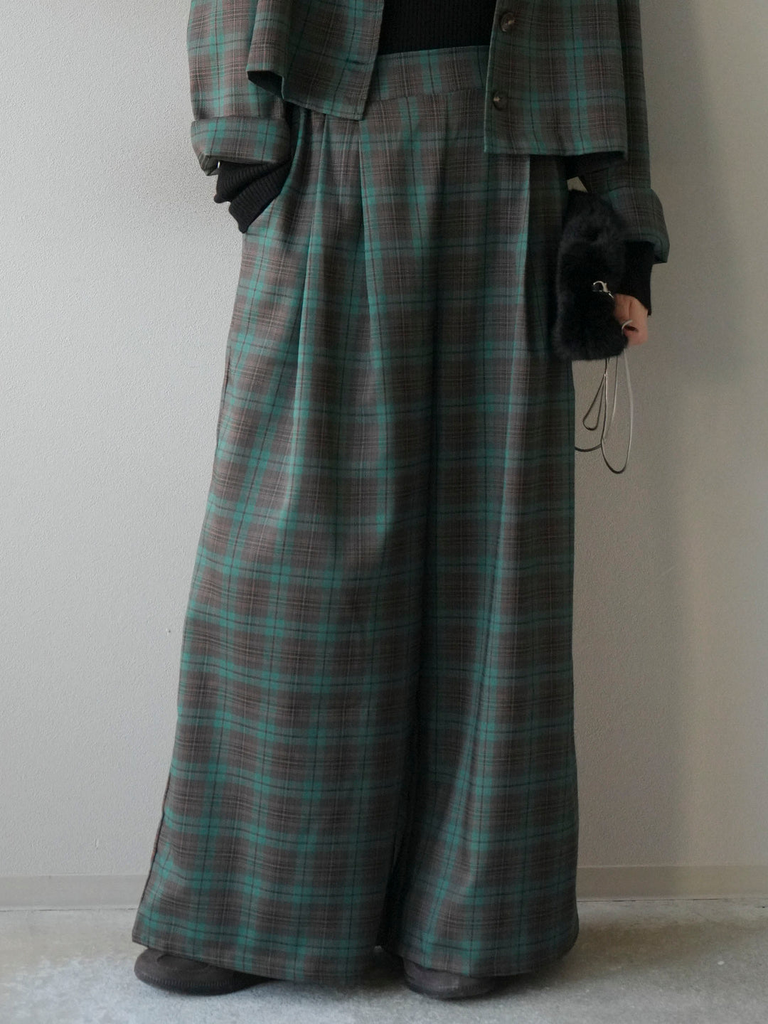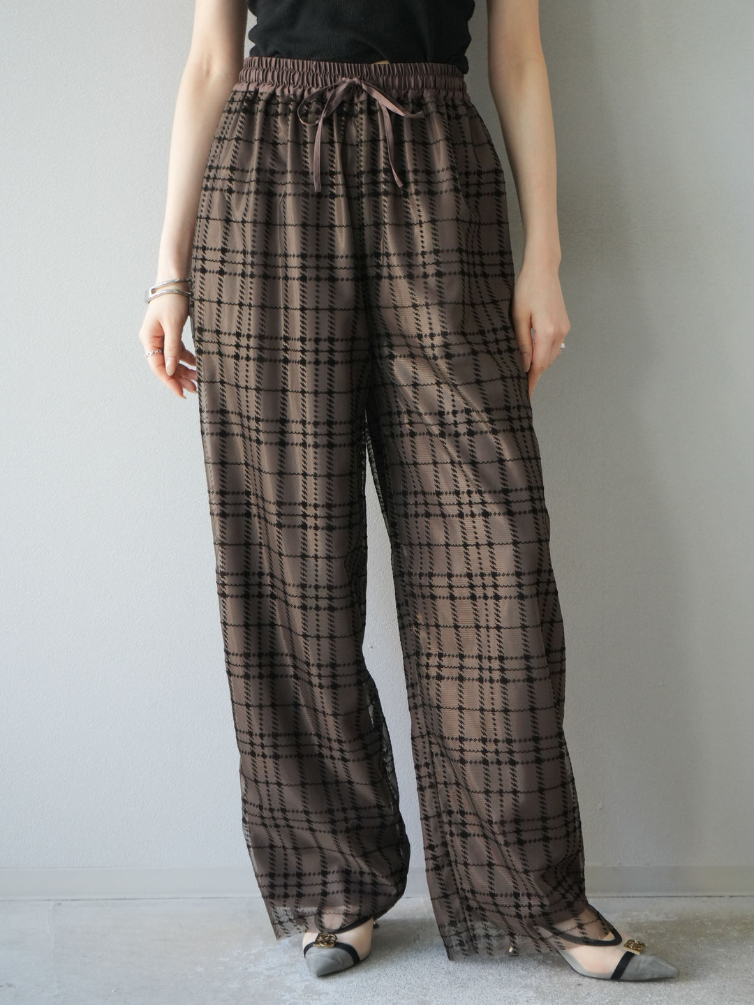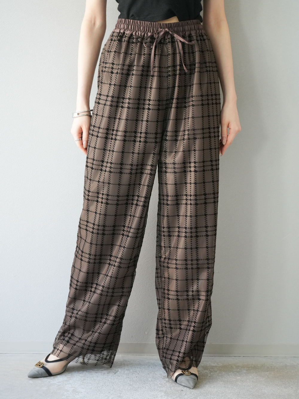 [予約]チェック柄チュールドッキングイージーパンツ/ブラウン
