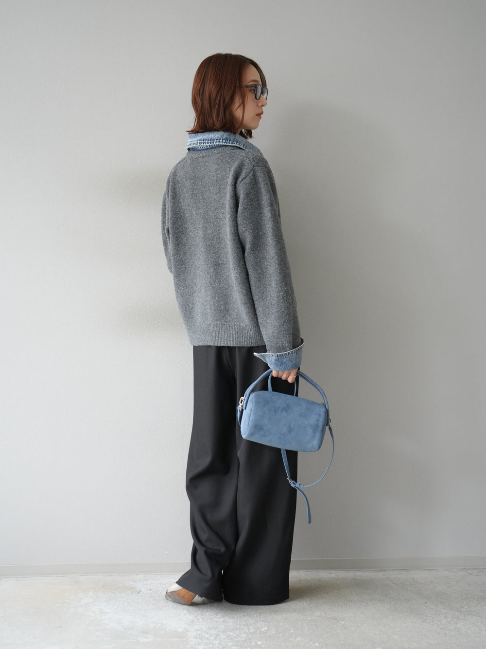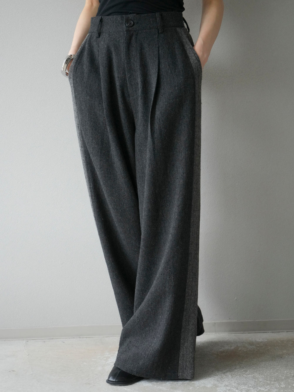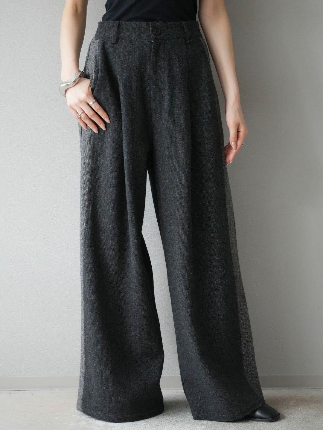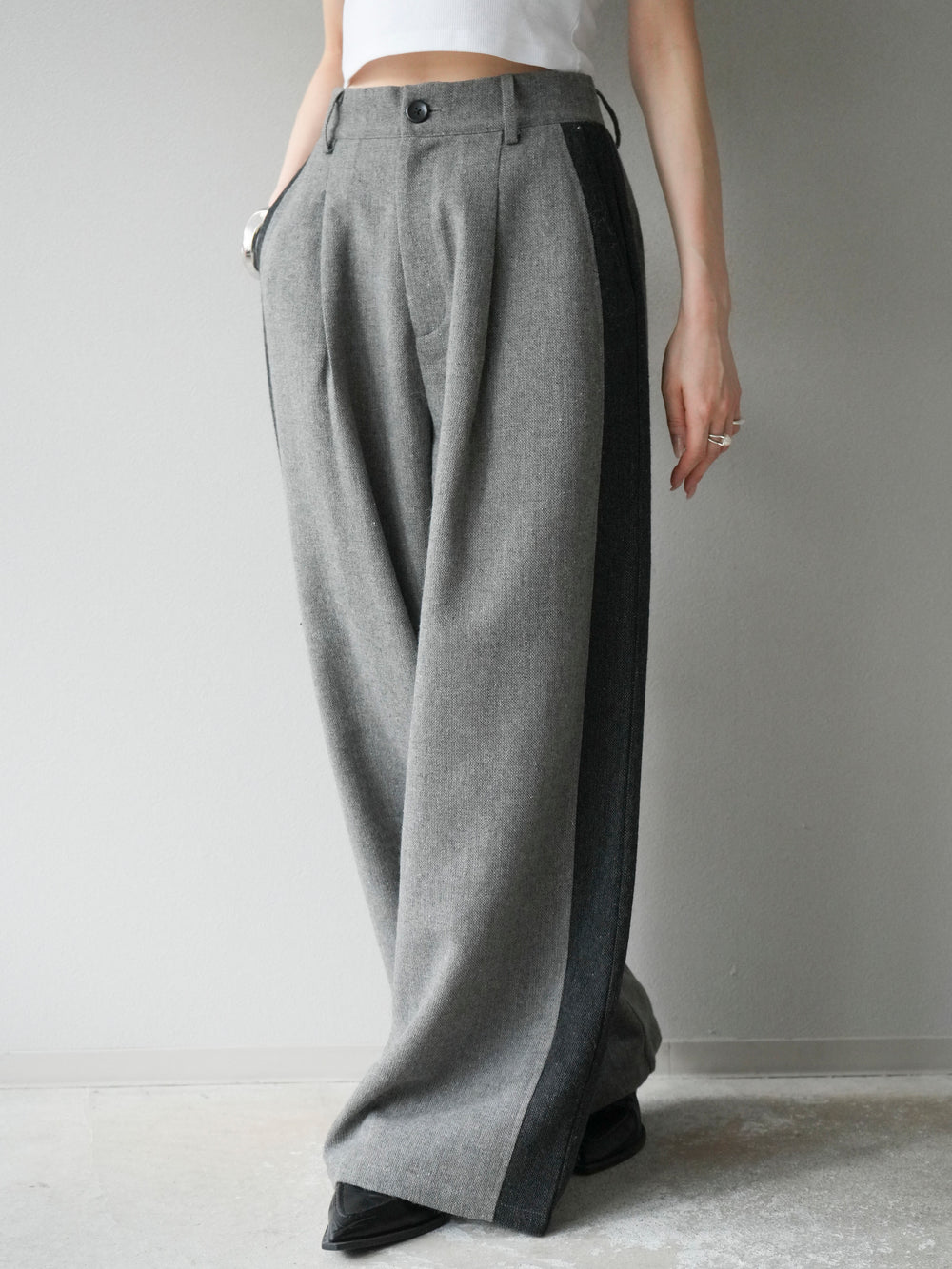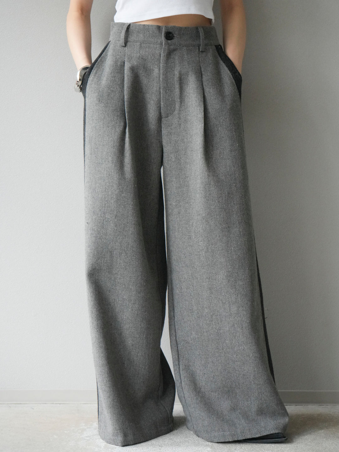 [予約]ツイードサイド配色ワイドパンツ/グレー