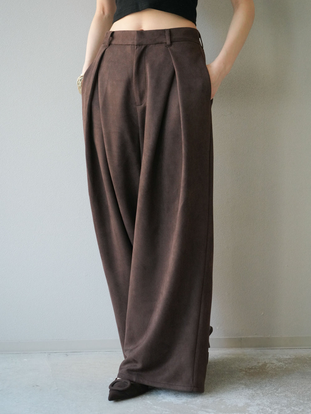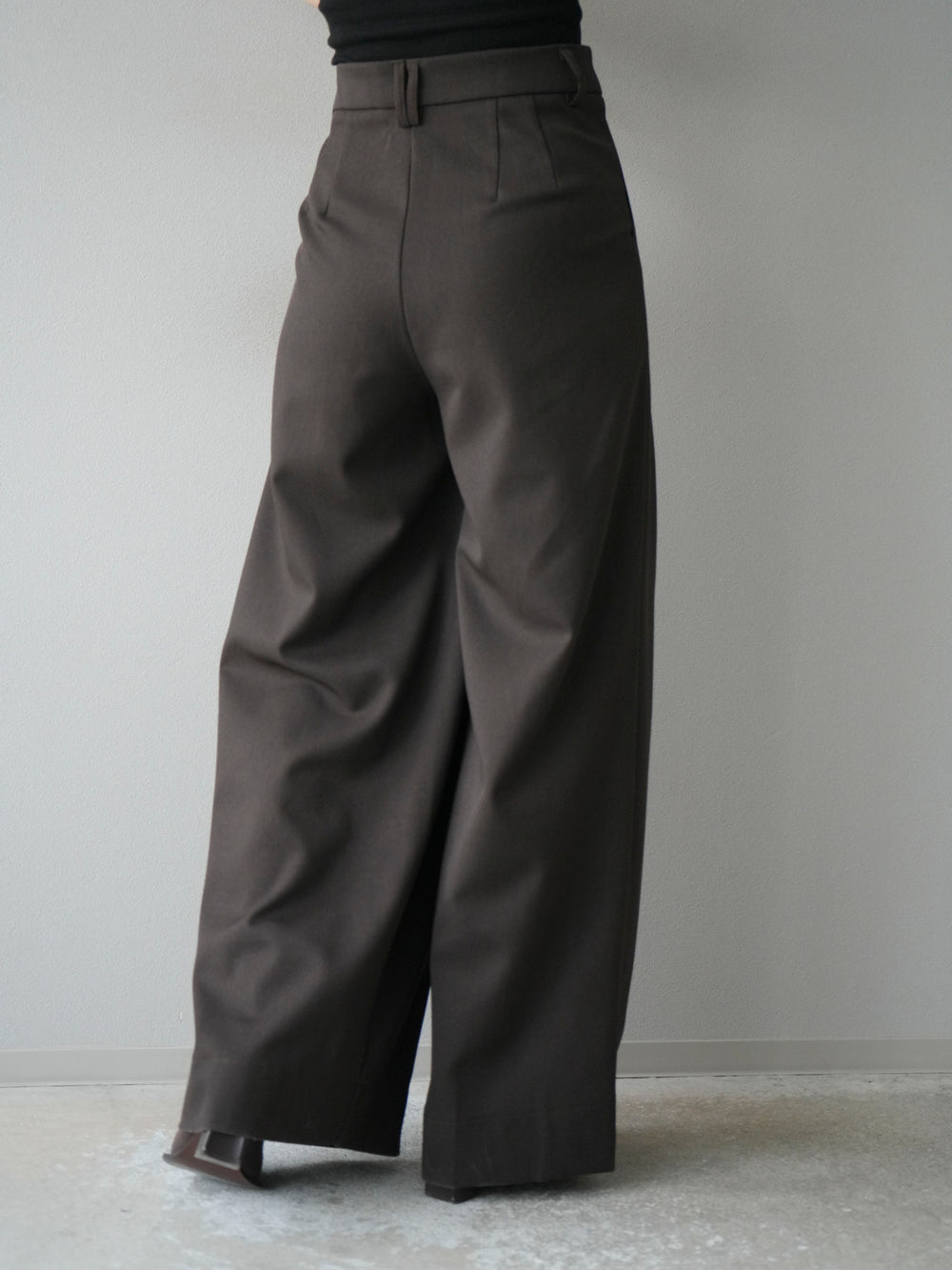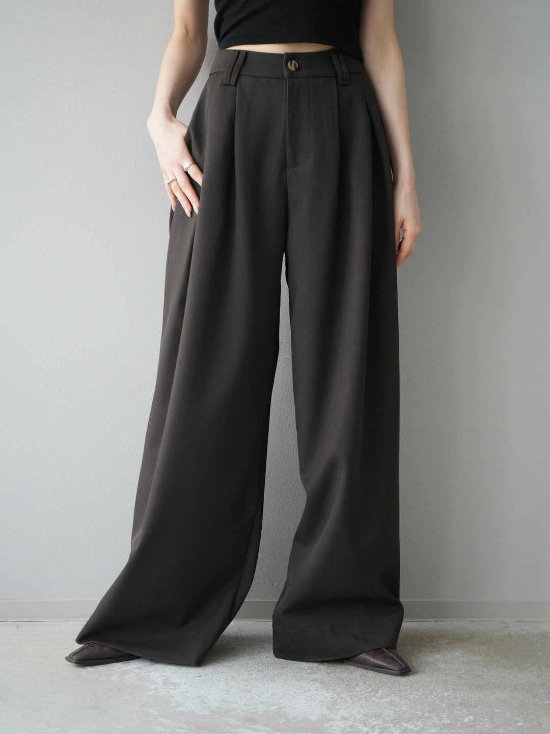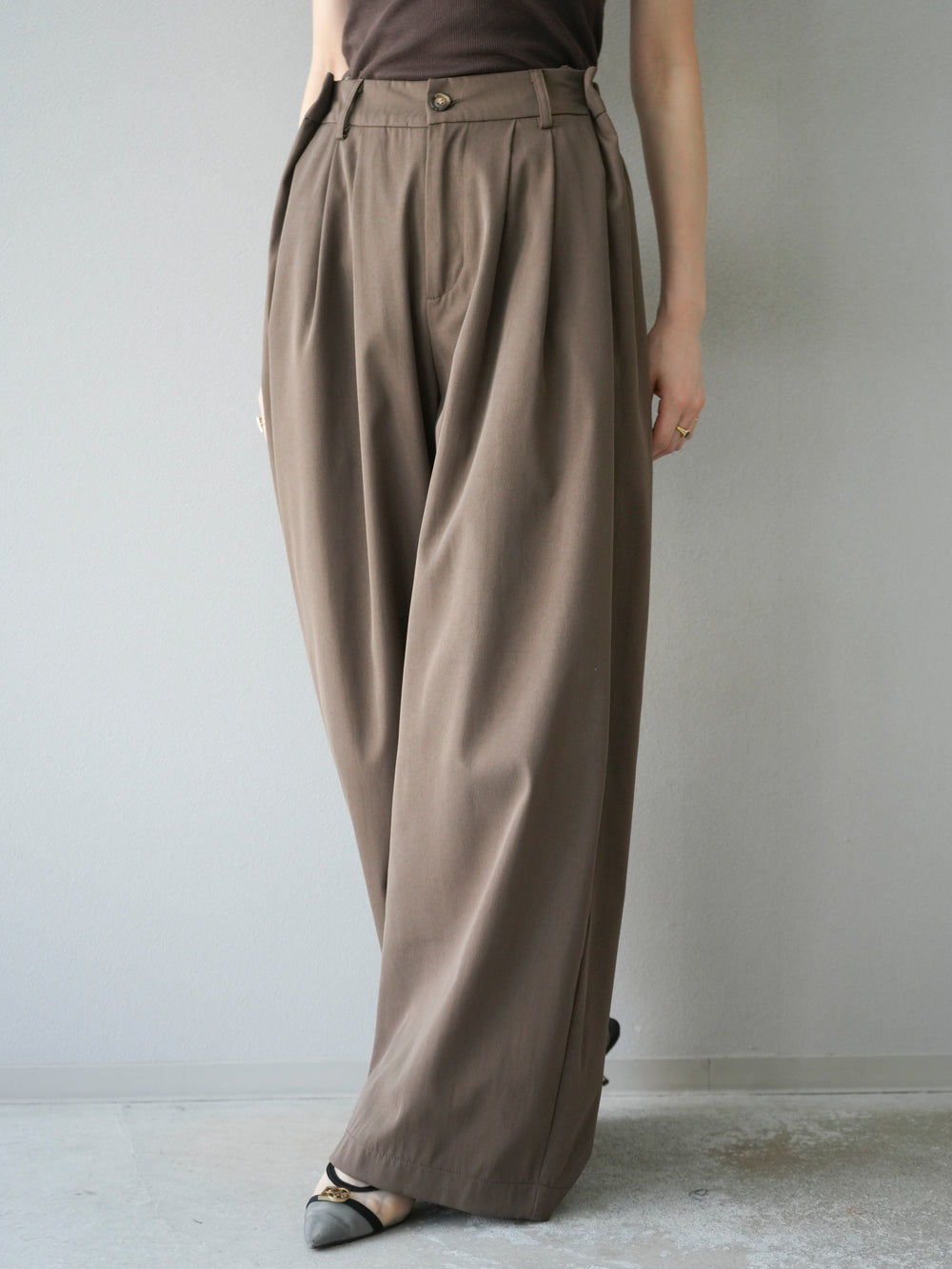 [予約]ベルト付タックワイドパンツ/ブラウン