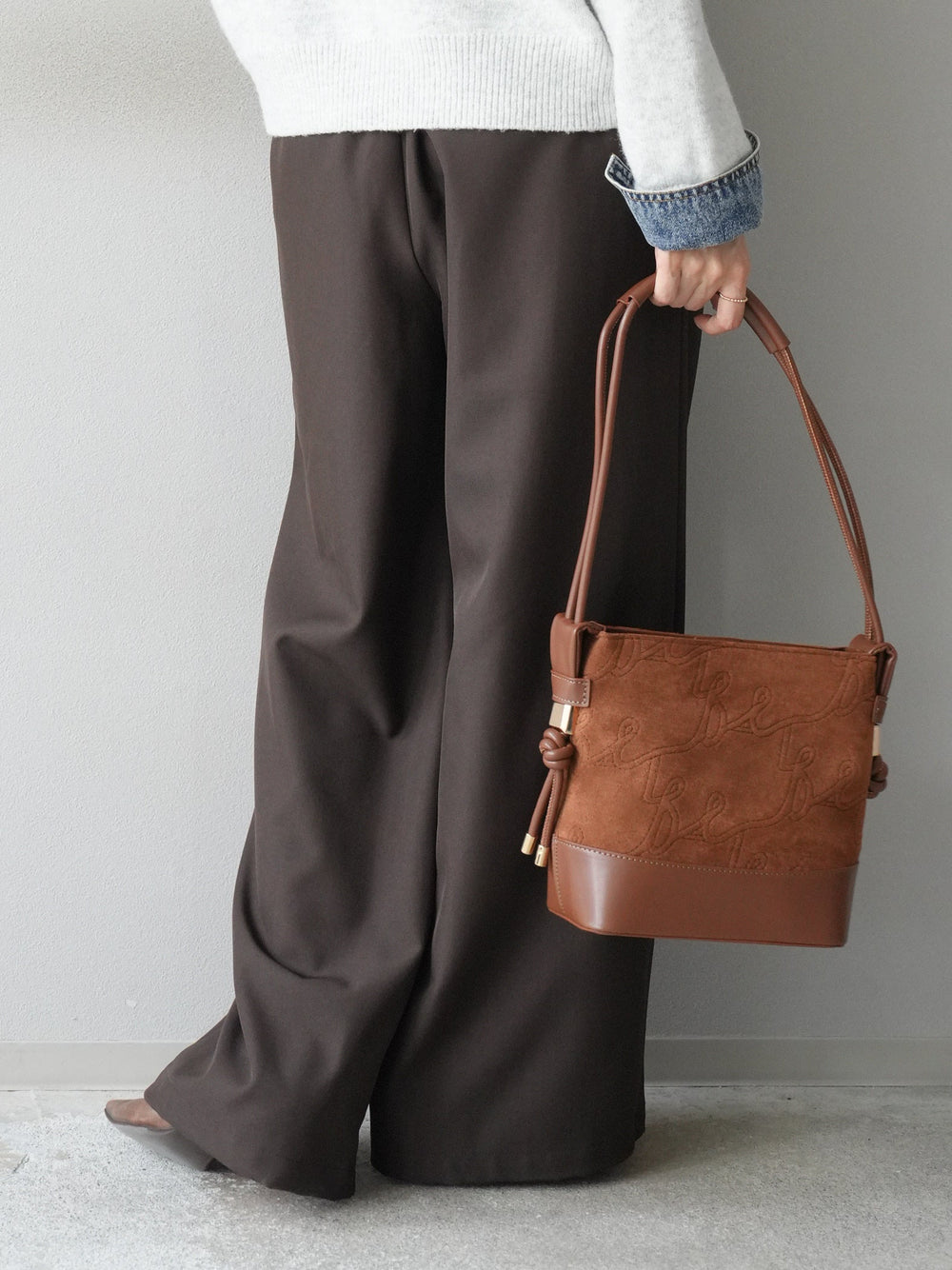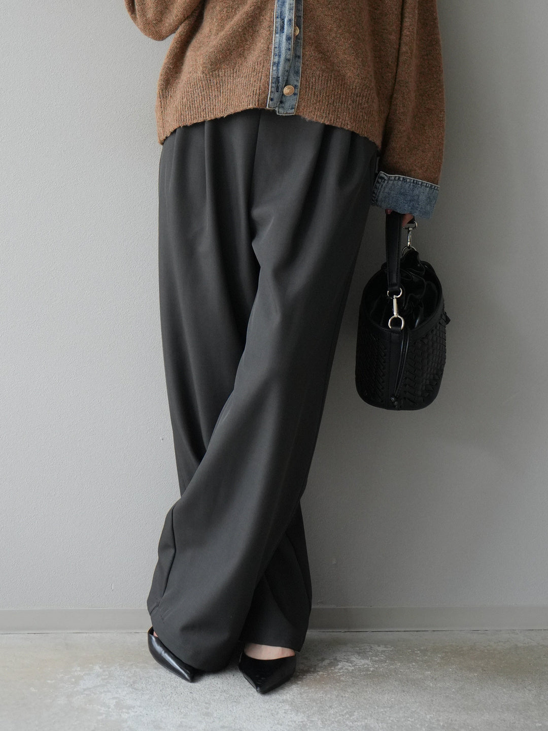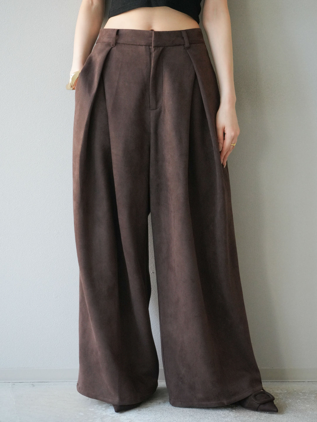 [予約]ベルト付タックワイドパンツ/ブラウン