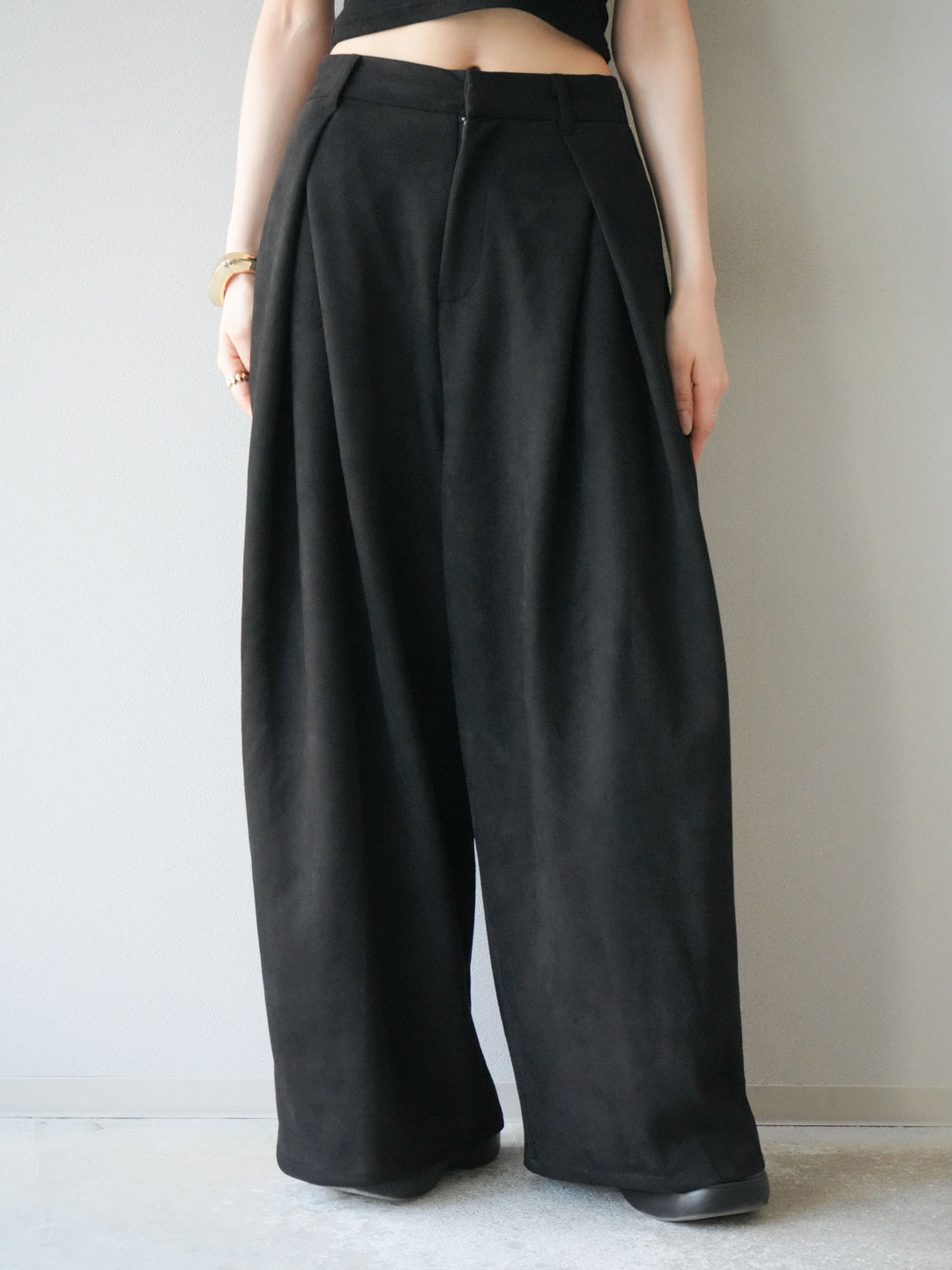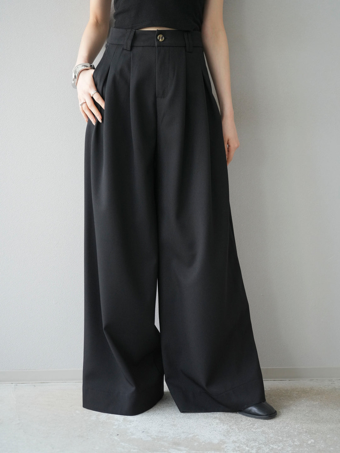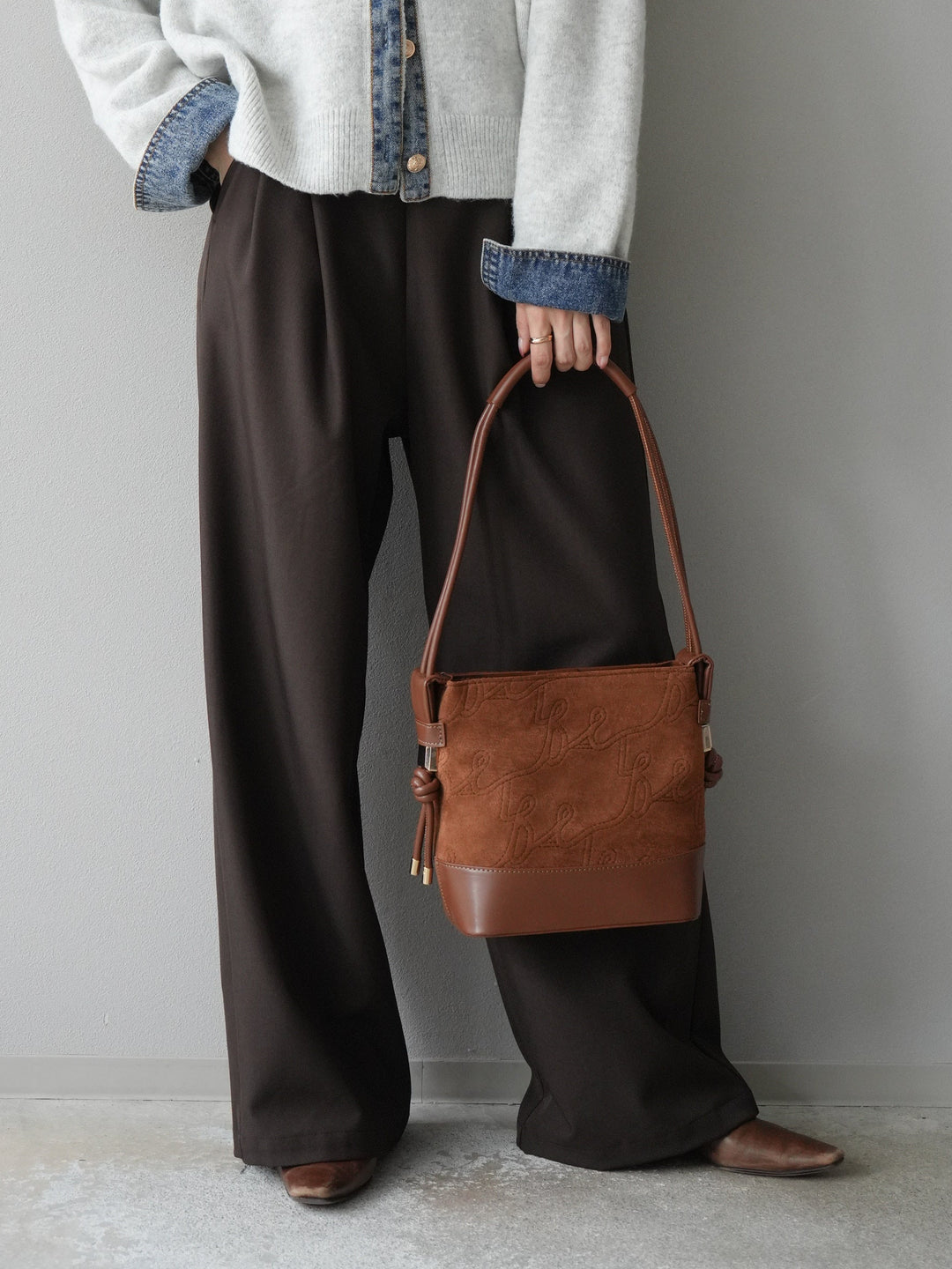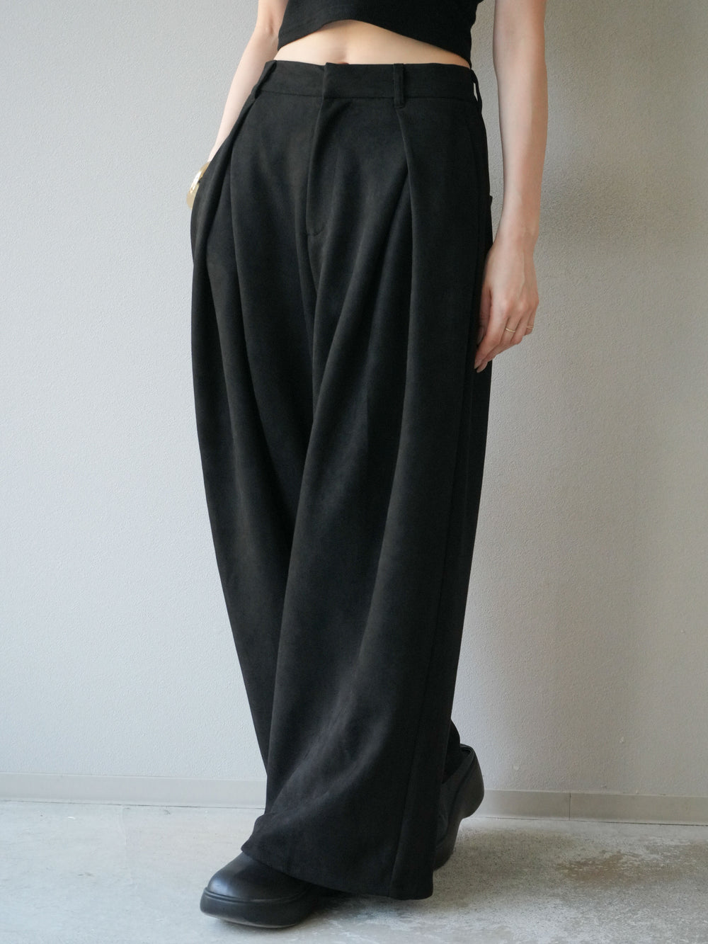 [予約]ベルト付タックワイドパンツ/ブラウン