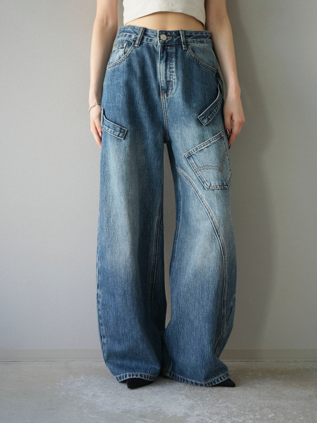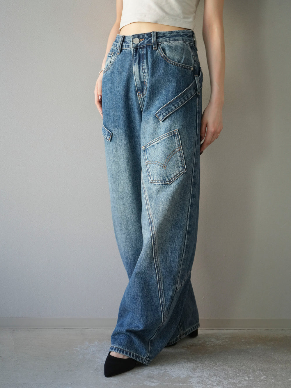 [予約]スカーフベルト付カーブデニムパンツ/ブルー