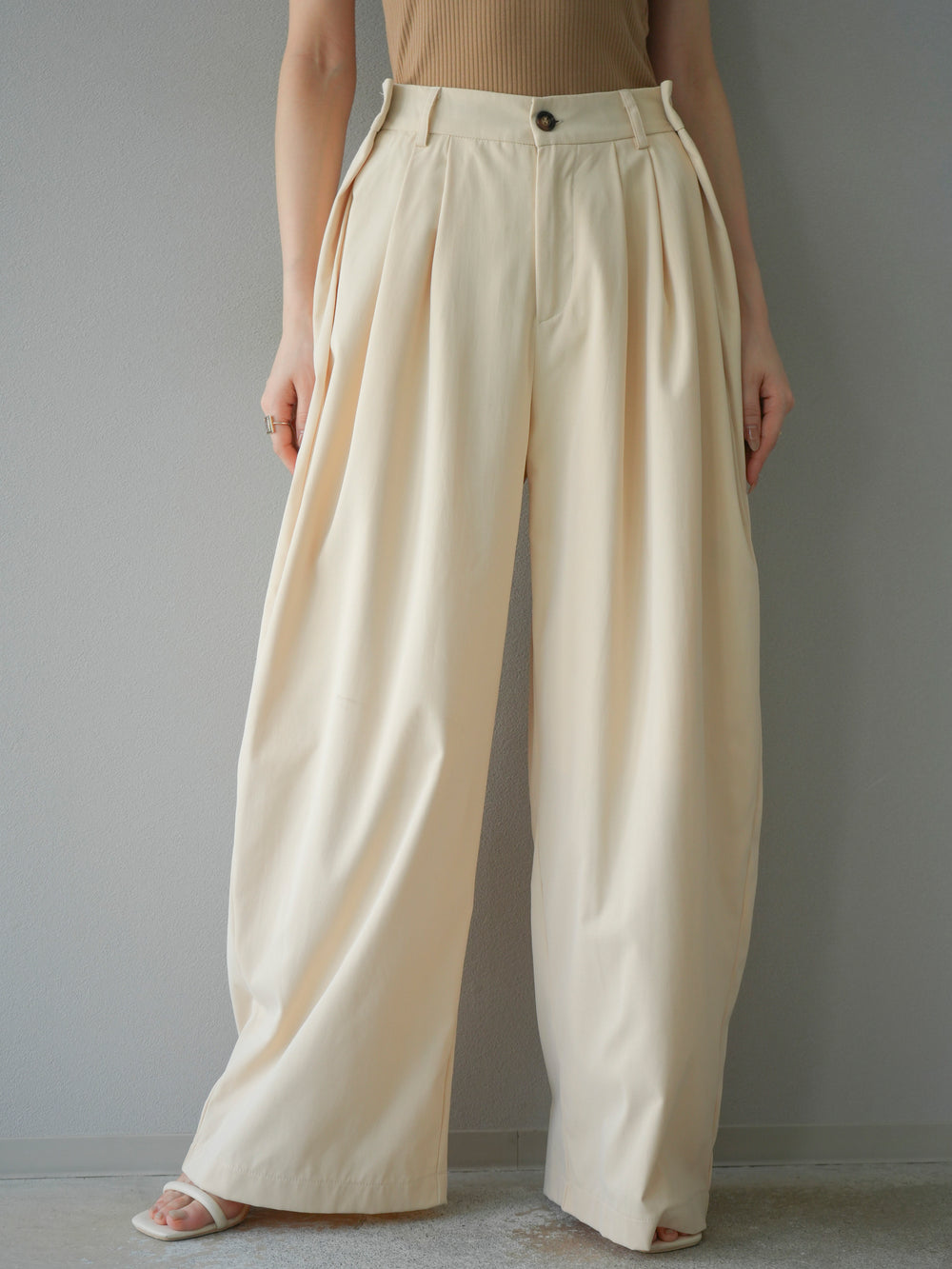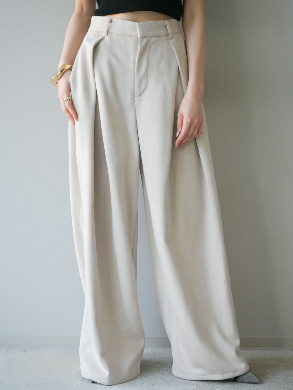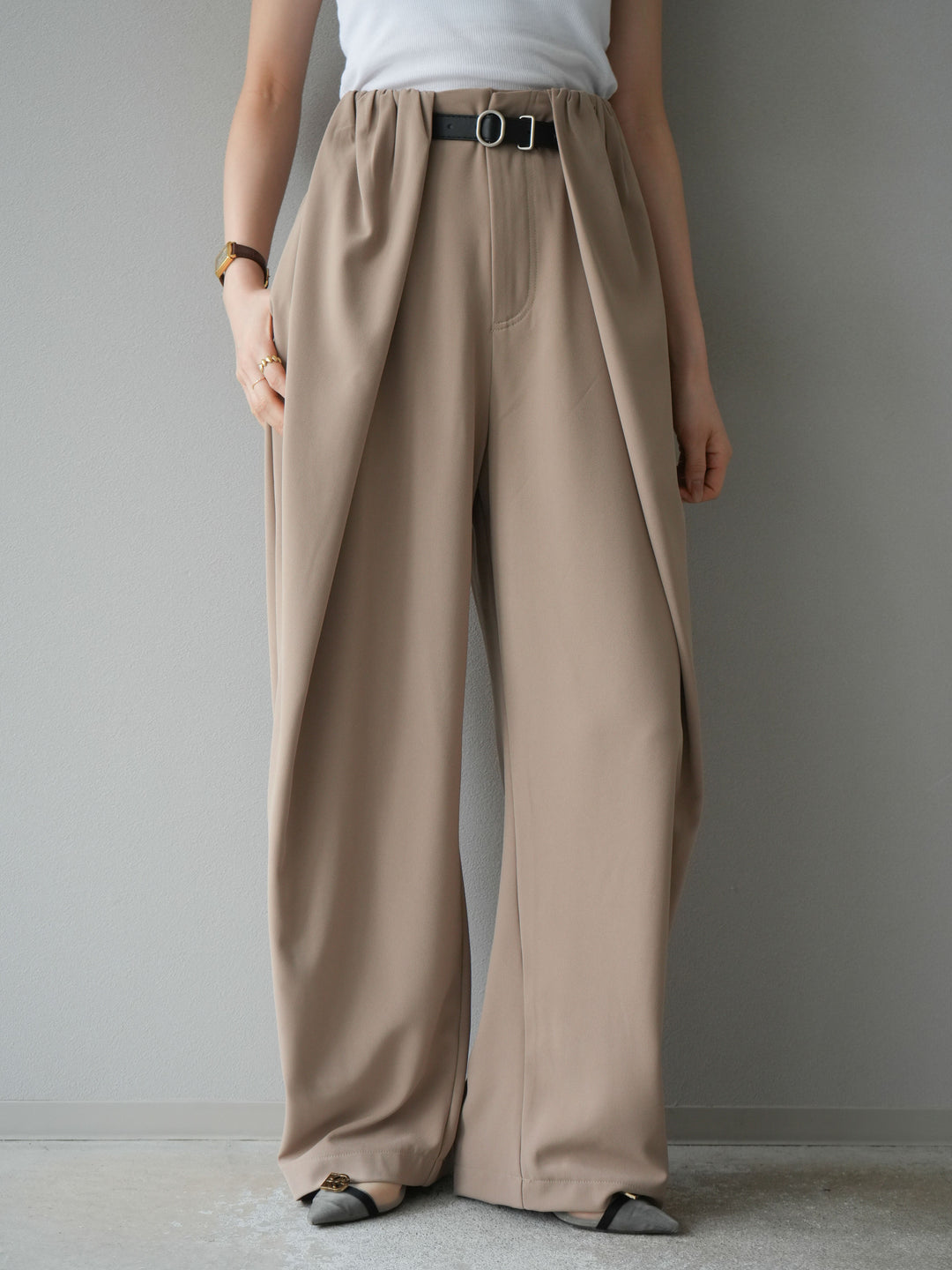 [予約]ベルト付タックワイドパンツ/ベージュ