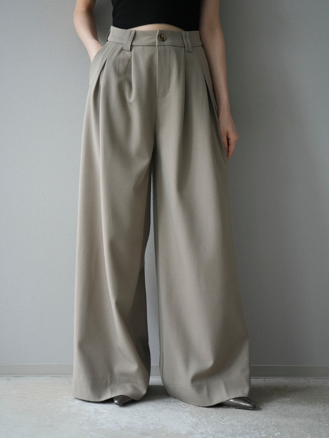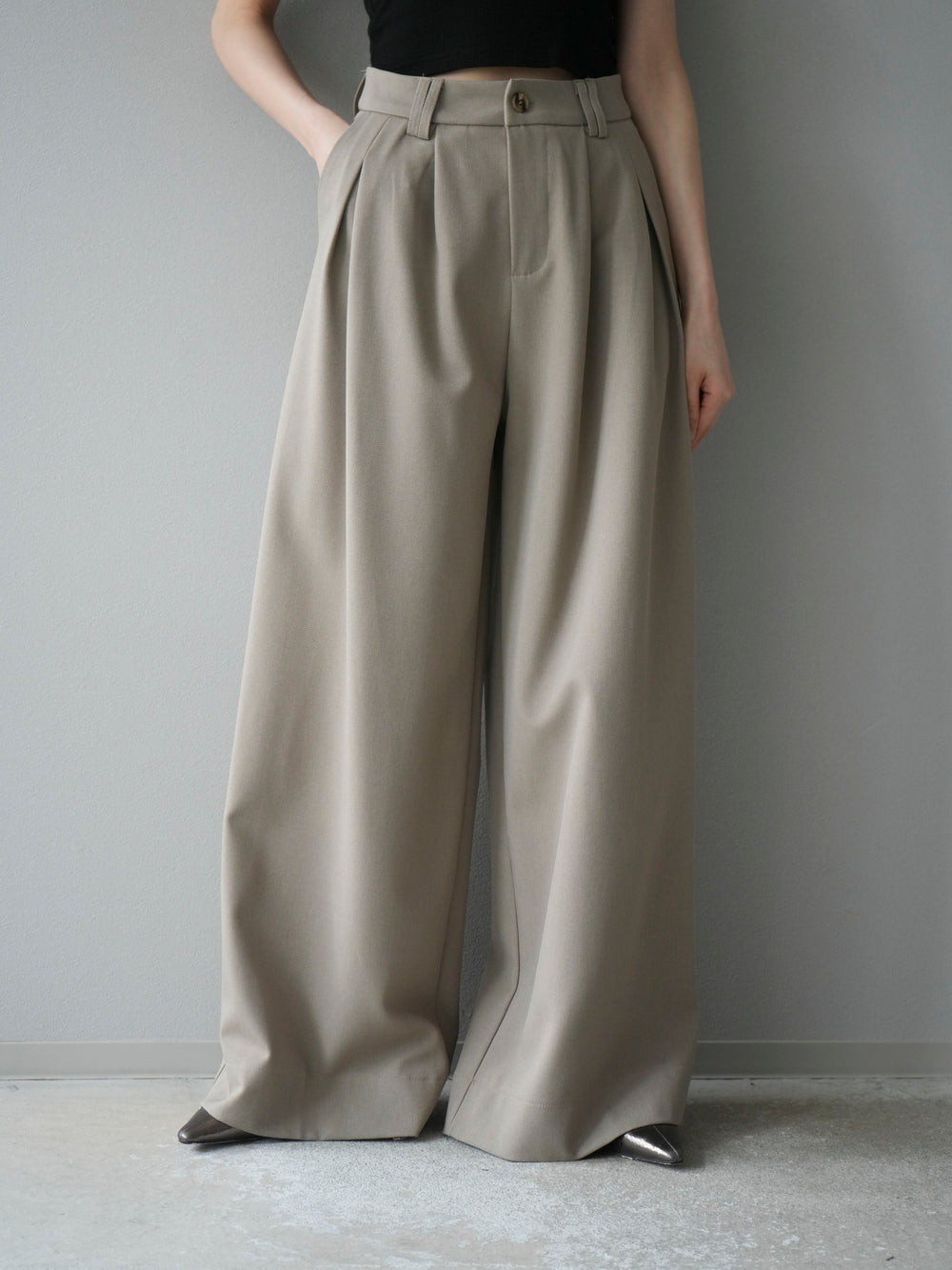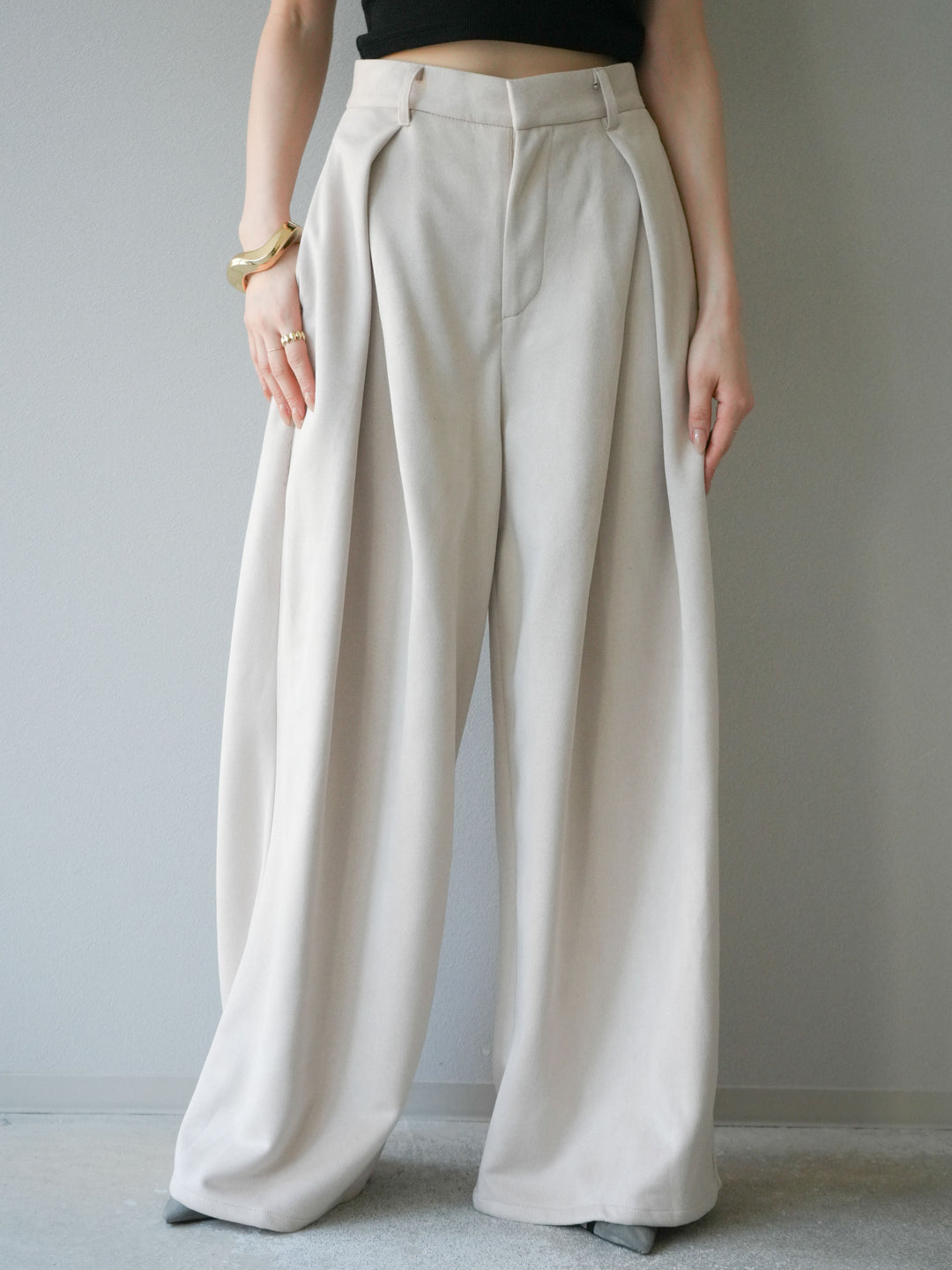 [予約]ベルト付タックワイドパンツ/ベージュ