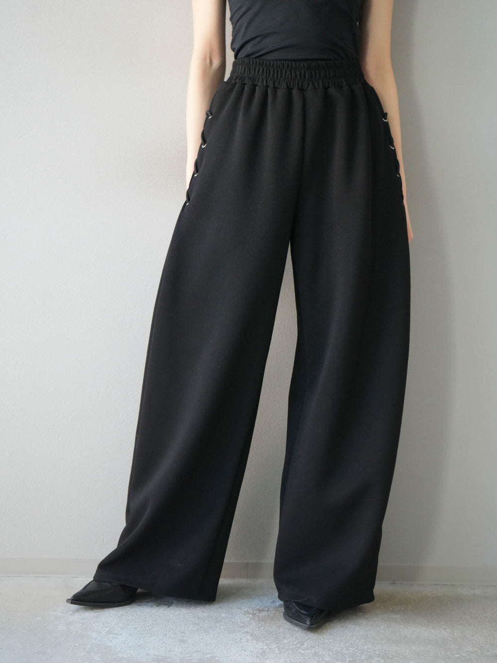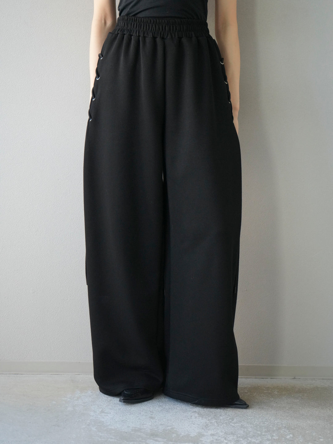 [予約]サイドレースアップスウェットワイドパンツ/ブラック