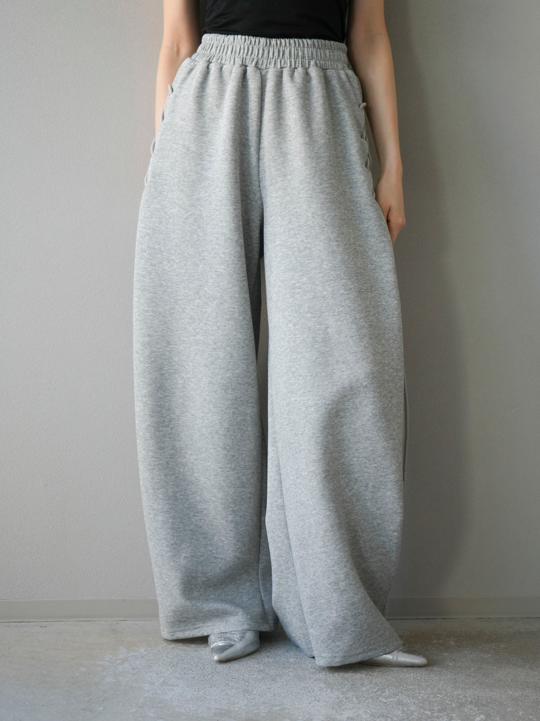 [予約]サイドレースアップスウェットワイドパンツ/グレー