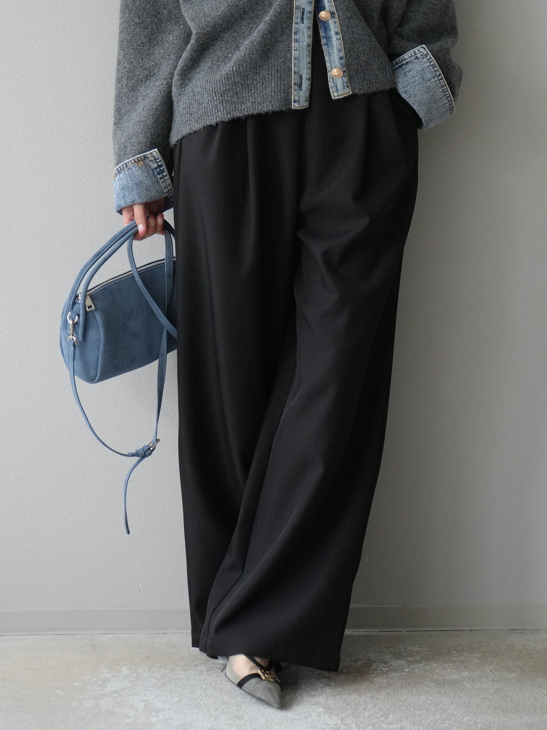 [予約]ツイードサイド配色ワイドパンツ/ブラック