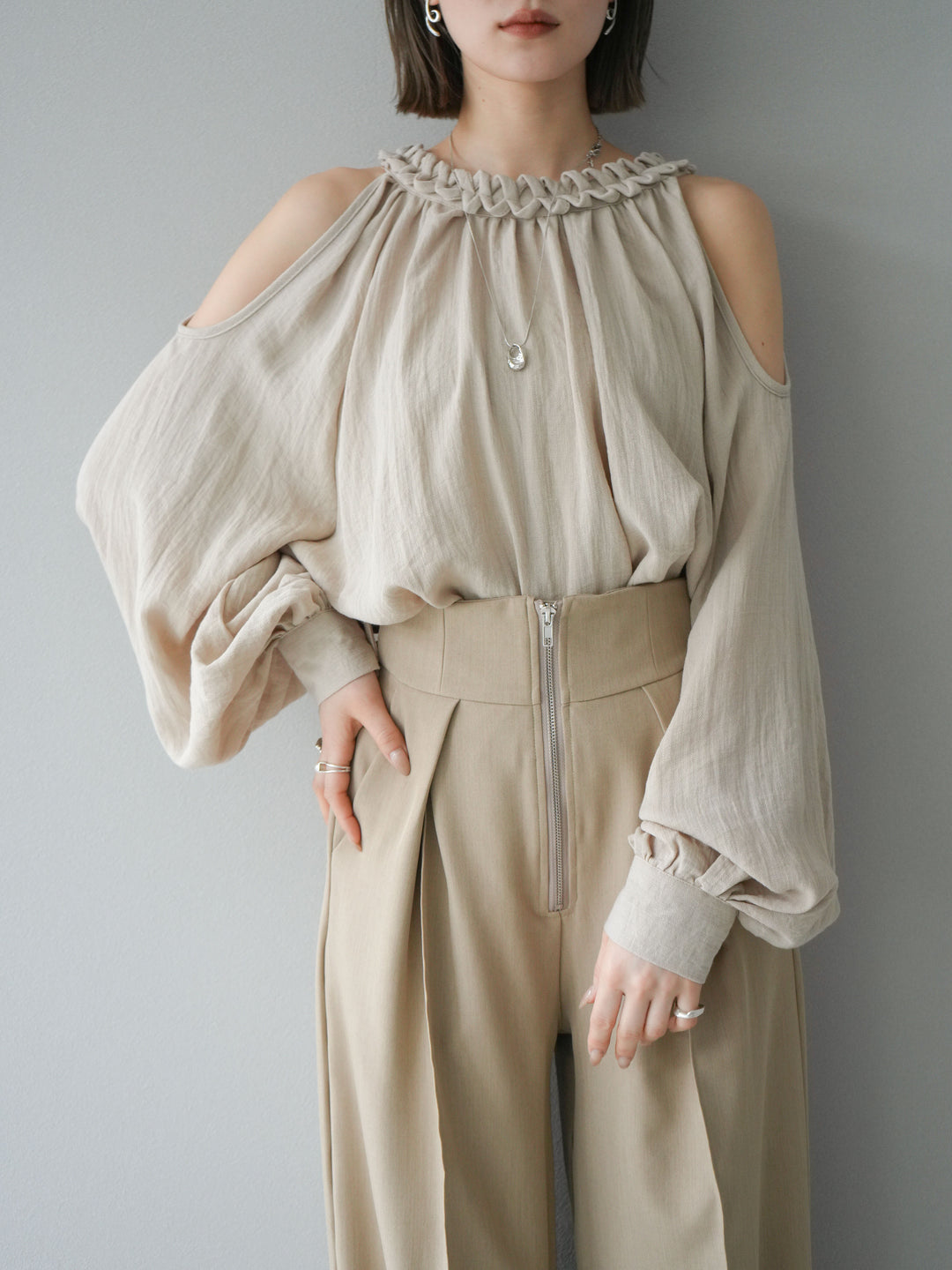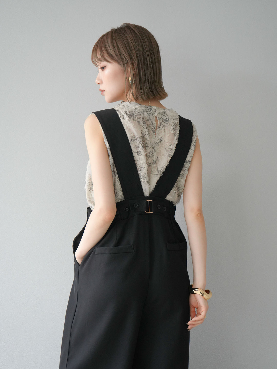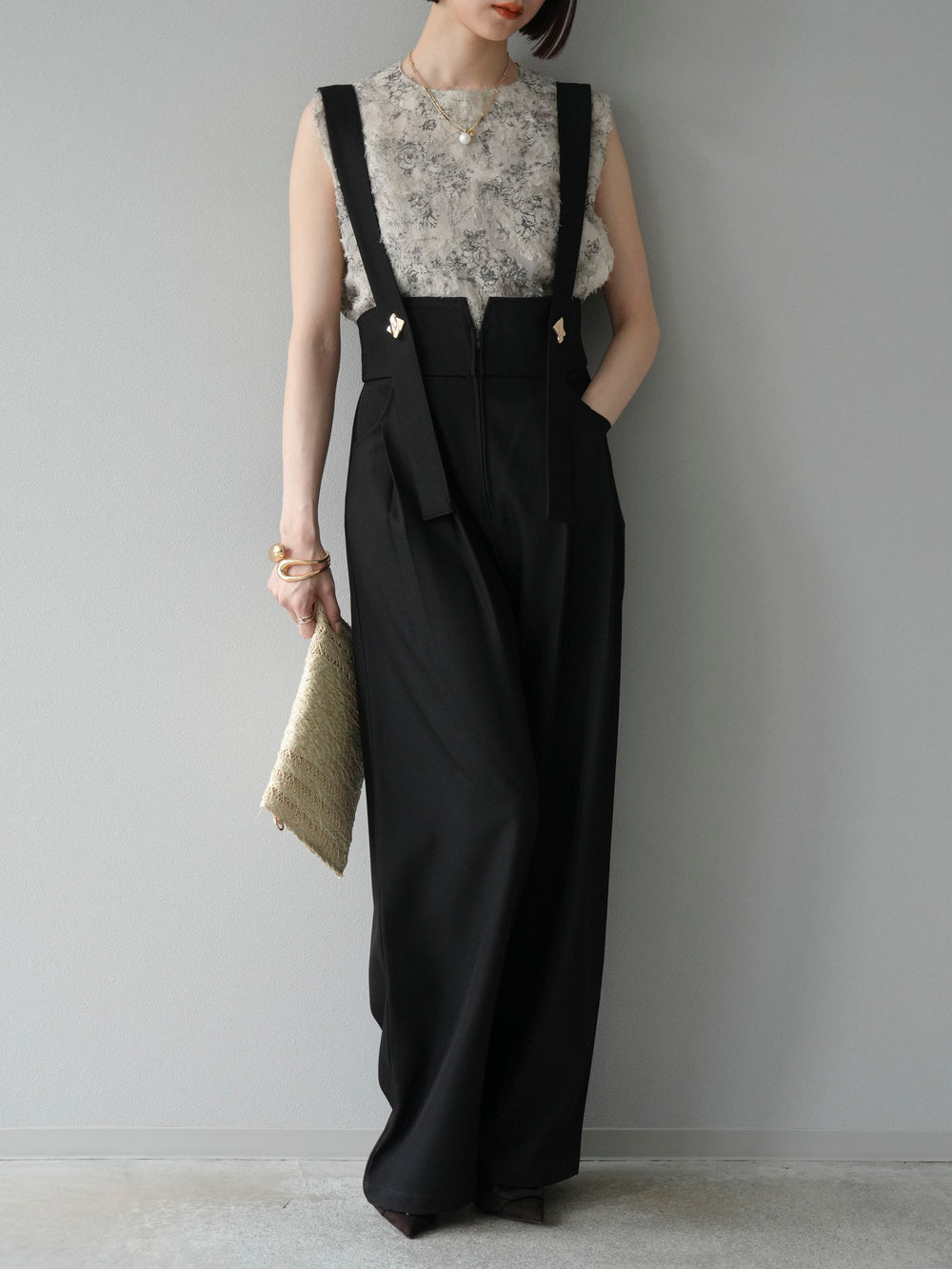 [SET]モヘア衿付きボタンプルオーバー+テープベルトタックバギーパンツ(2set)