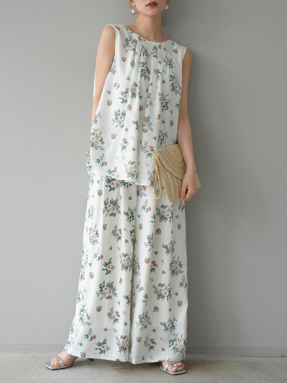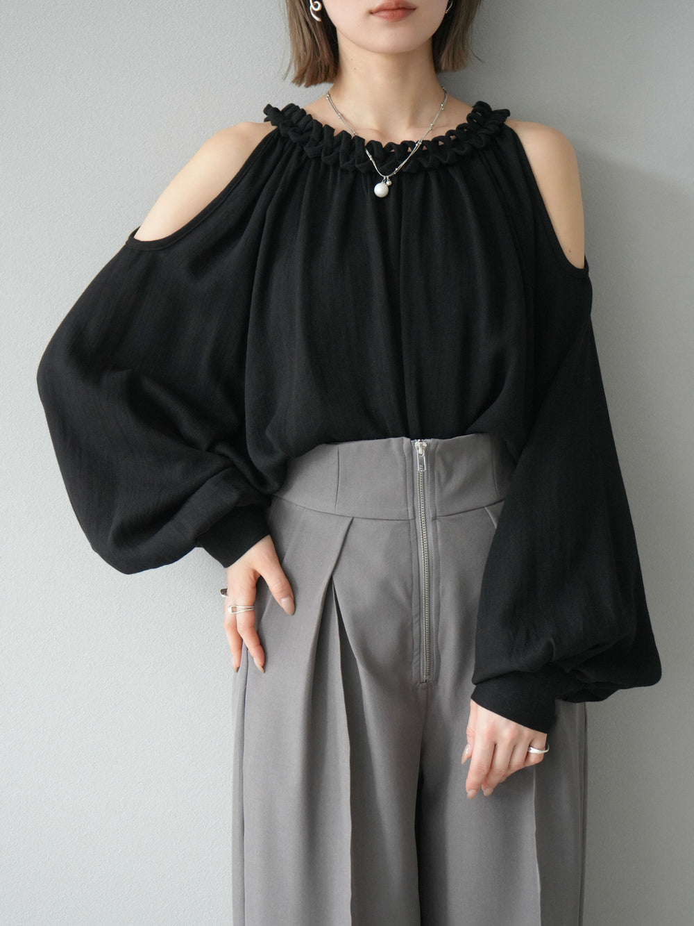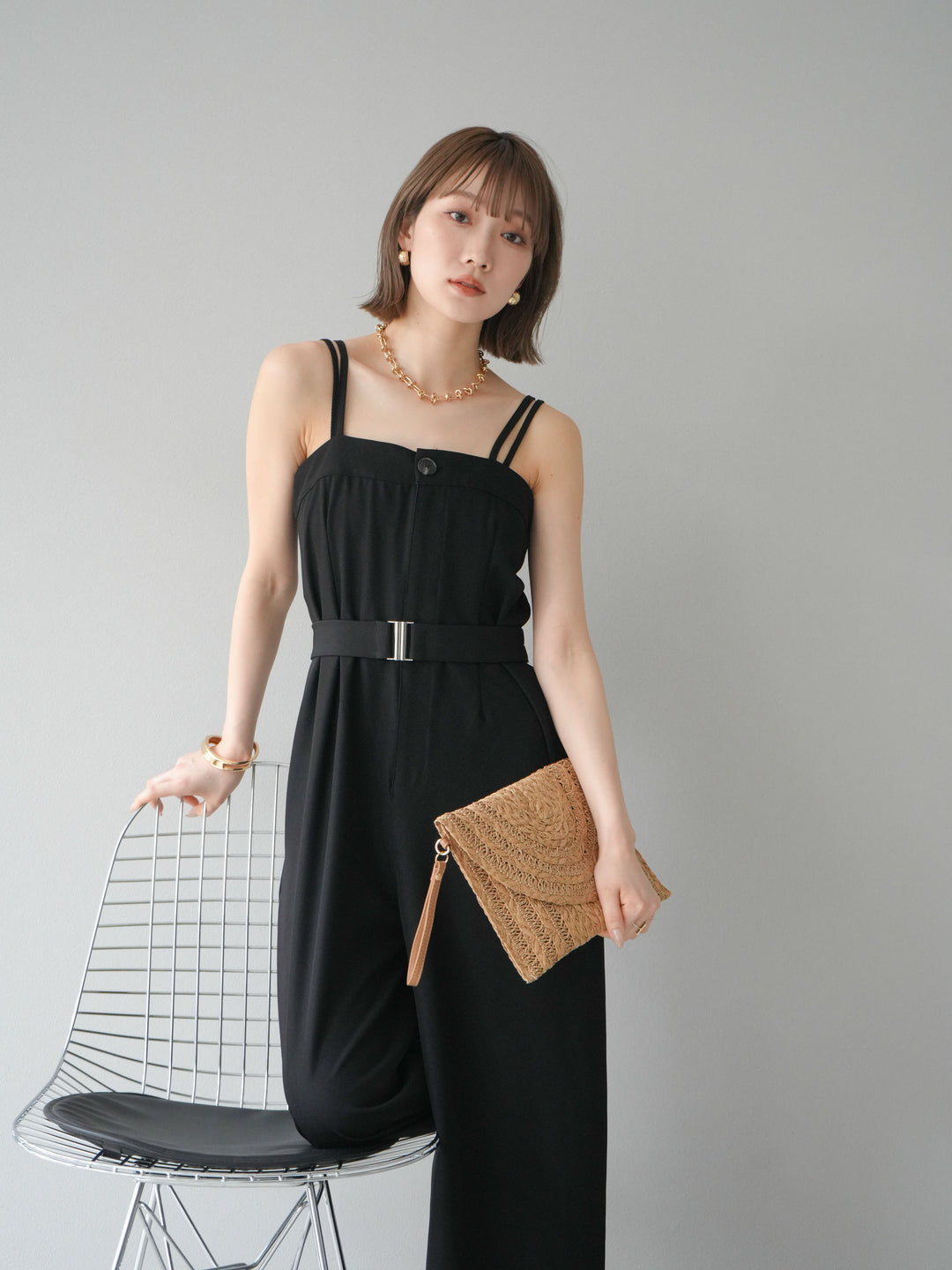 [SET]モヘア衿付きボタンプルオーバー+テープベルトタックバギーパンツ(2set)