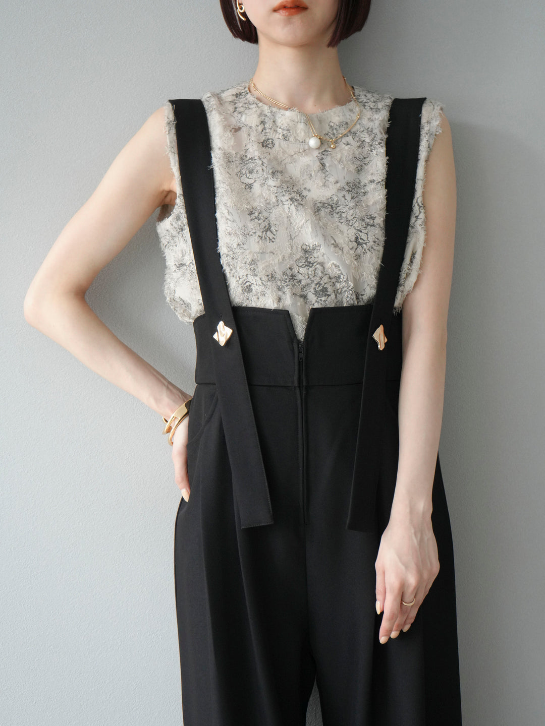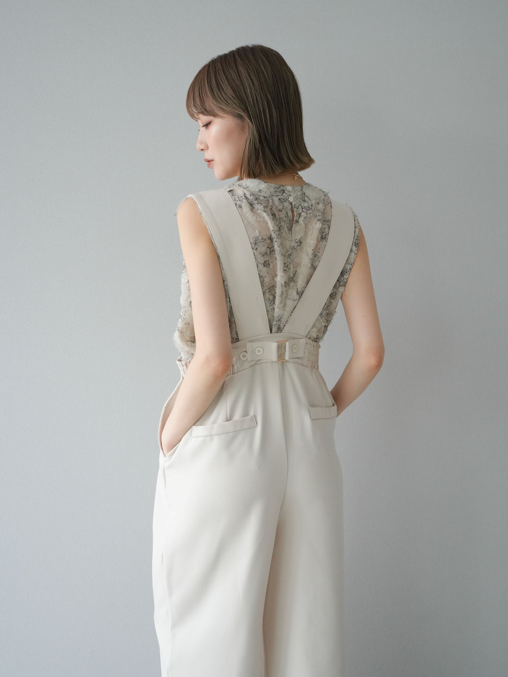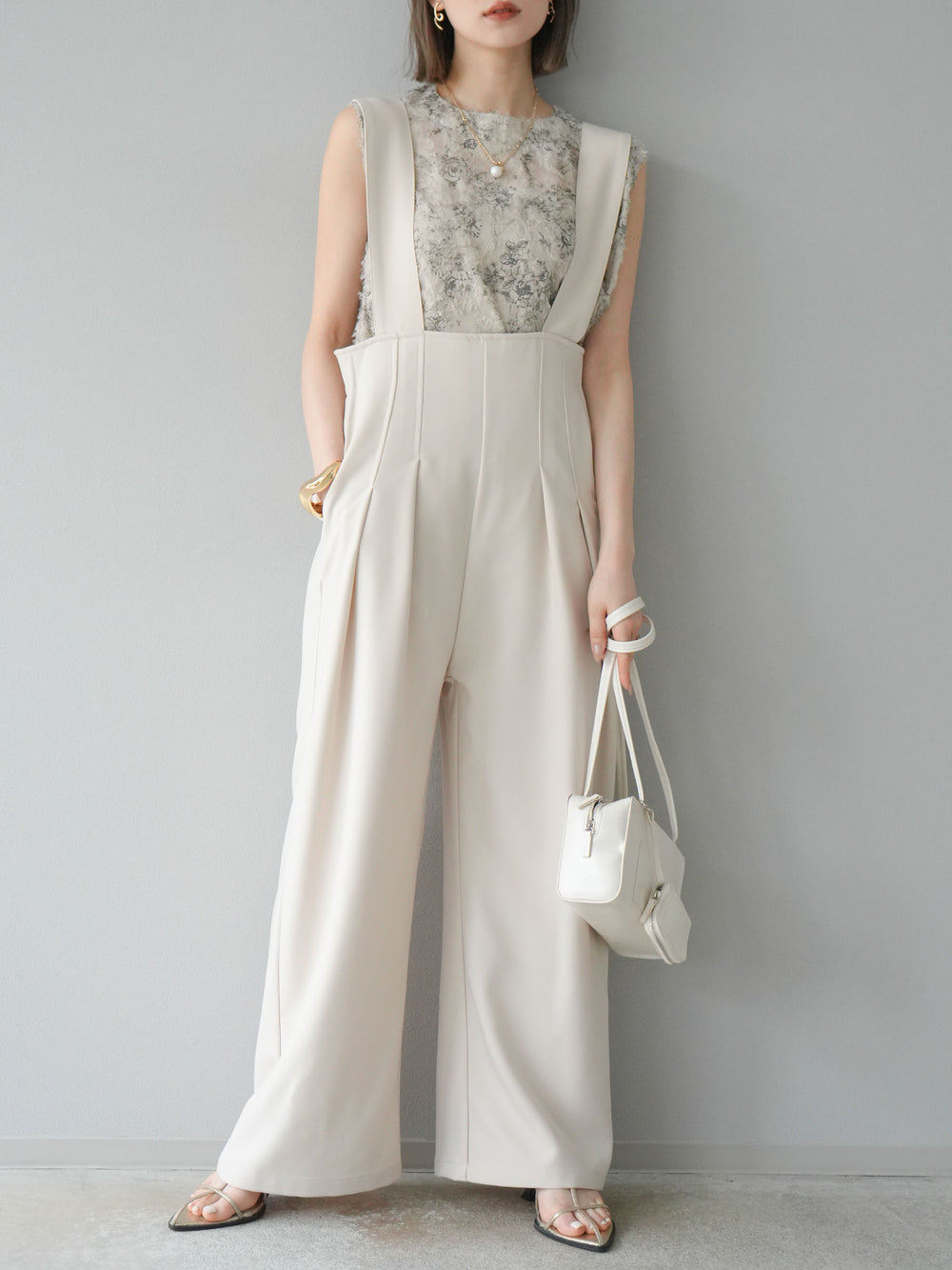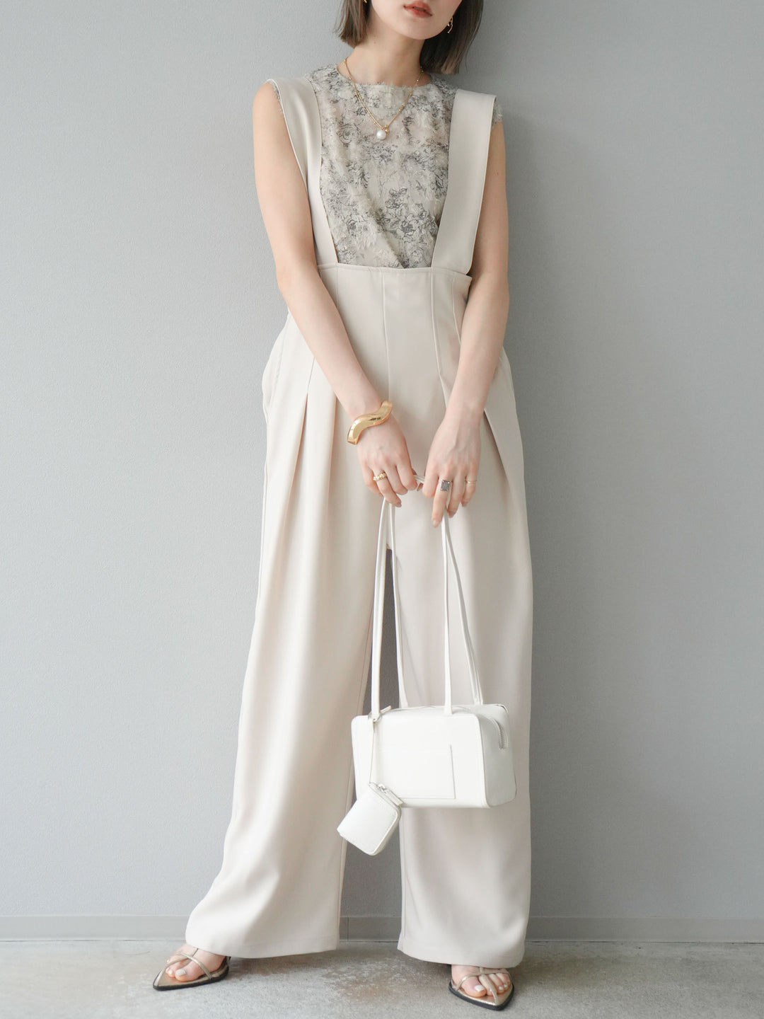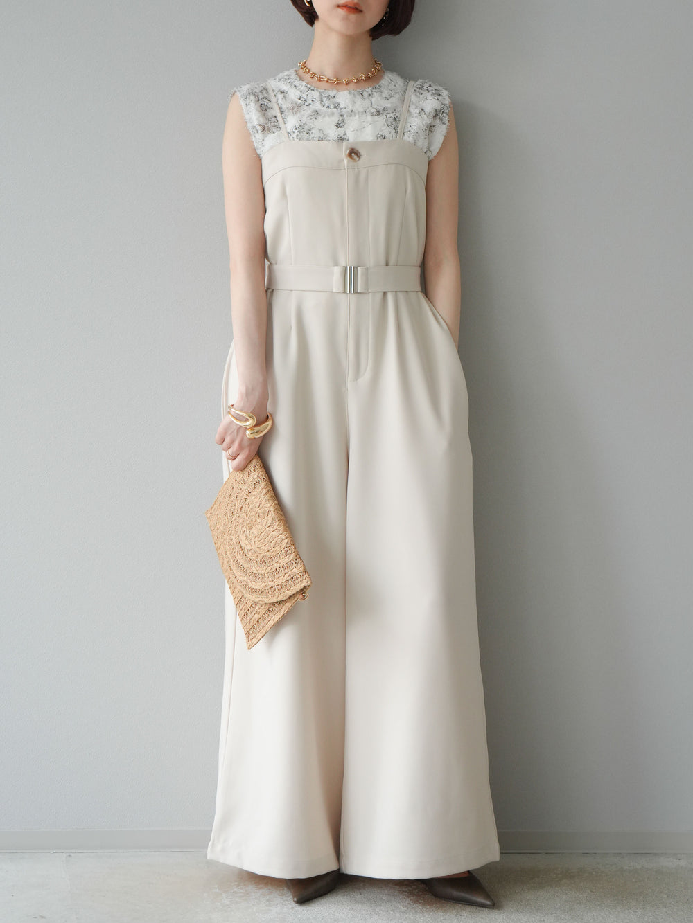 [SET]アンゴラタッチクルーネックニットプルオーバー+チュールレーストップス+テープベルトタックバギーパンツ(3set)