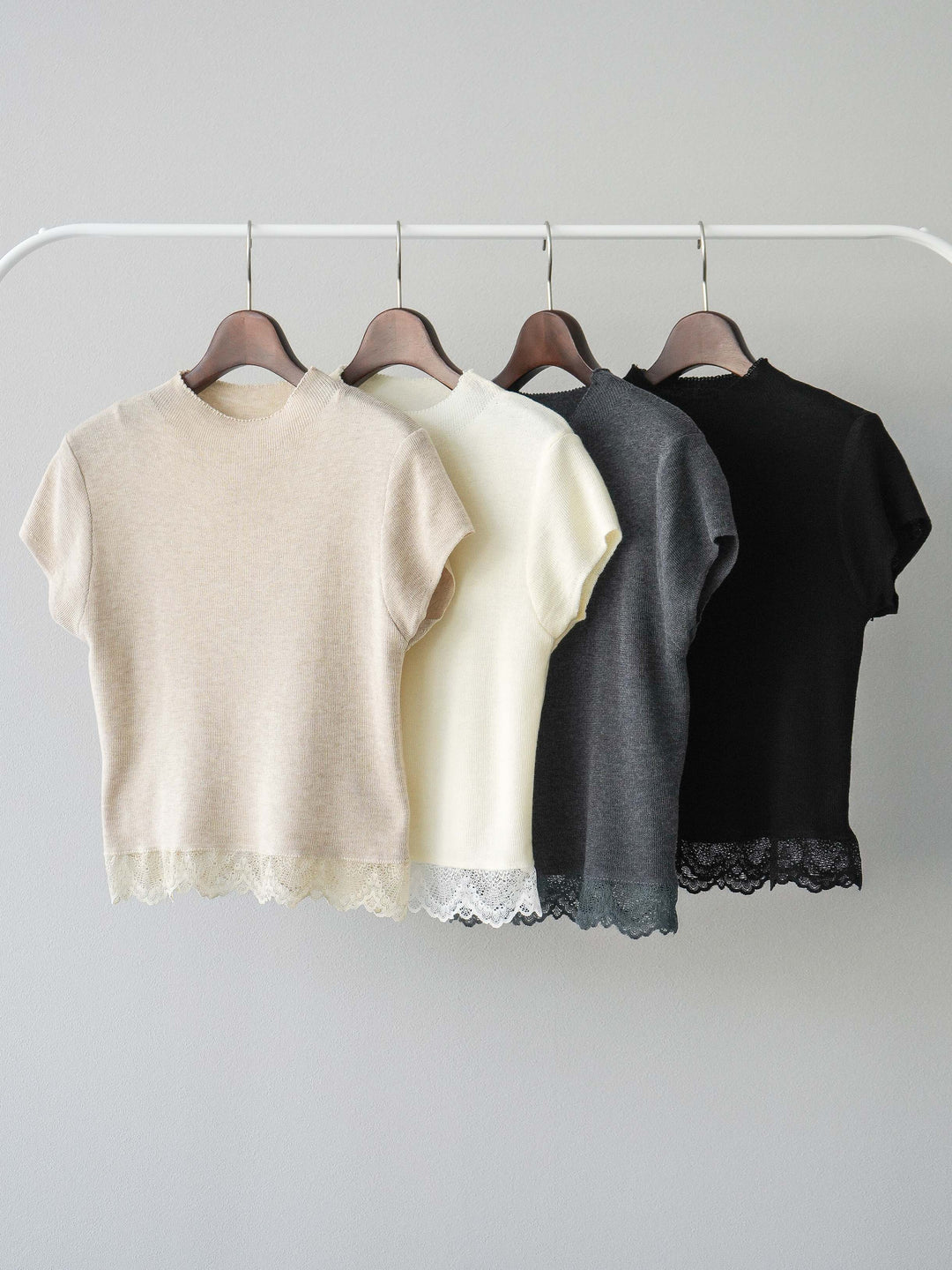 [SET]アンゴラタッチクルーネックニットプルオーバー+チュールレーストップス(2set)
