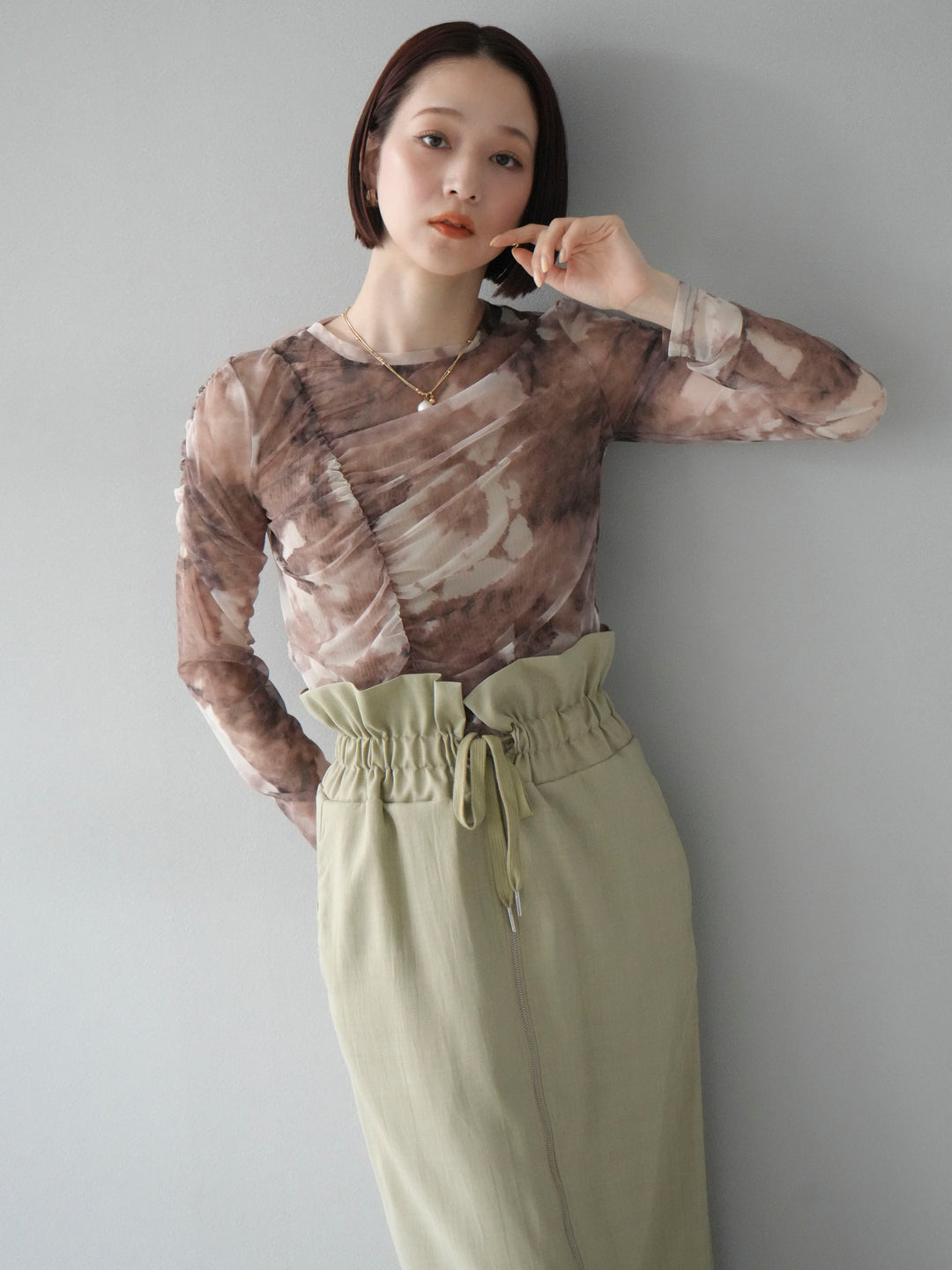 [SET]バルキーケーブルクロップドニットプルオーバー+ギャザーベロアスカート(2set)