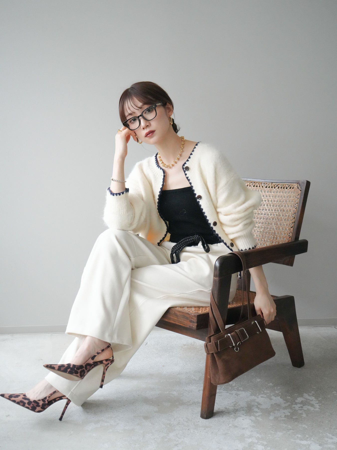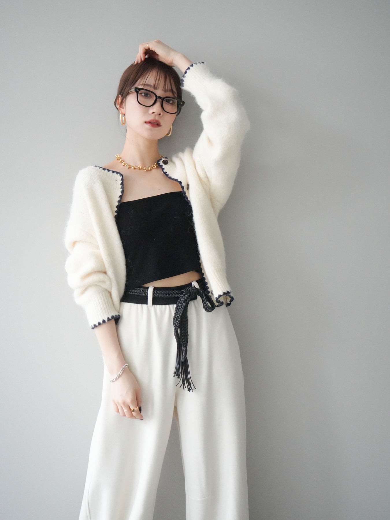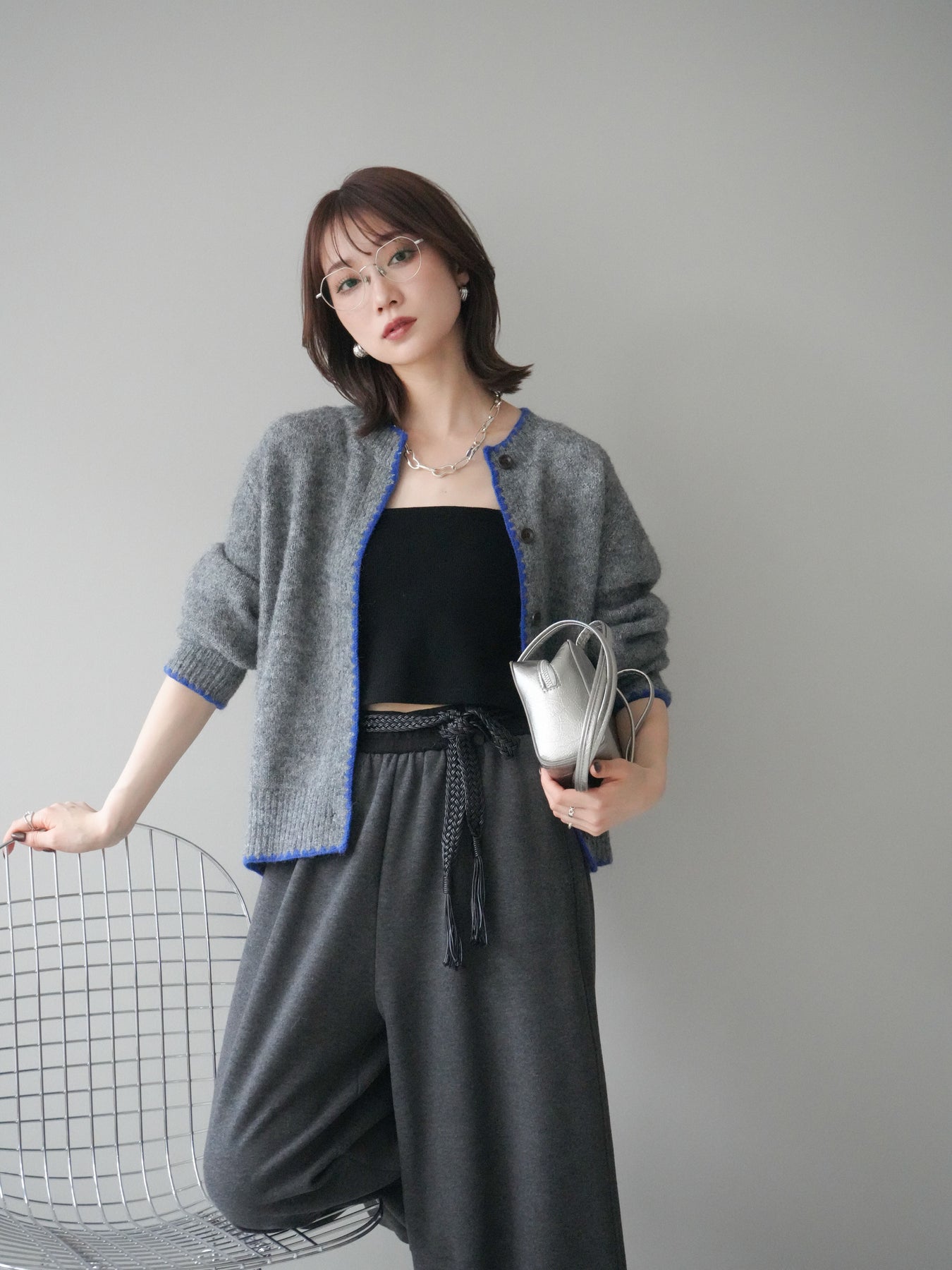 [SET]三角ステッチニットカーディガン+選べるアクセセット(2set)