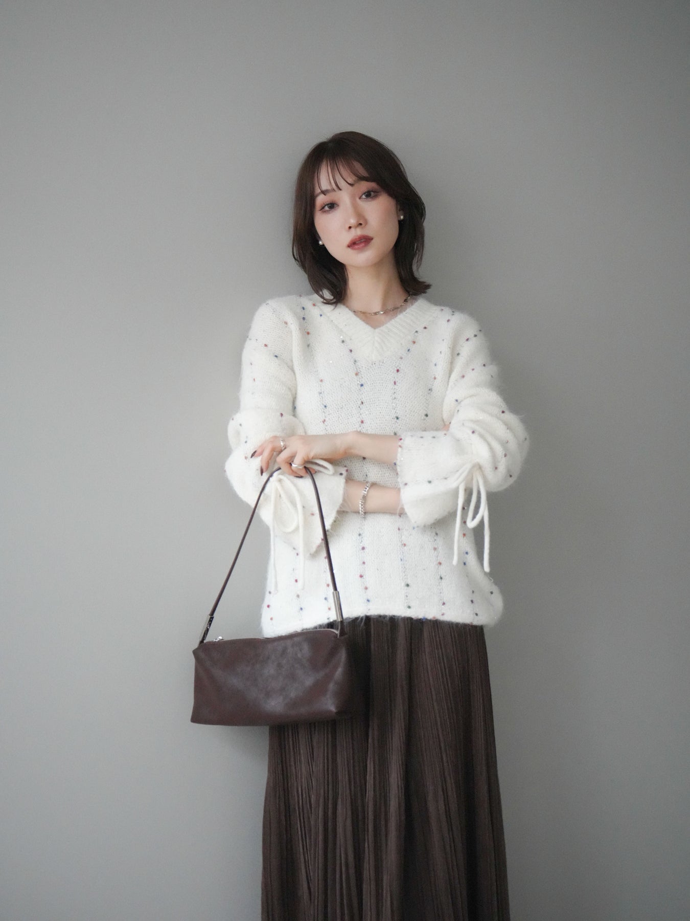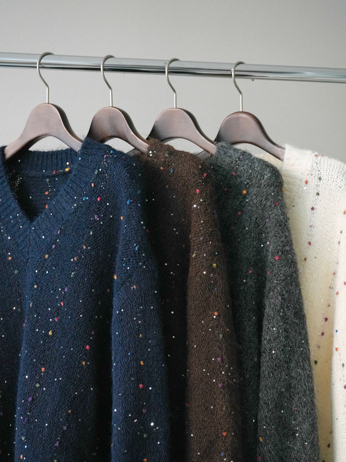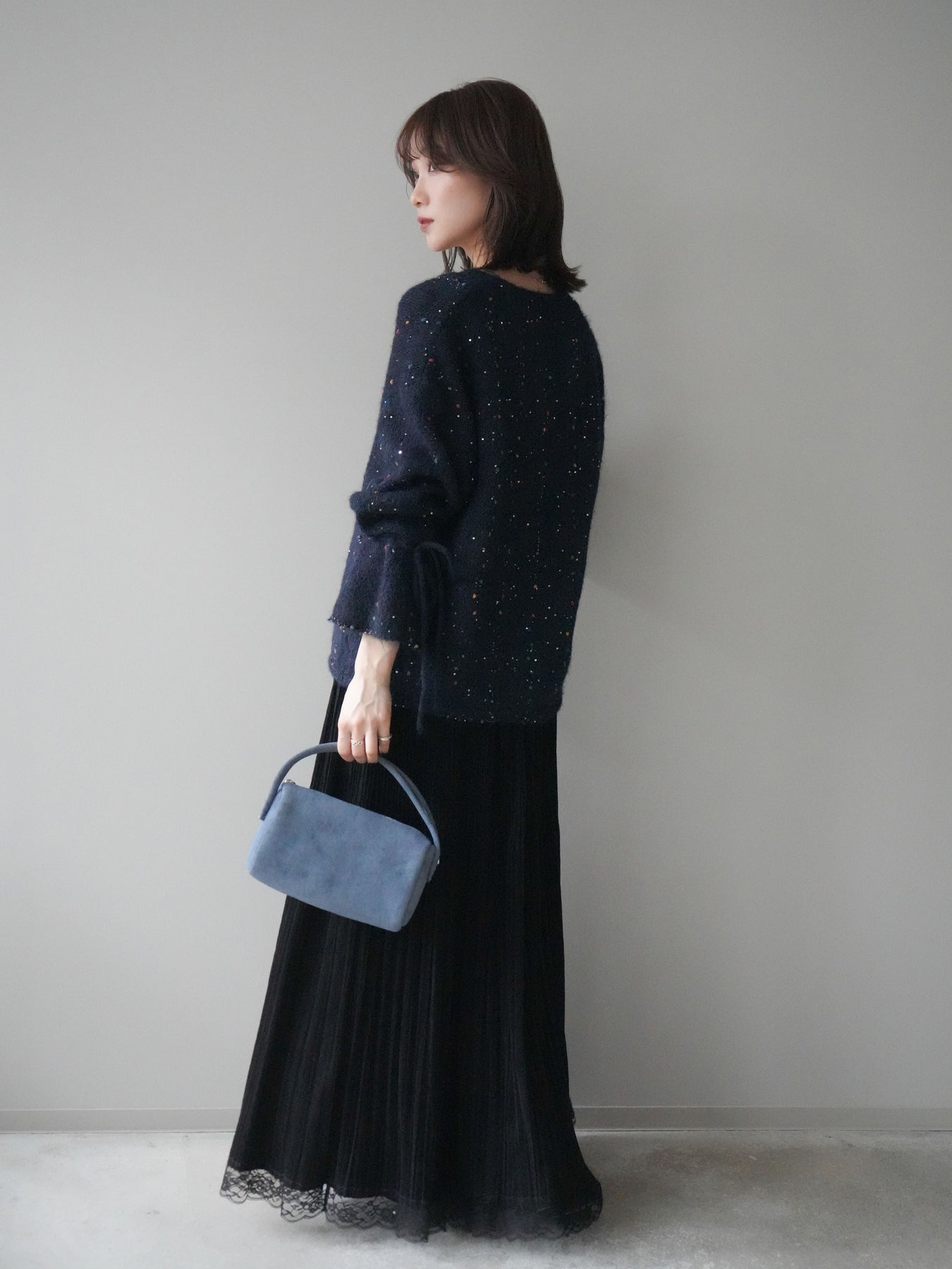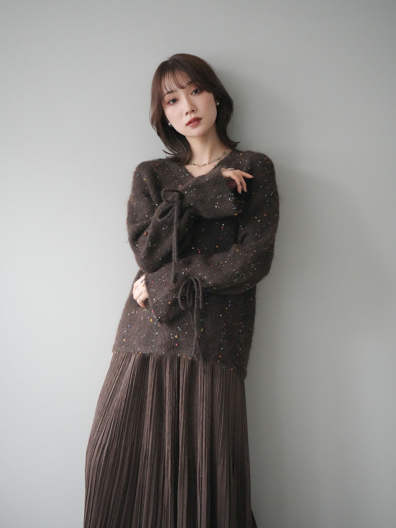 [予約]キャンディースリーブカラーネップスパンコールニットプルオーバー