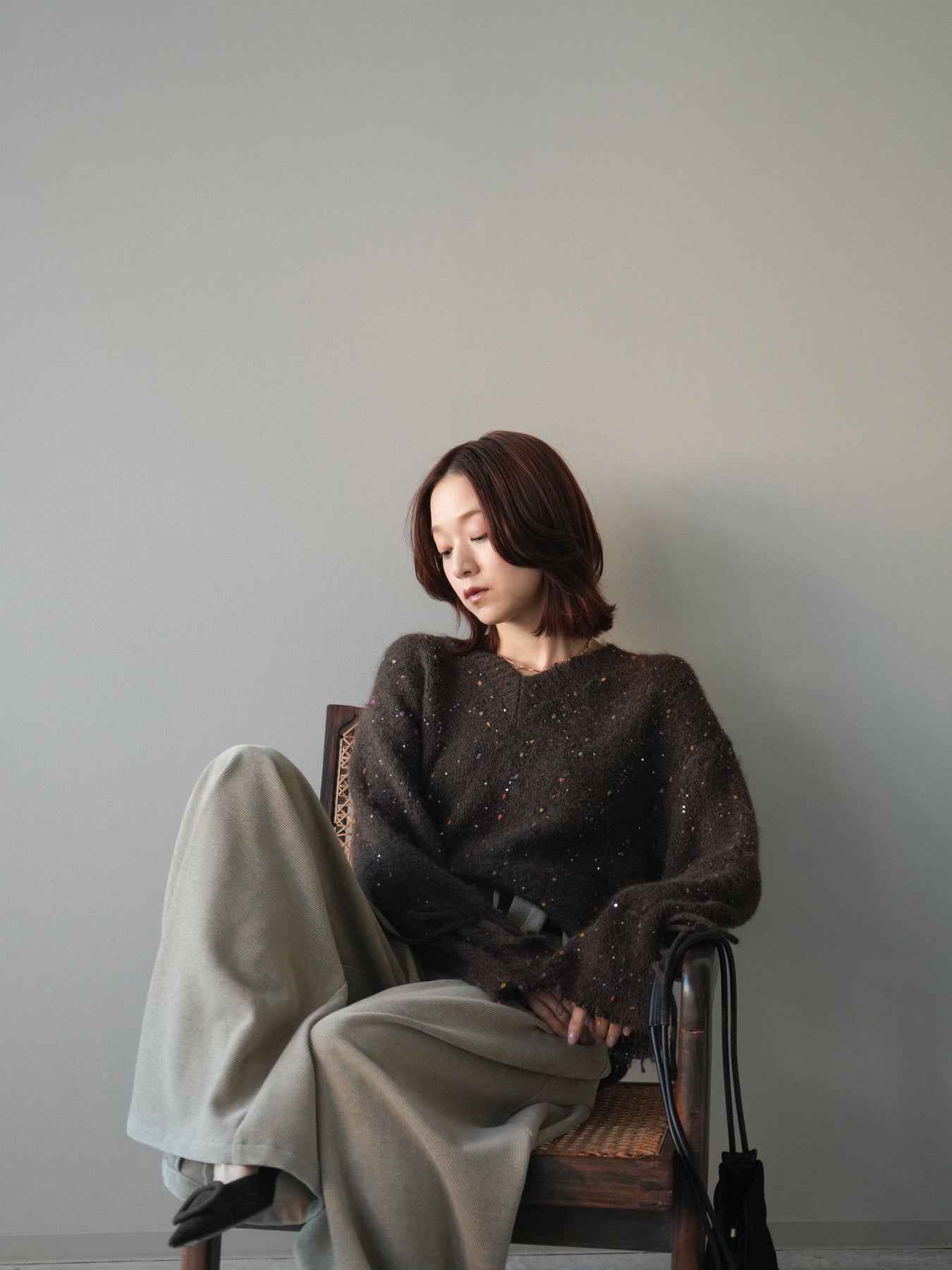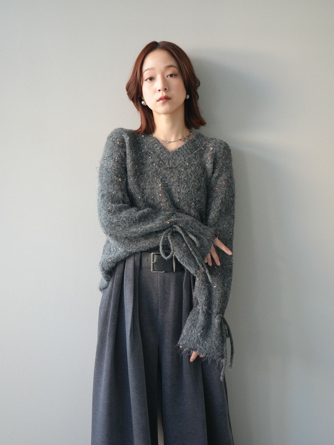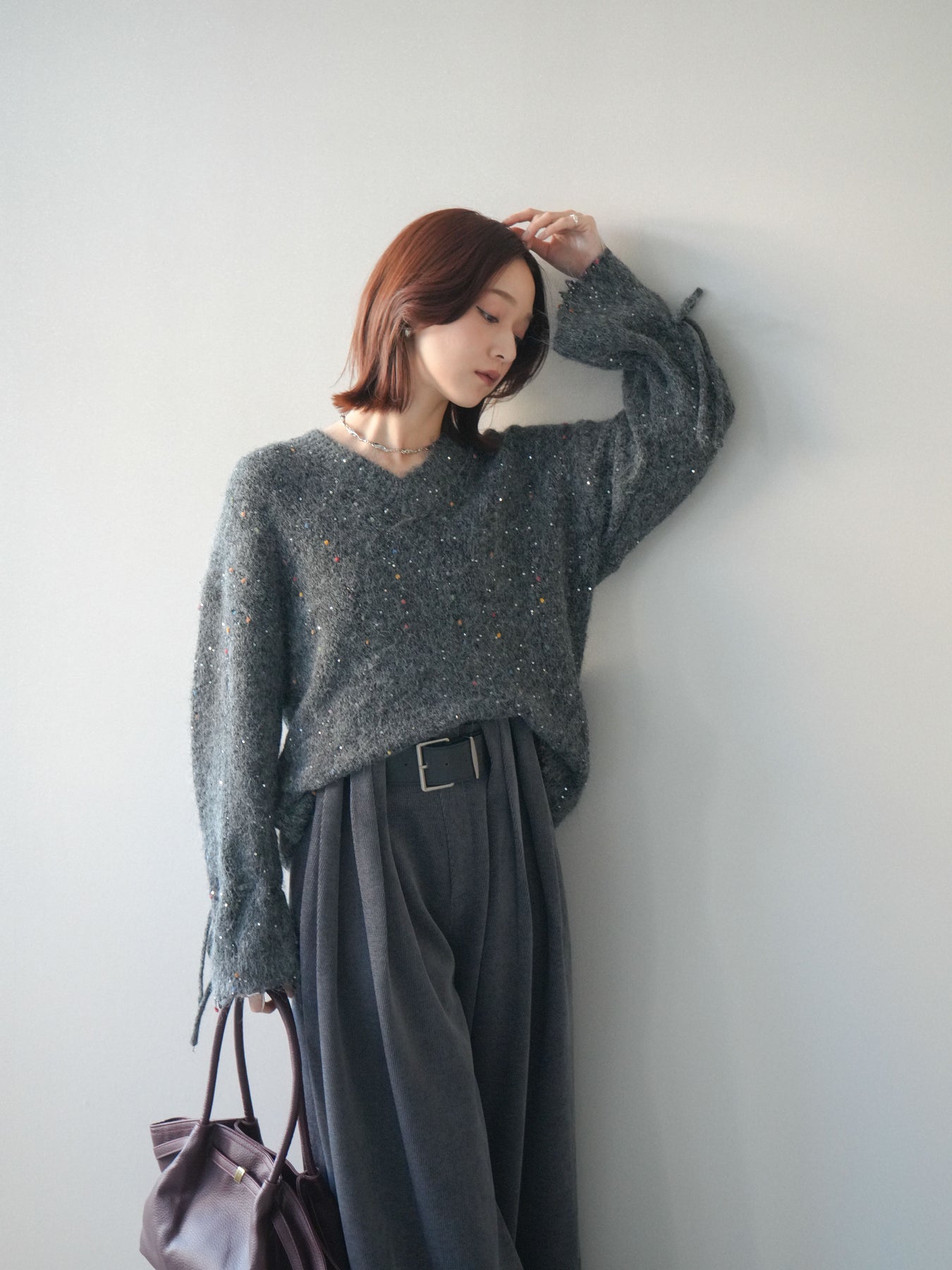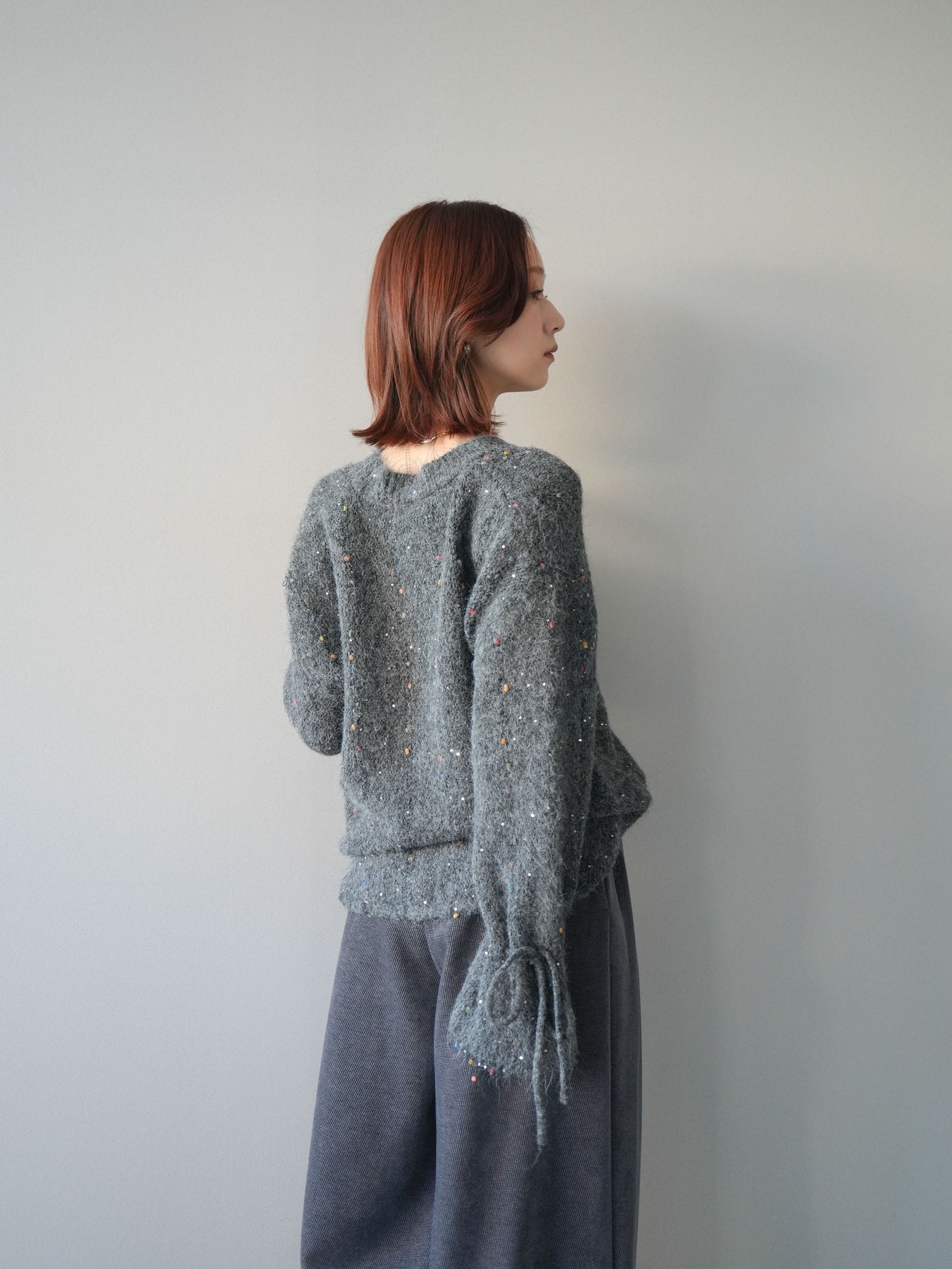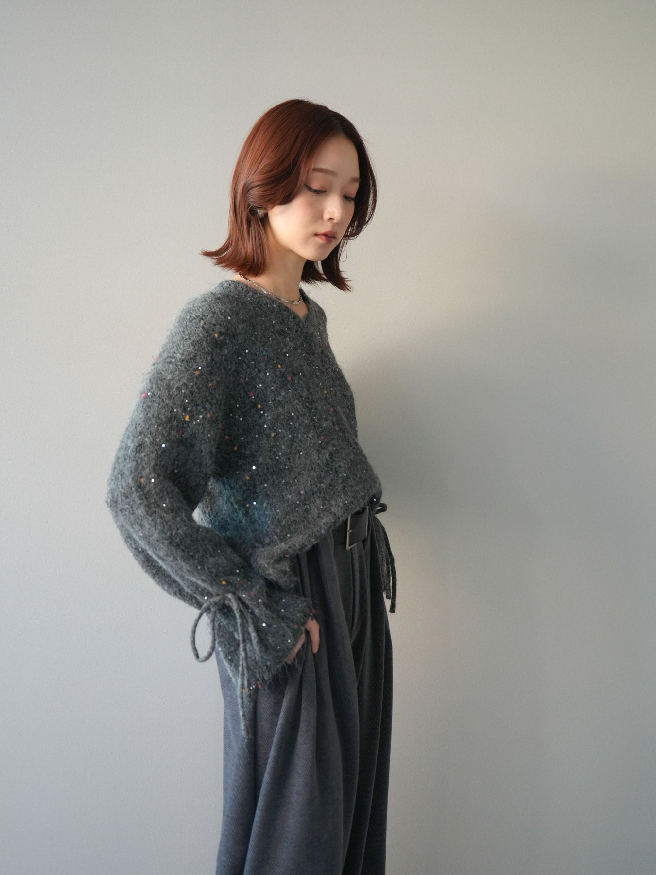 [予約]キャンディースリーブカラーネップスパンコールニットプルオーバー