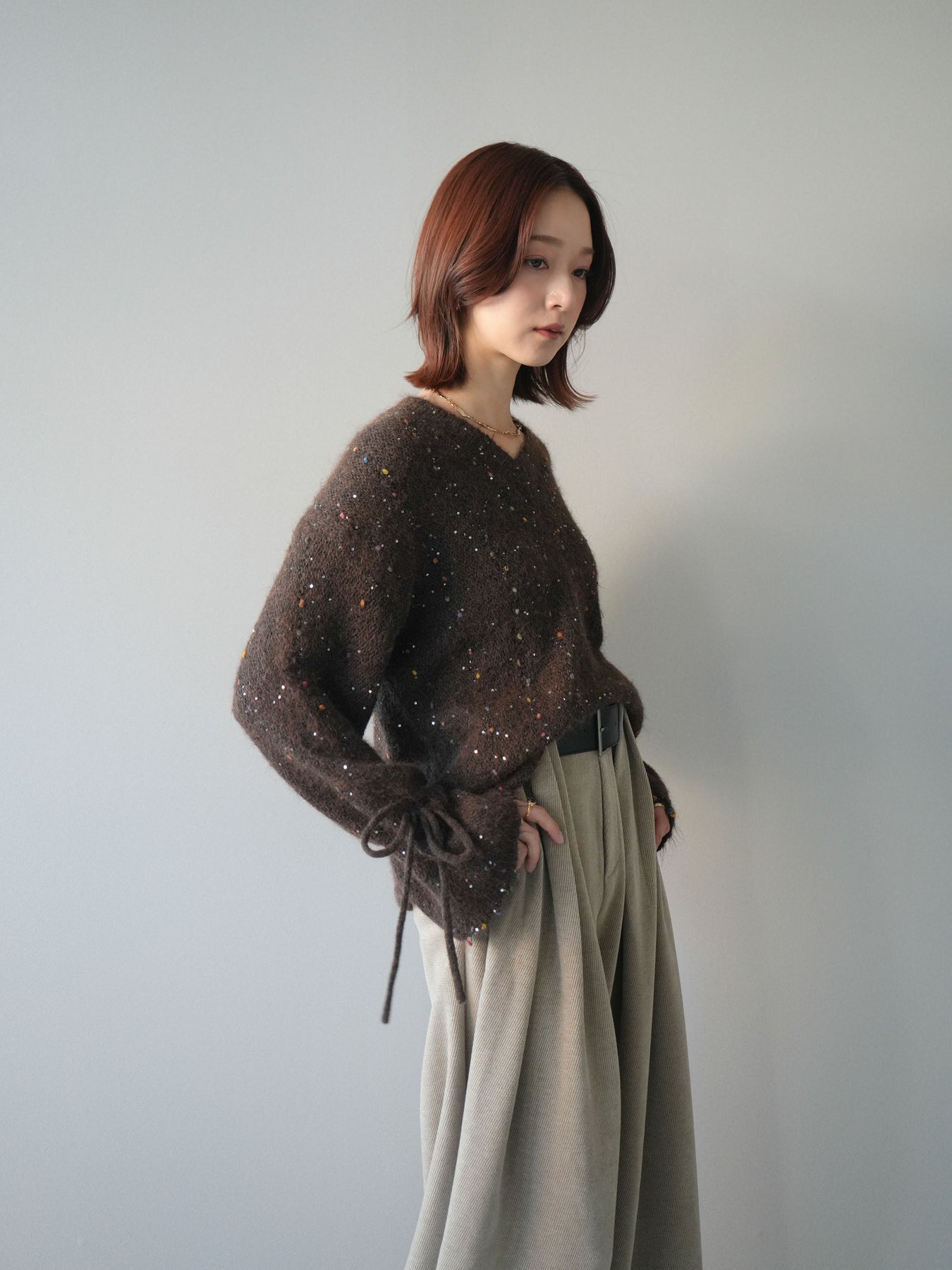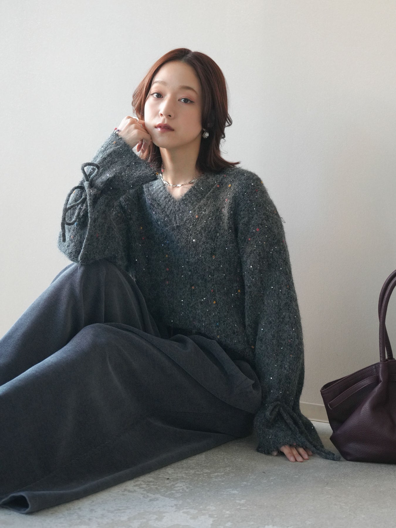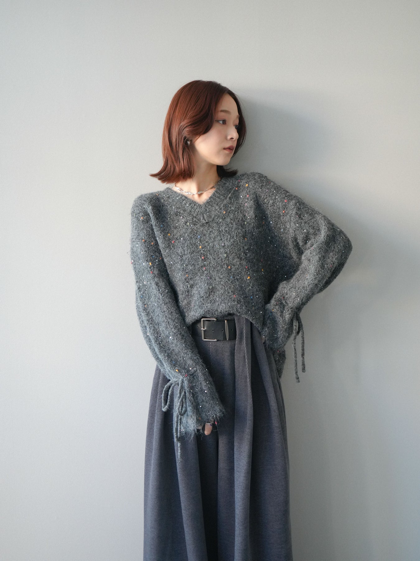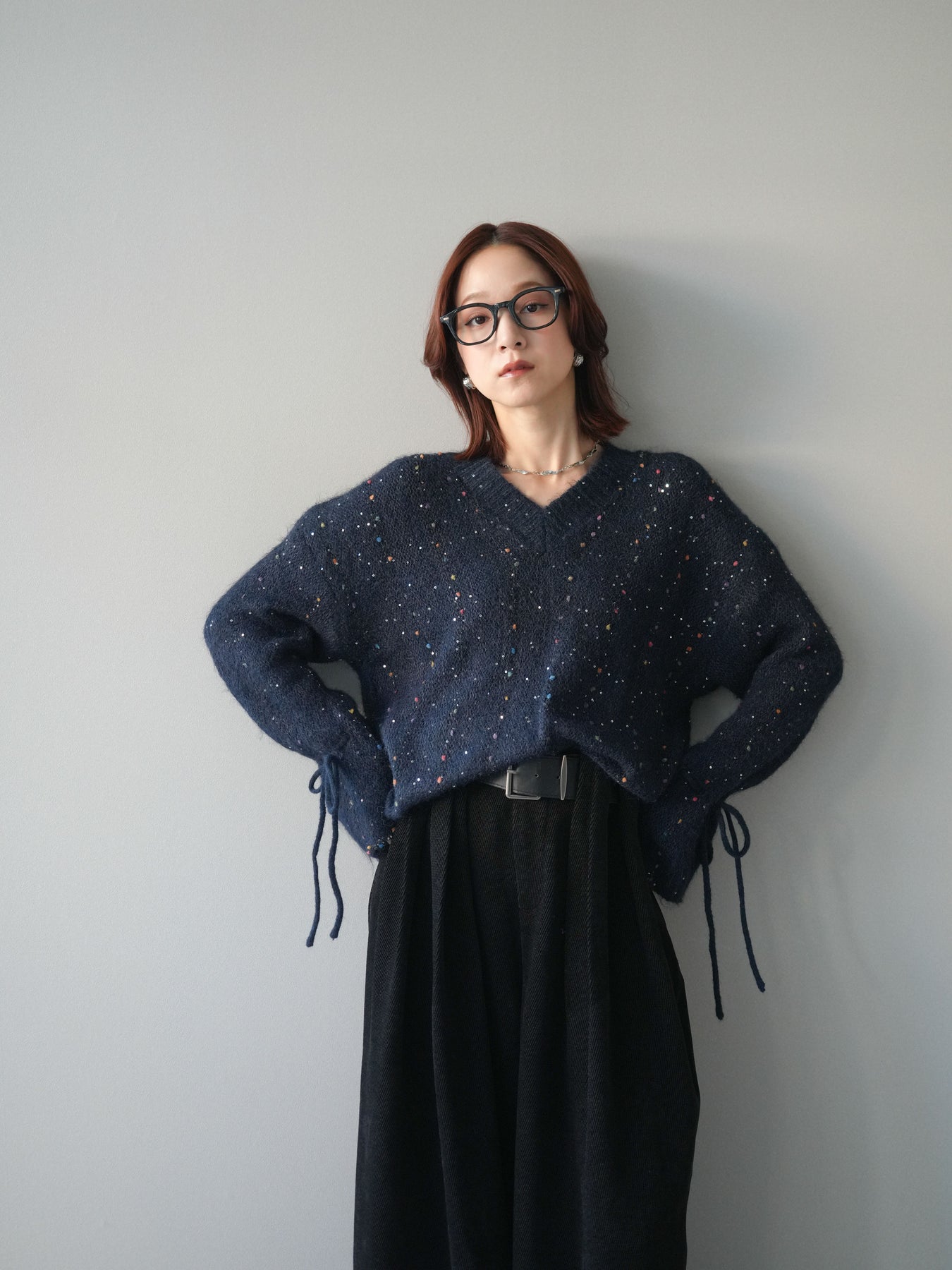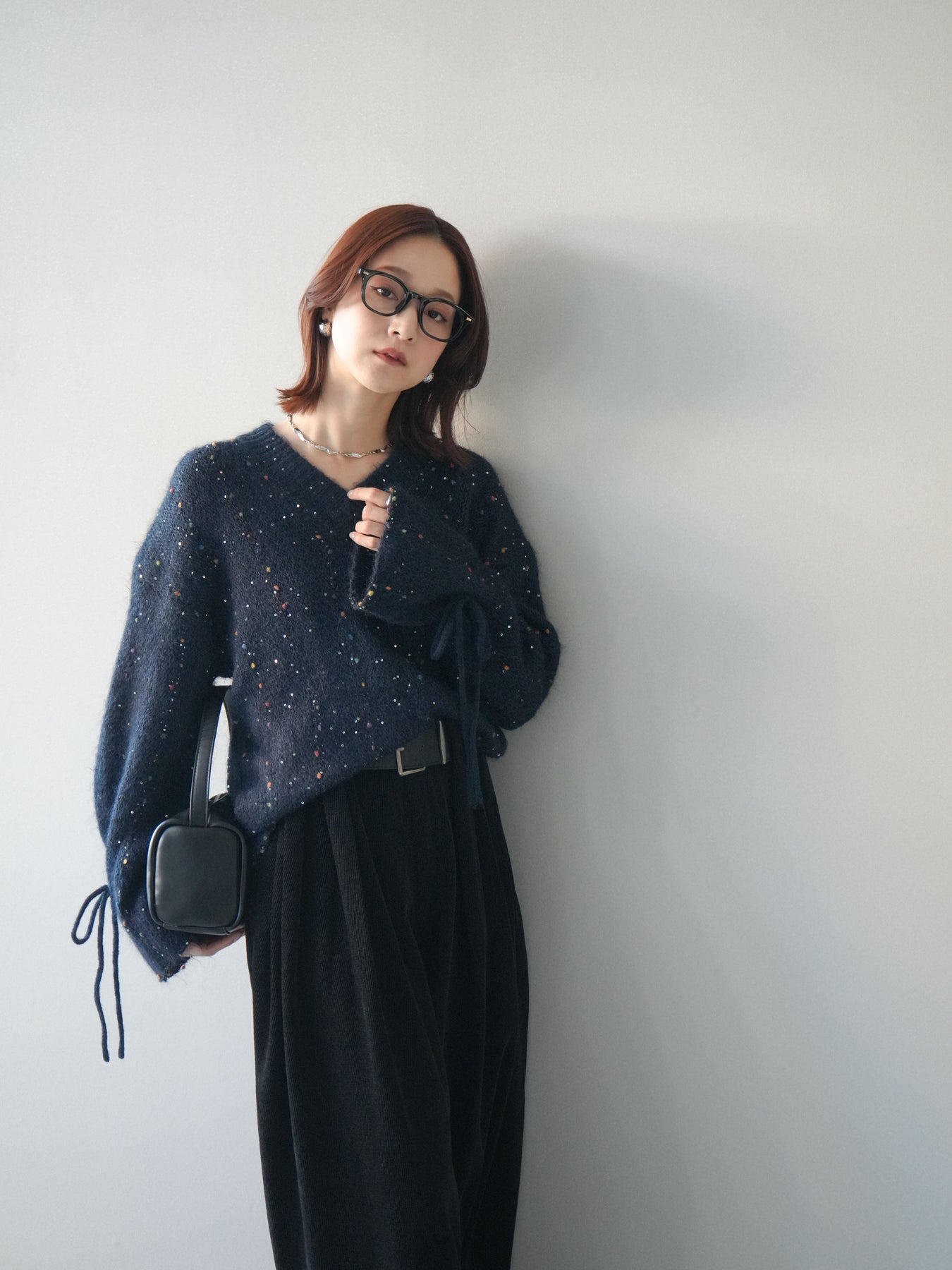 [予約]キャンディースリーブカラーネップスパンコールニットプルオーバー