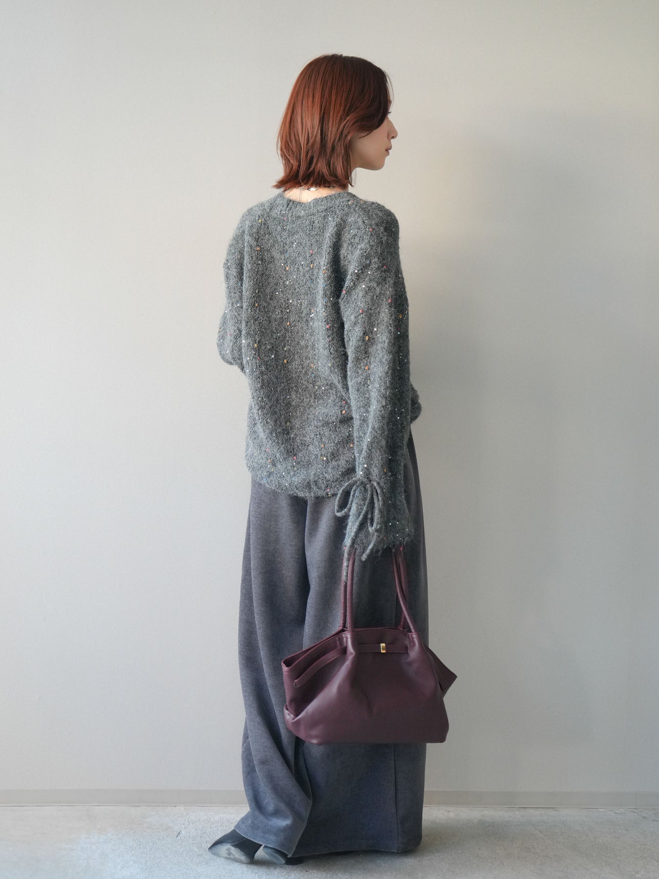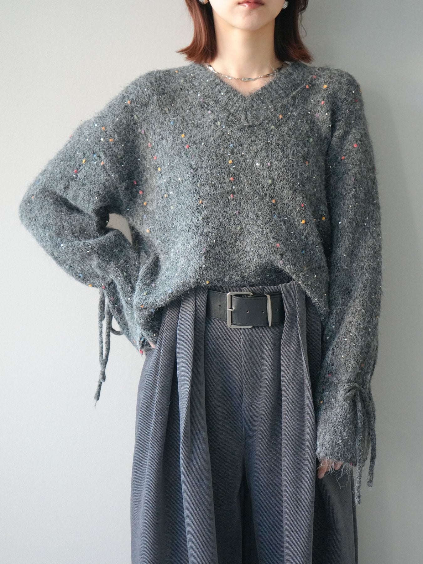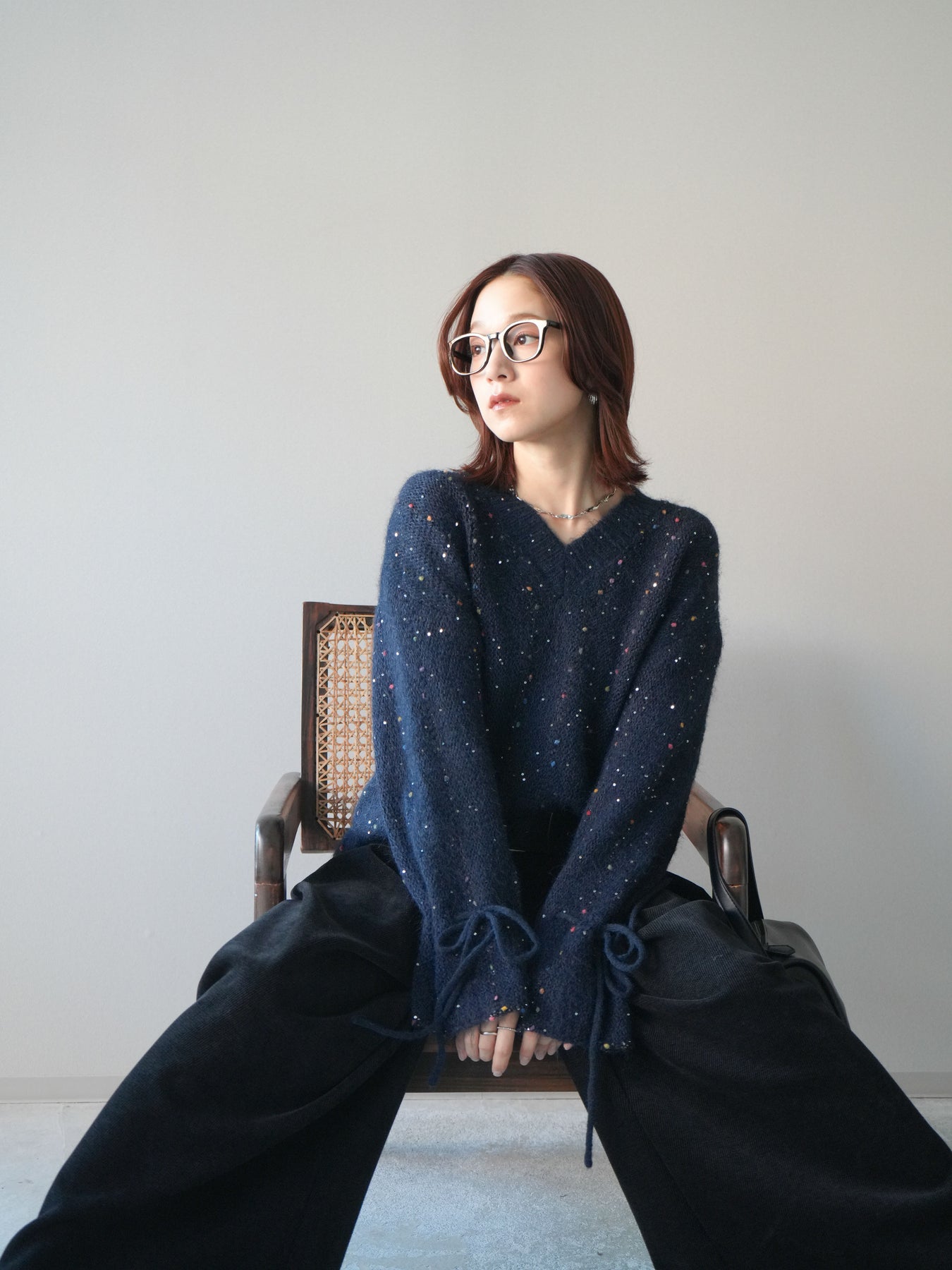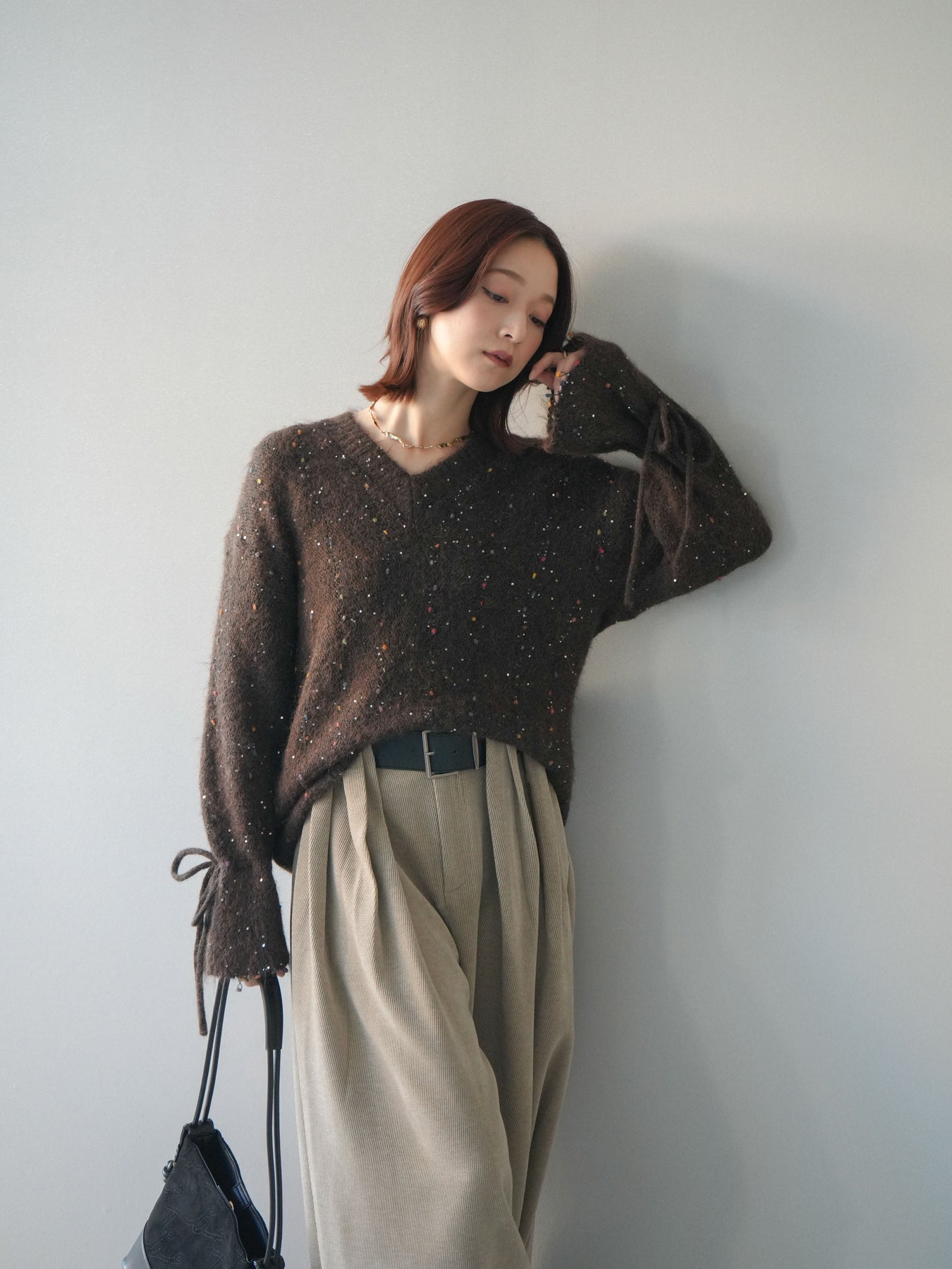 [予約]キャンディースリーブカラーネップスパンコールニットプルオーバー