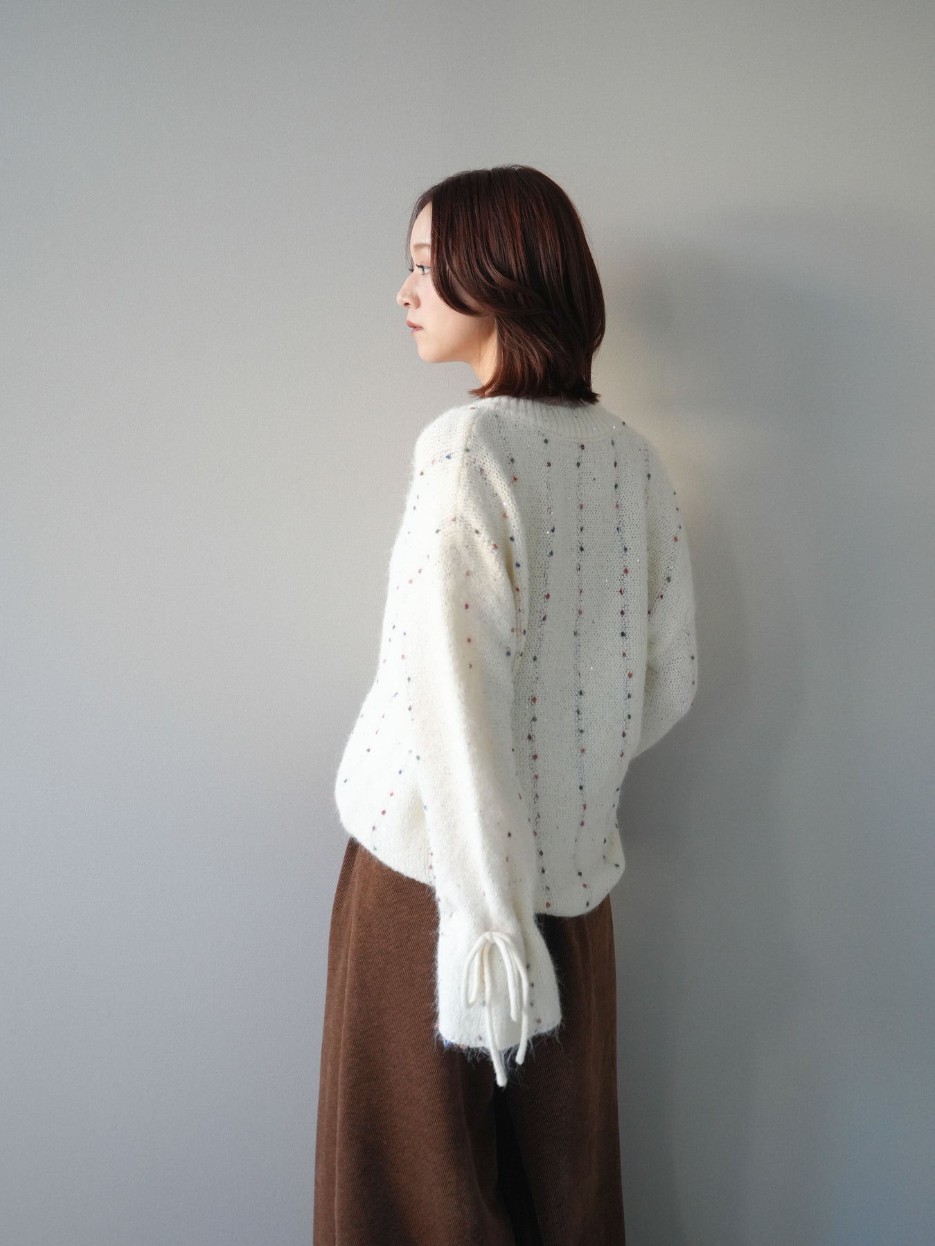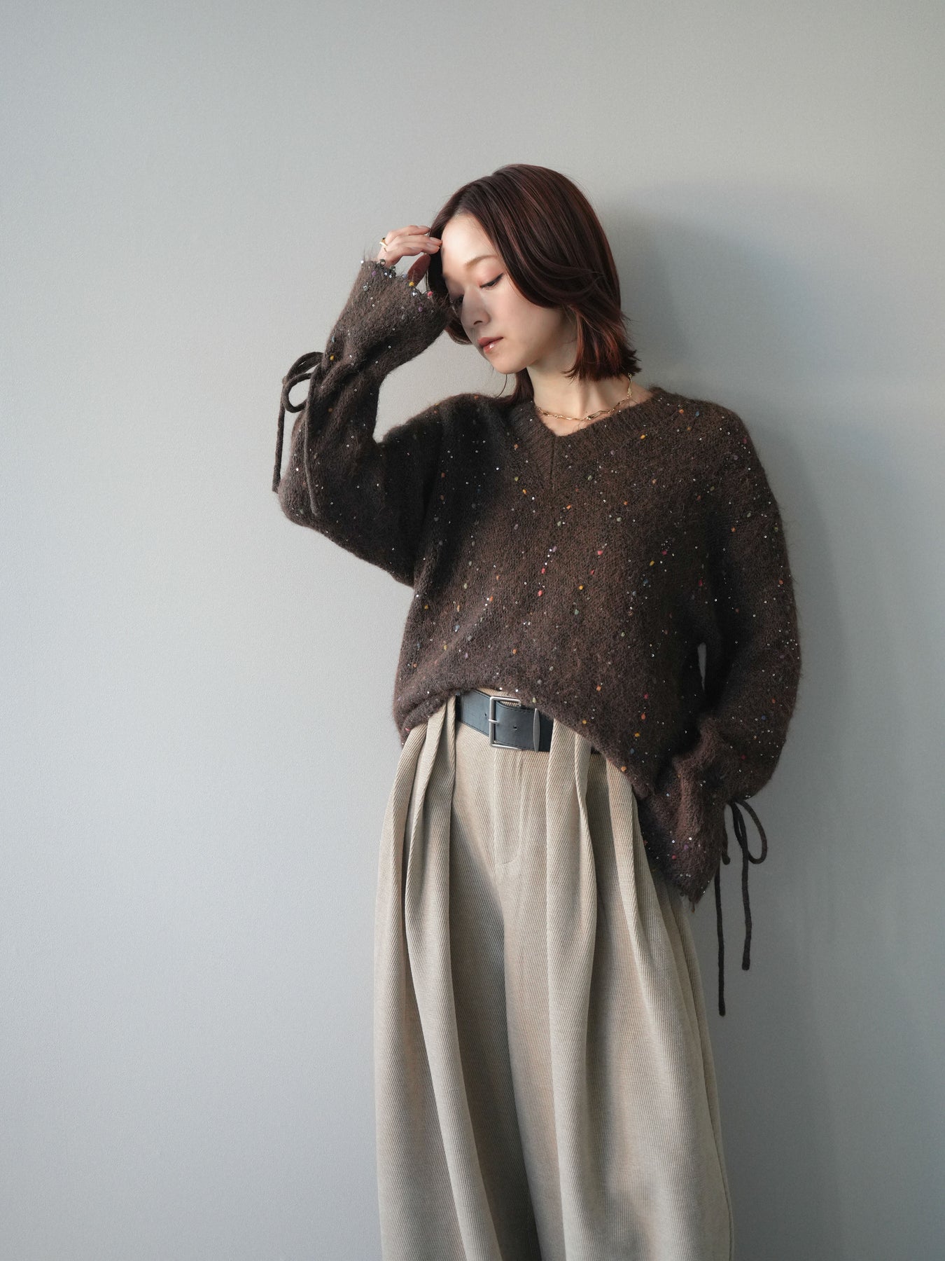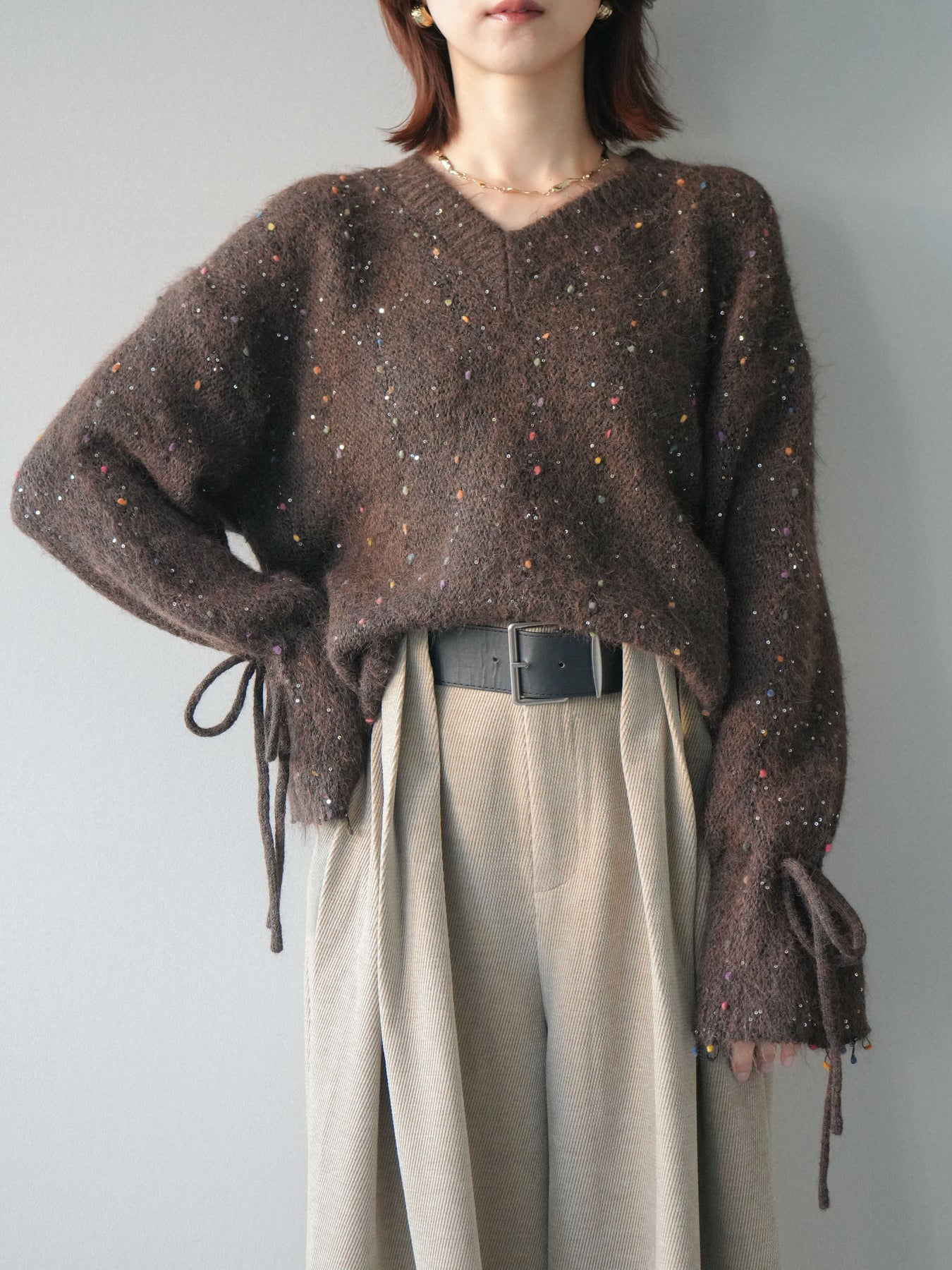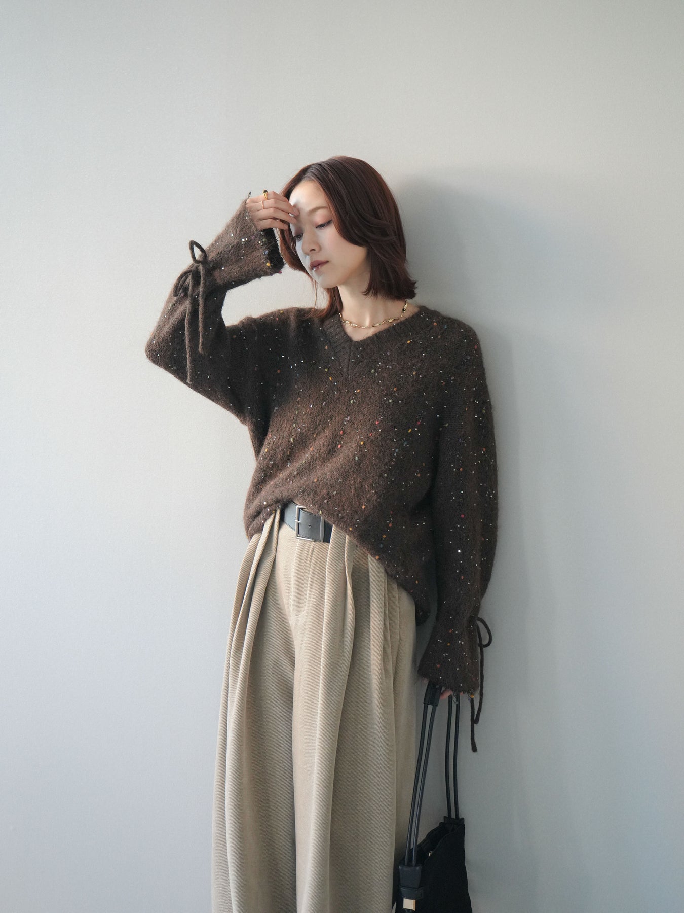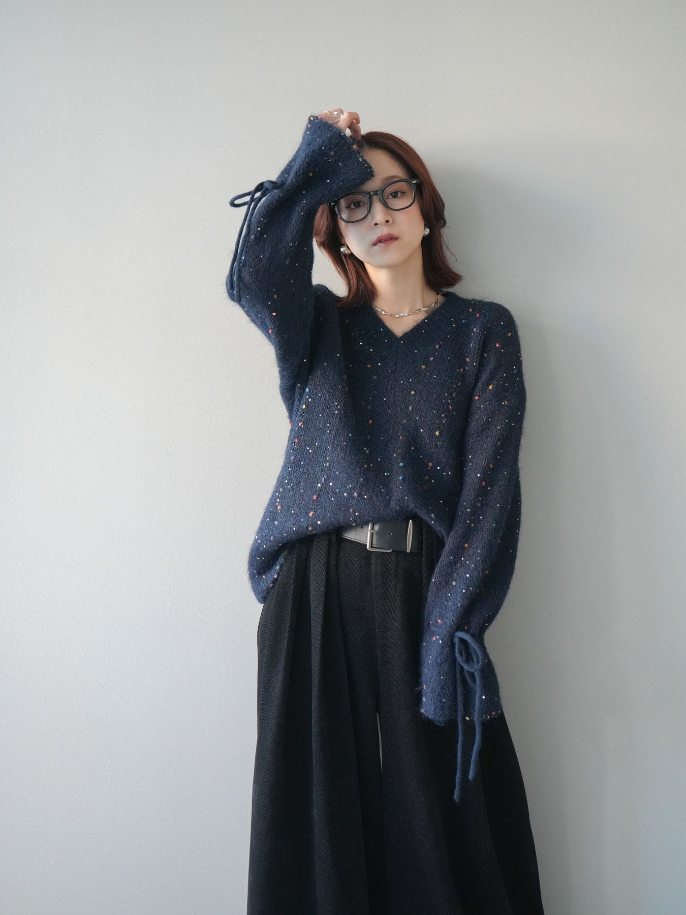 [予約]キャンディースリーブカラーネップスパンコールニットプルオーバー