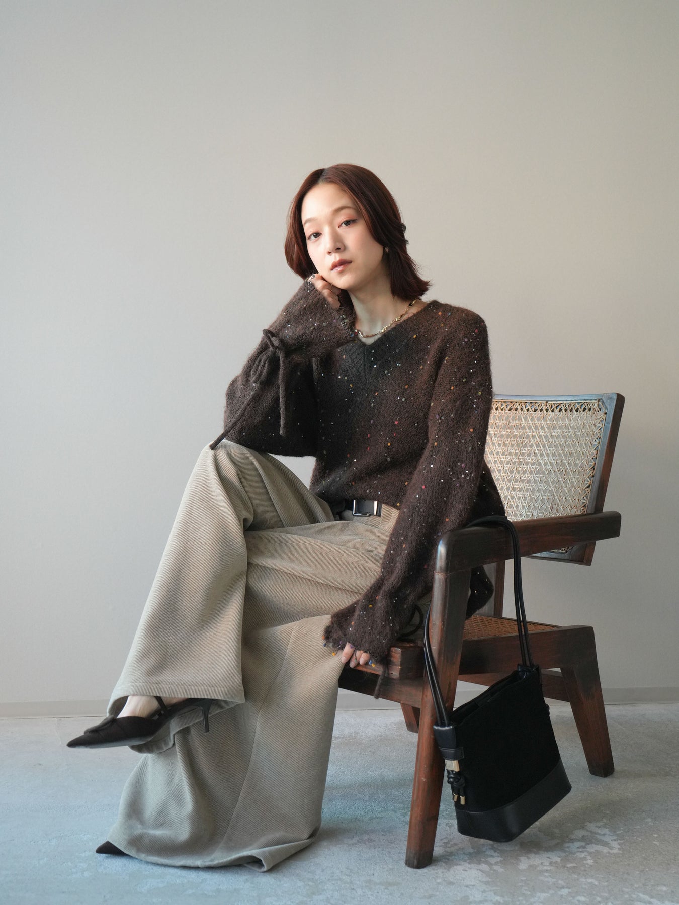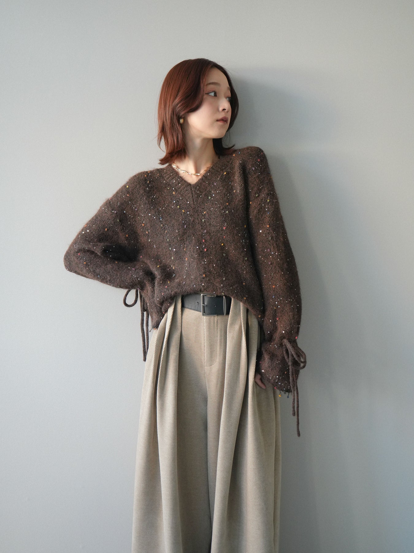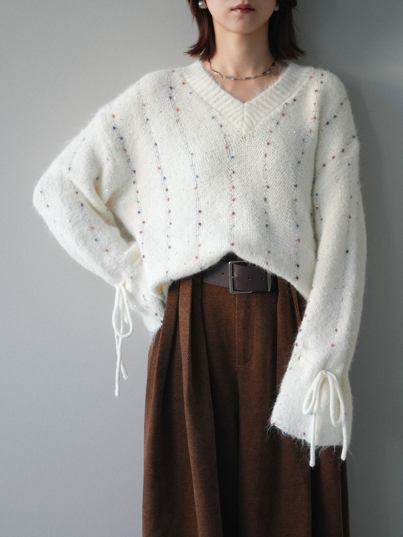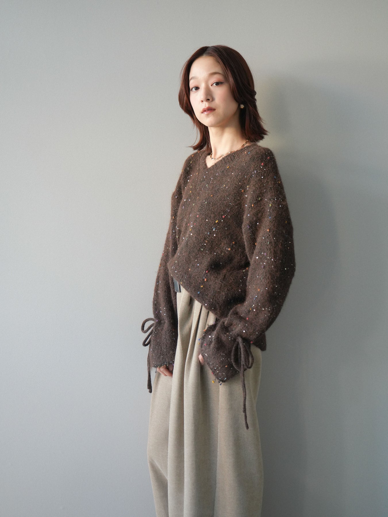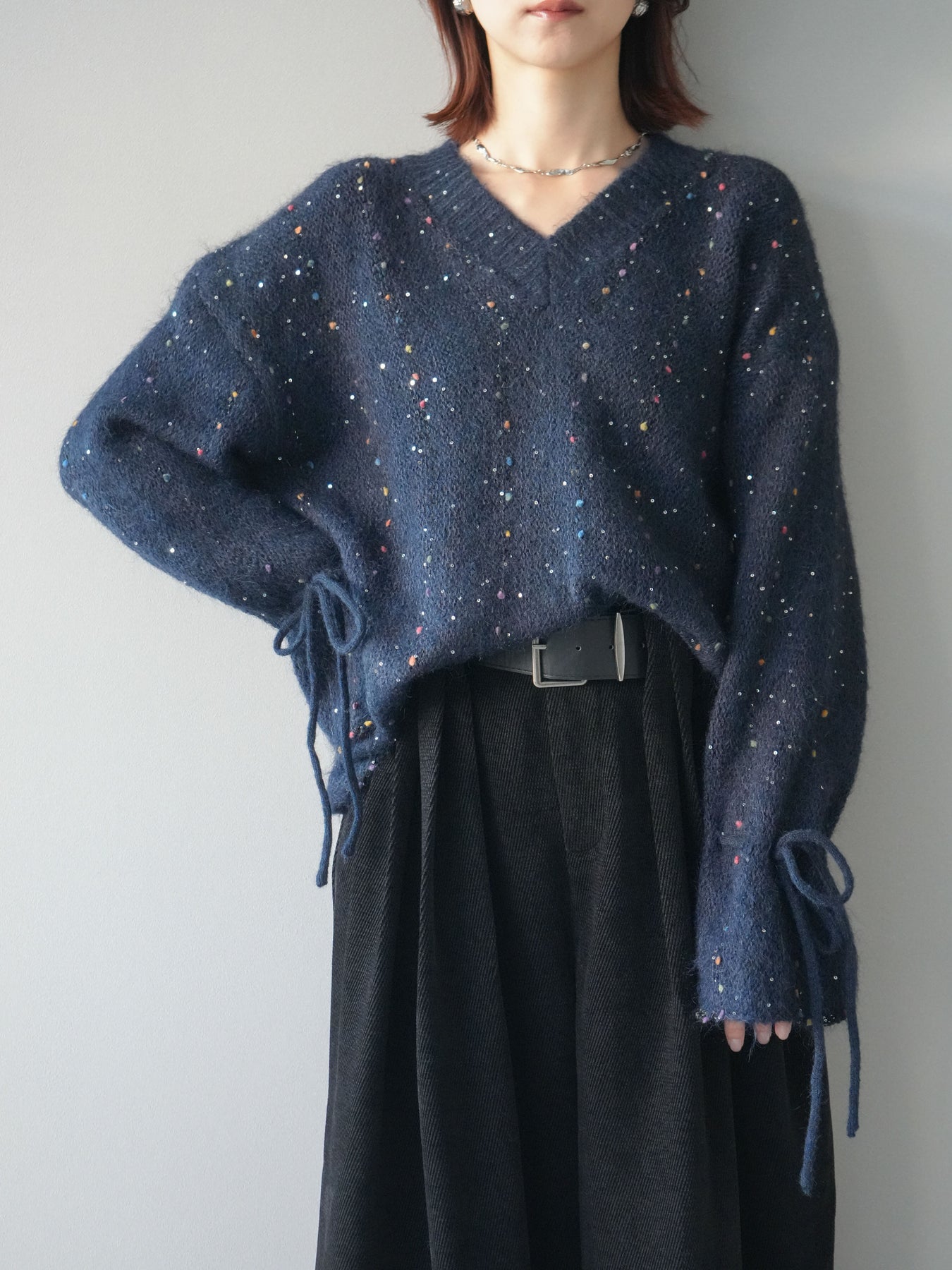 [予約]キャンディースリーブカラーネップスパンコールニットプルオーバー