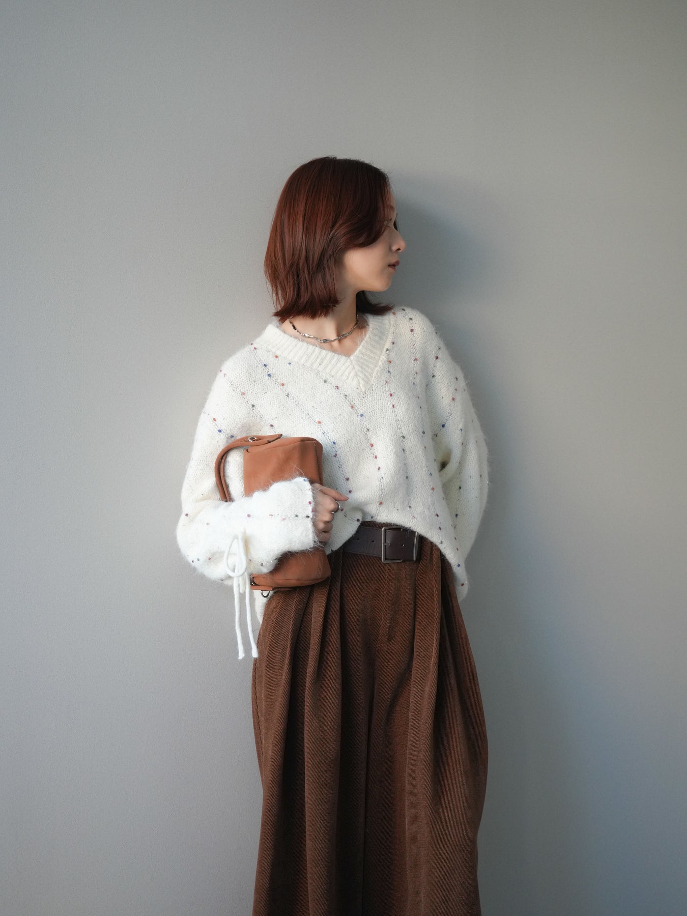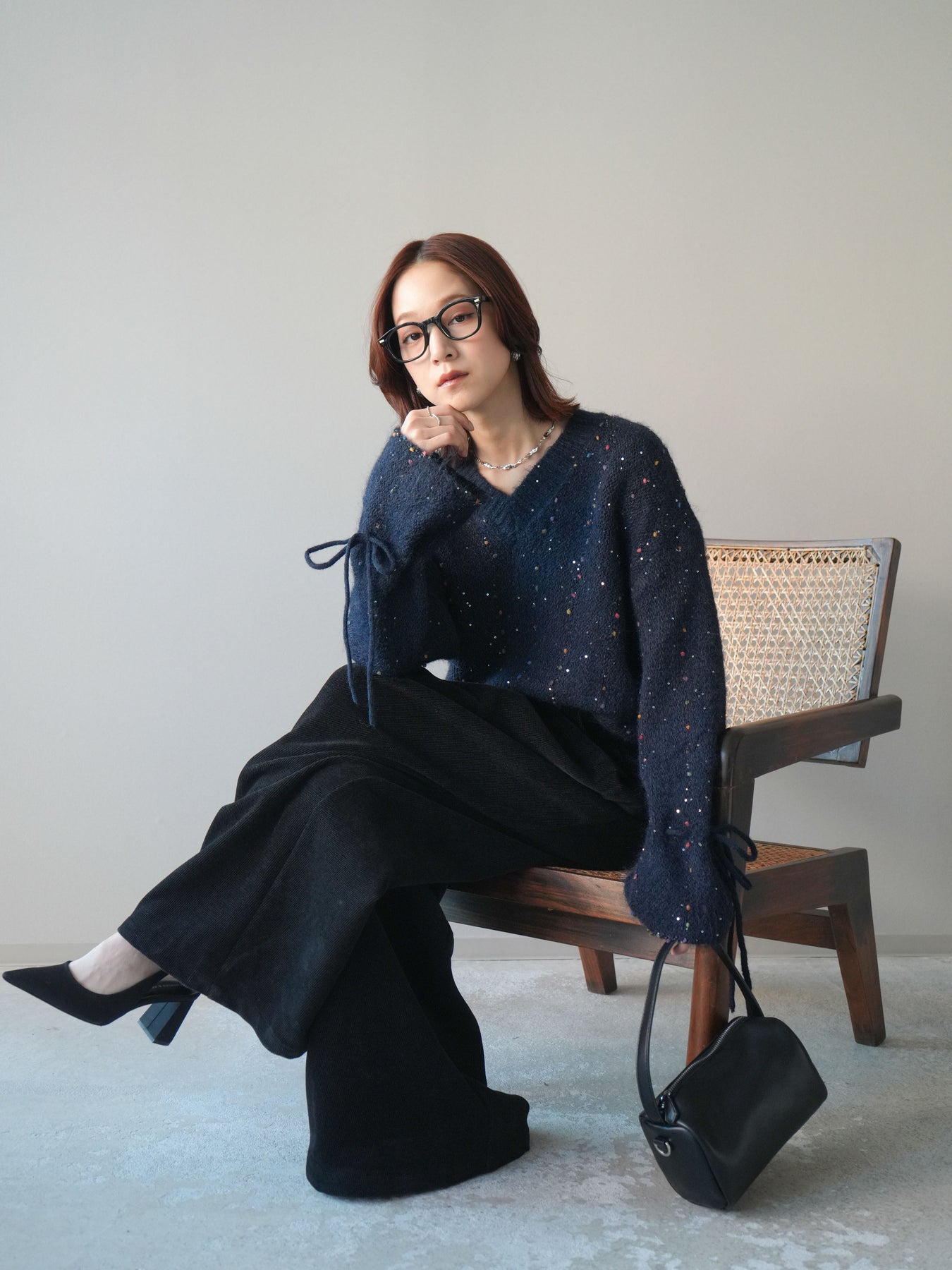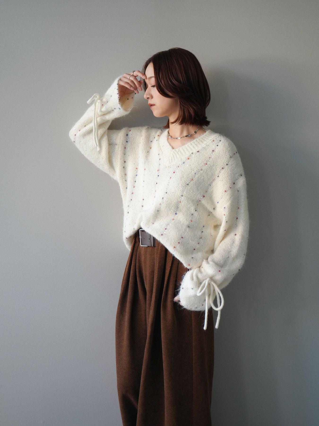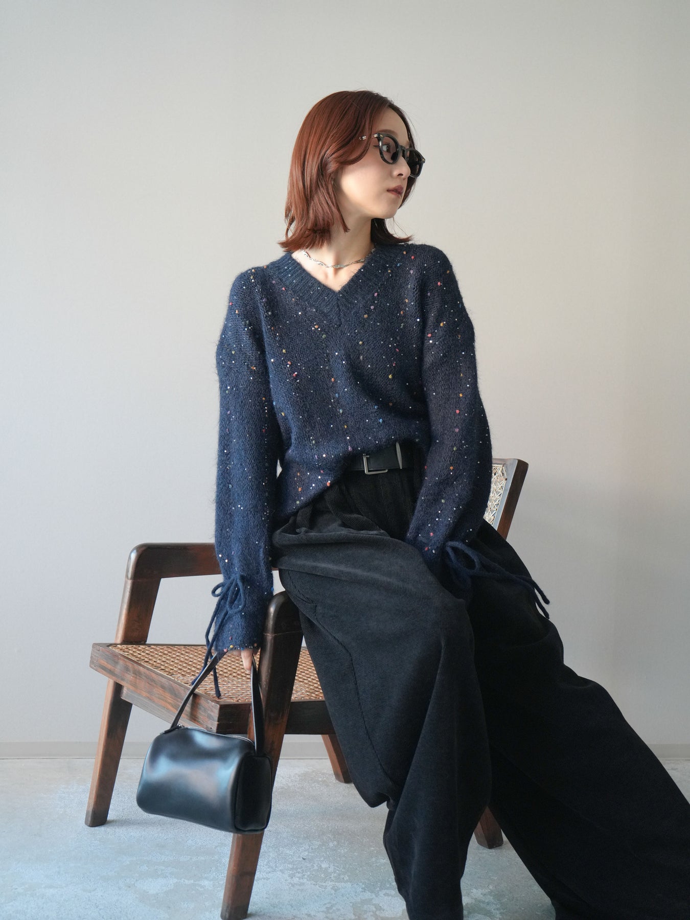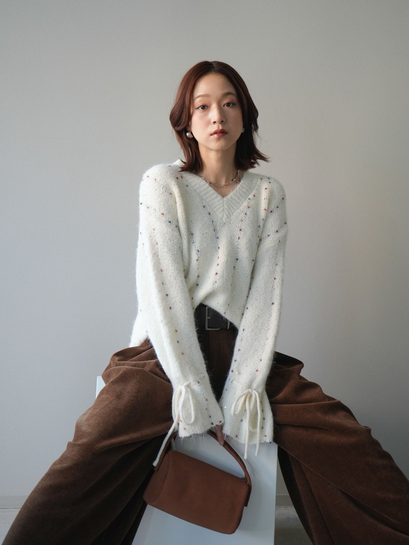 [予約]キャンディースリーブカラーネップスパンコールニットプルオーバー