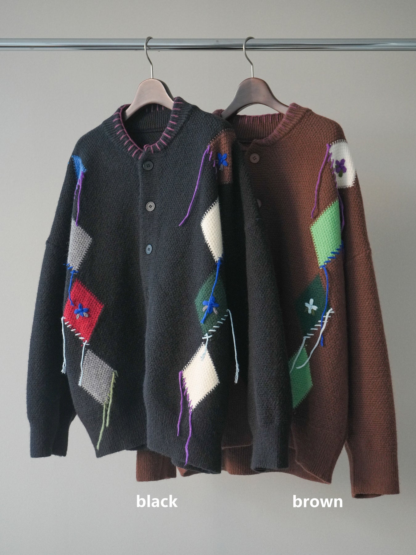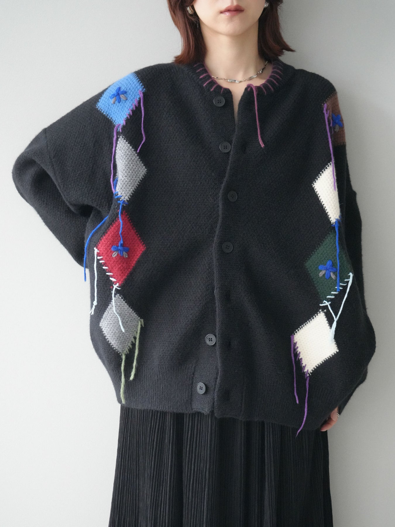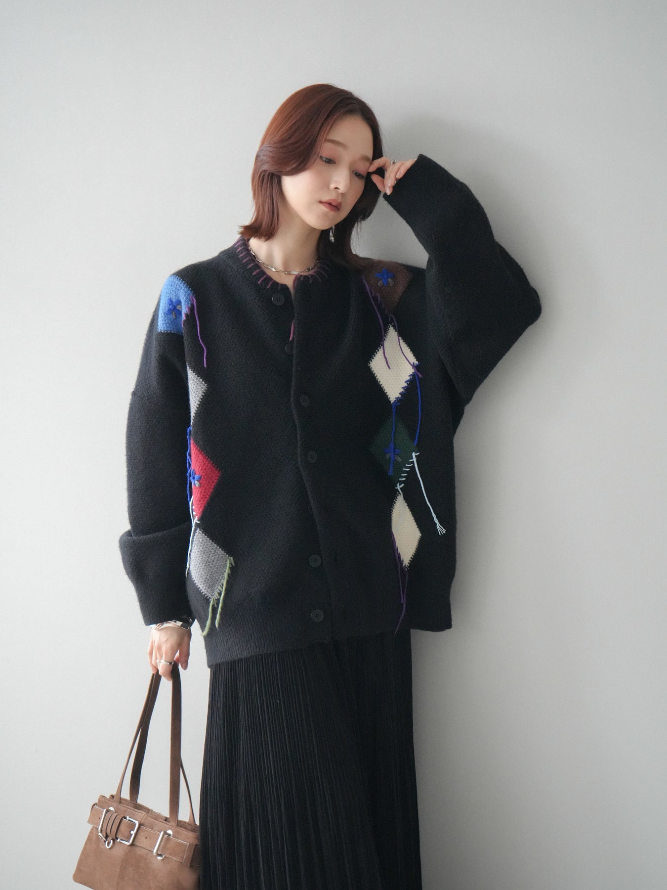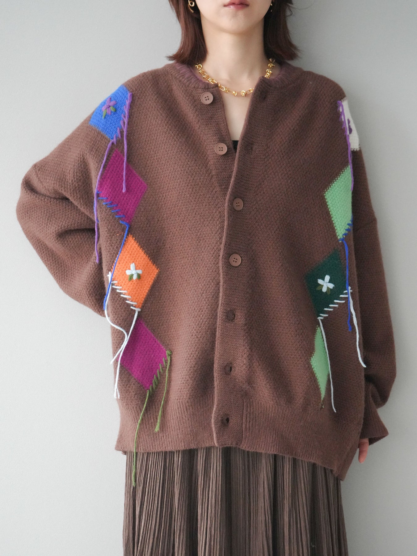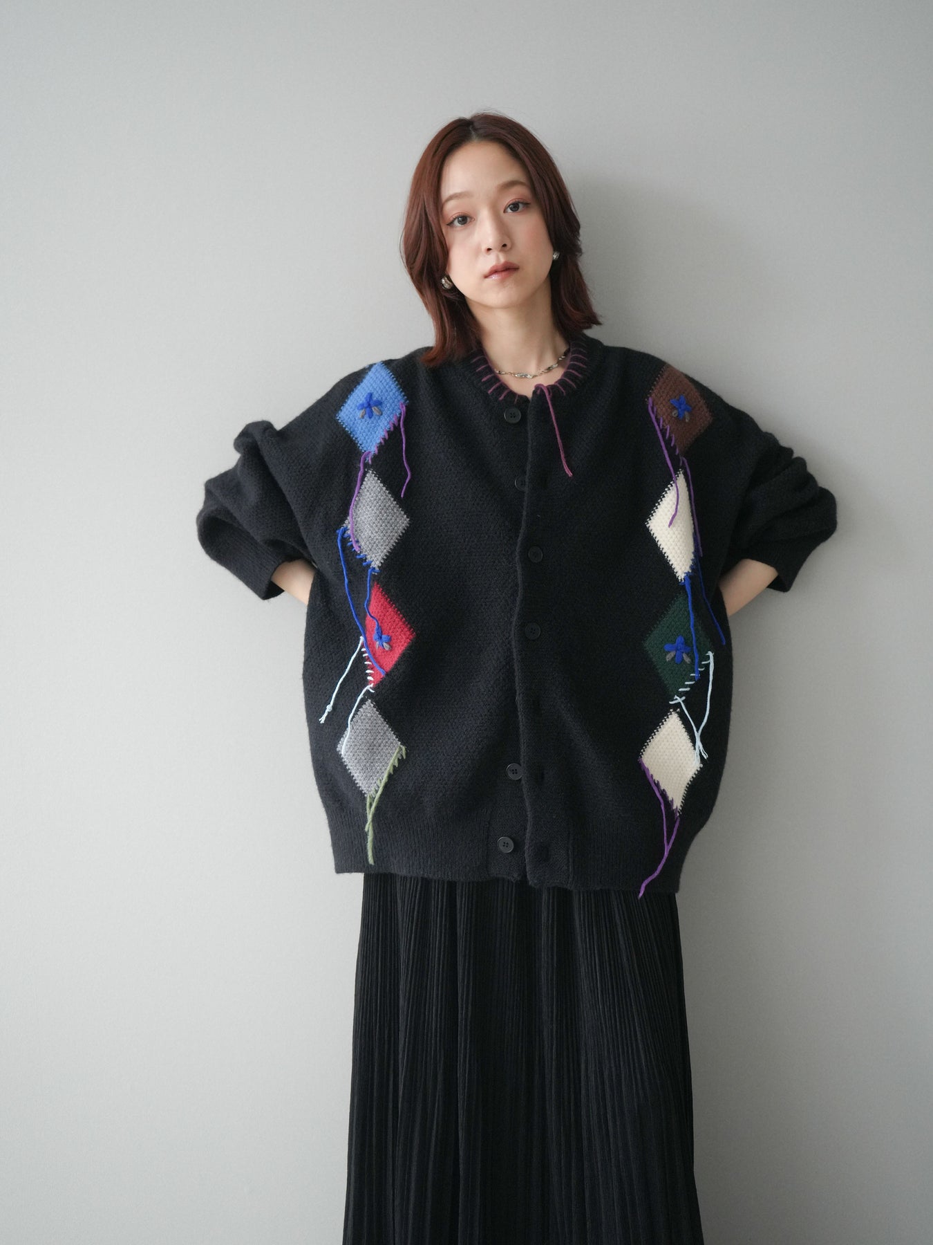 ◆ [予約]ハンドステッチアーガイルデザインニットカーディガン