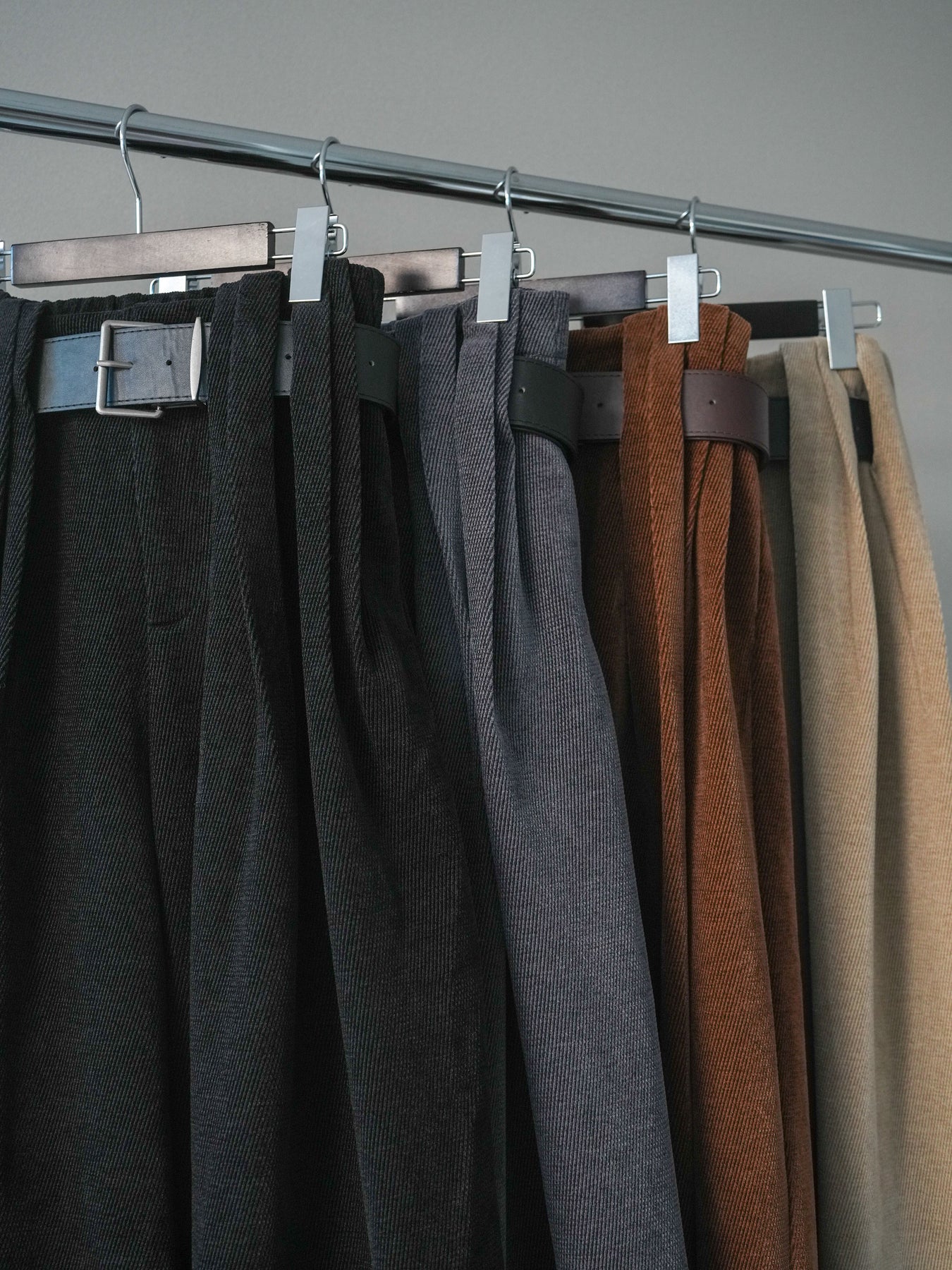 立体的なループデザインが印象的な、存在感抜群のコールテンワイドパンツ。フロントに重なるように配されたループが縦のラインを強調し、歩くたびにゆらめく動きがコーデに奥行きを与えてくれます。しっかりとしたコールテン素材がシルエットを美しく保ちつつ、ワイド特有のリラックス感も両立。セットのベルトがウエストまわりを引き締め、スタイリングをバランスよくまとめてくれます。シンプルなトップスと合わせるだけで主役級の着こなしが完成する、個性と上品さを備えた一本です。