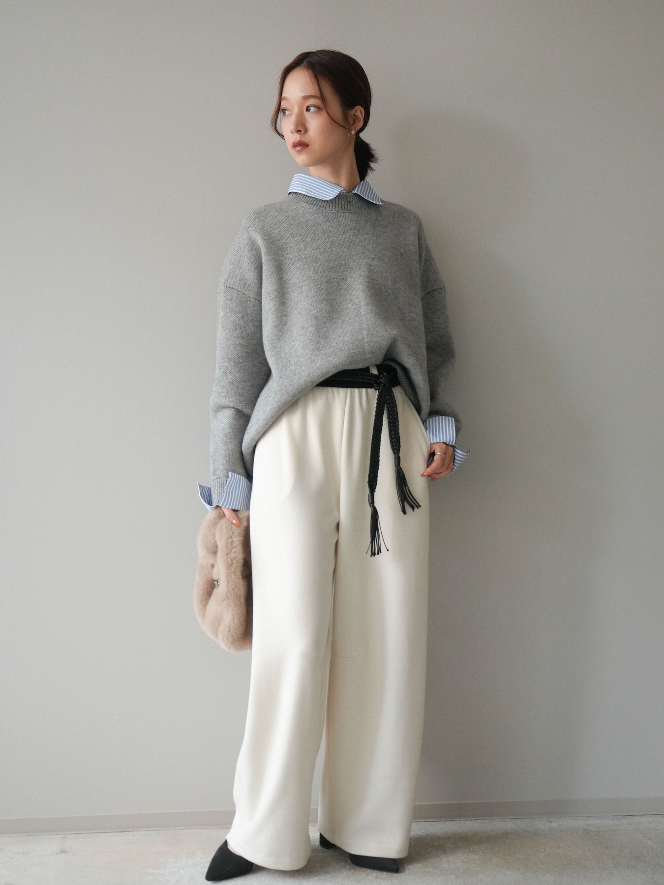 ◆ [予約]編み込みベルト付きウエスト配色スエットパンツ