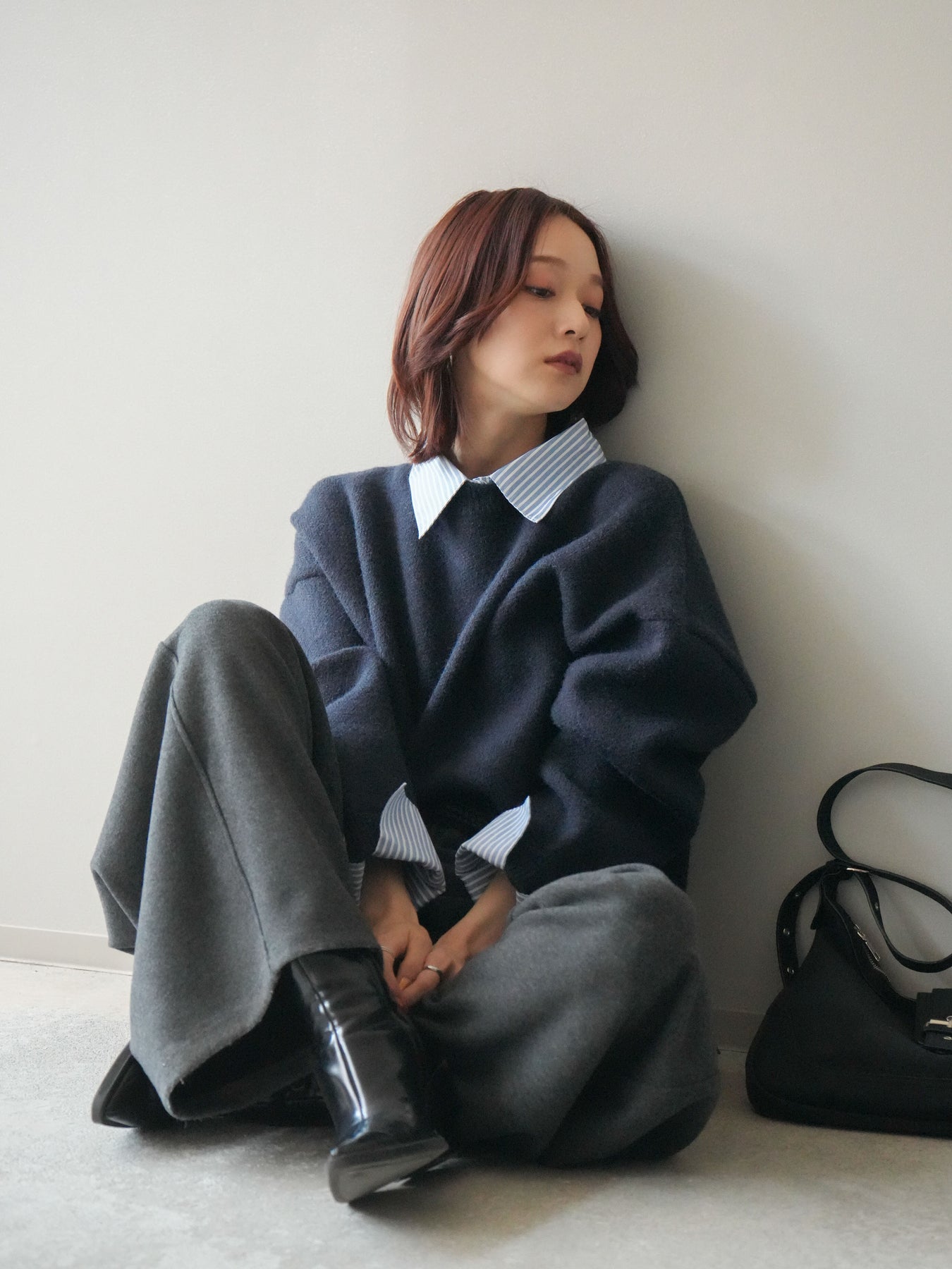 ◆ [予約]2WAYストライプ襟ニットプルオーバー