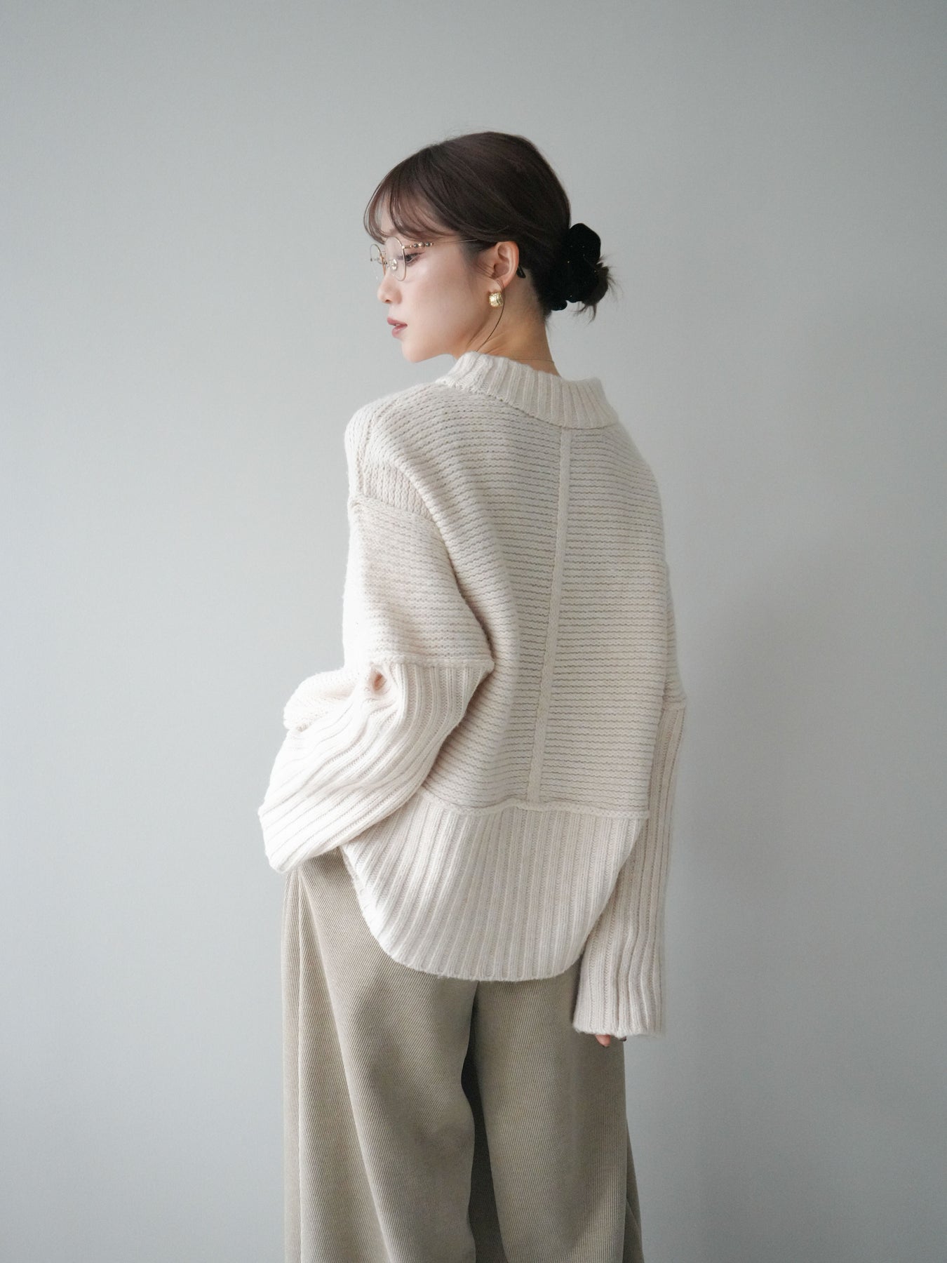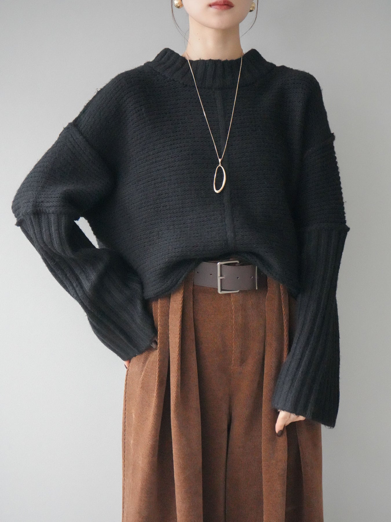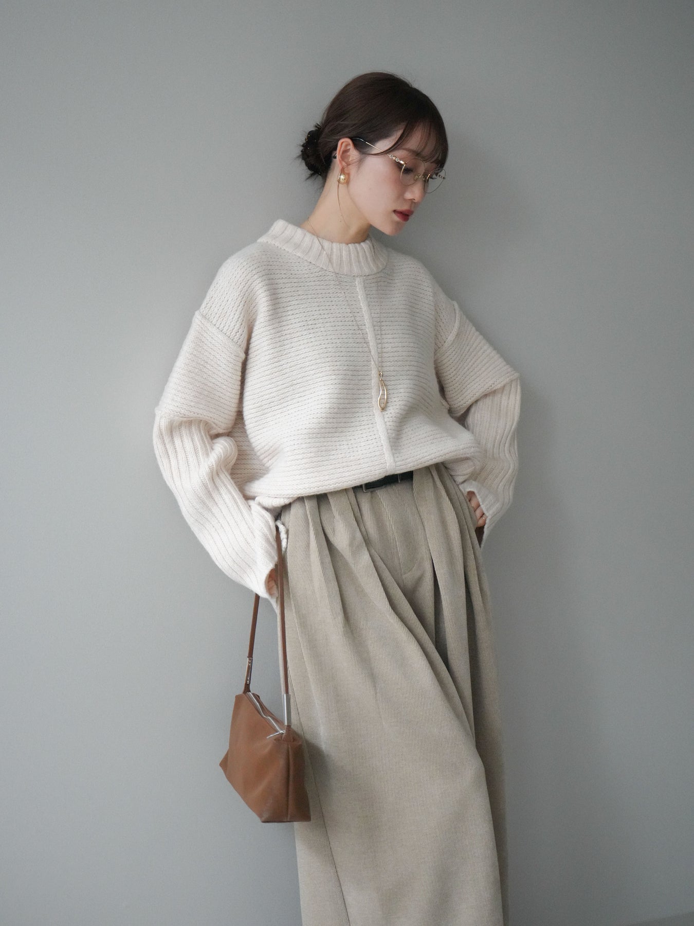 ◆ [予約]編み地切替ボトルネックニットプルオーバー