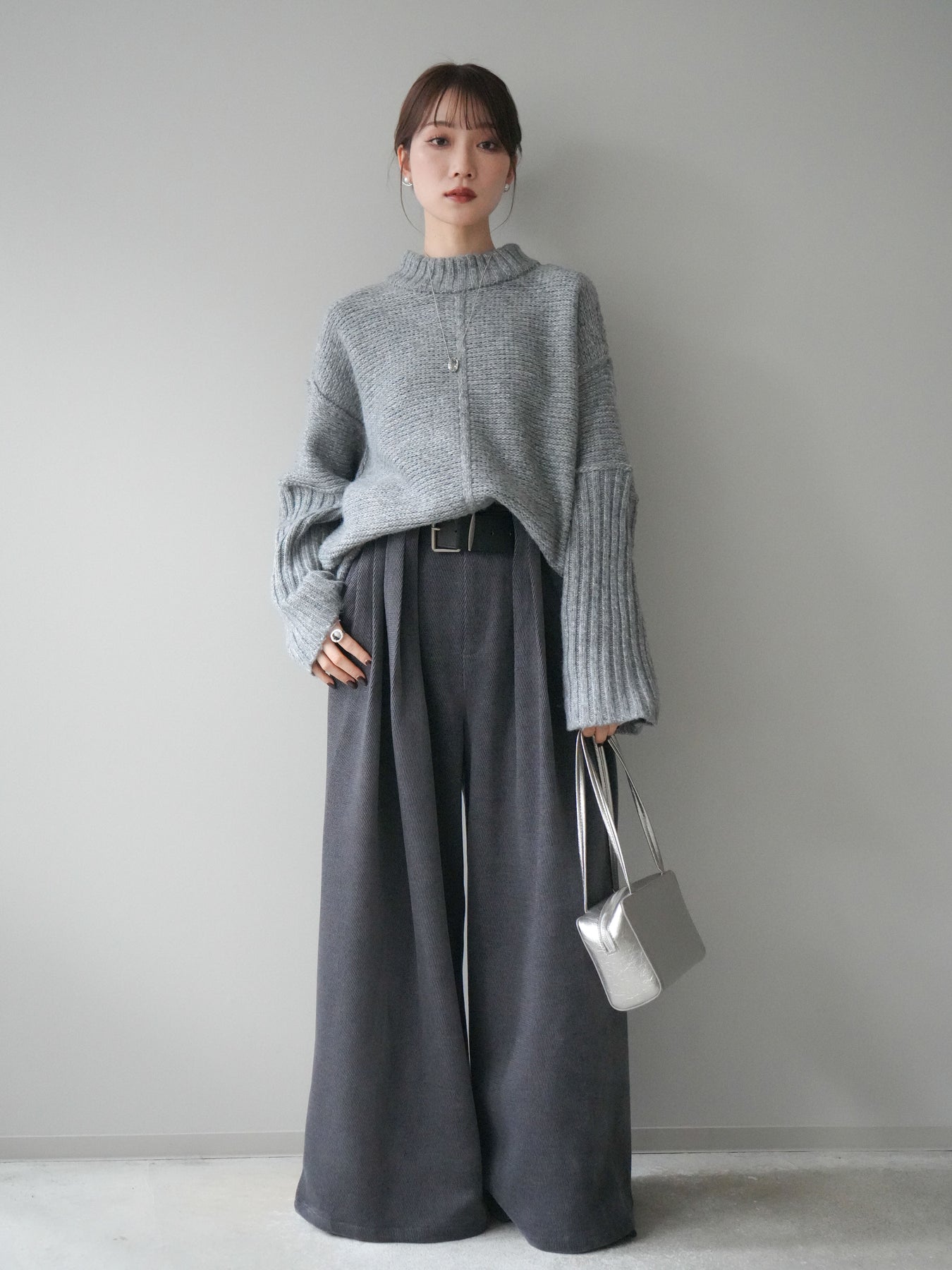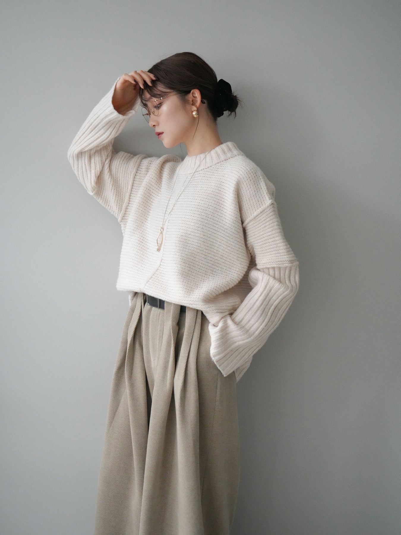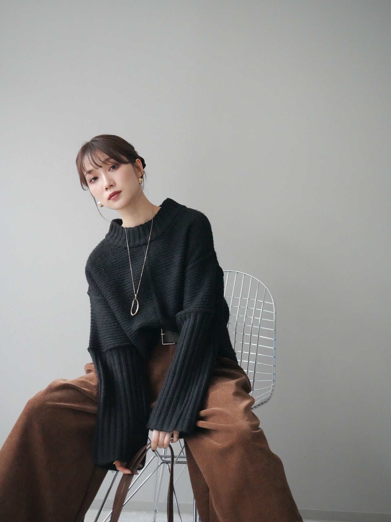 ◆ [予約]編み地切替ボトルネックニットプルオーバー