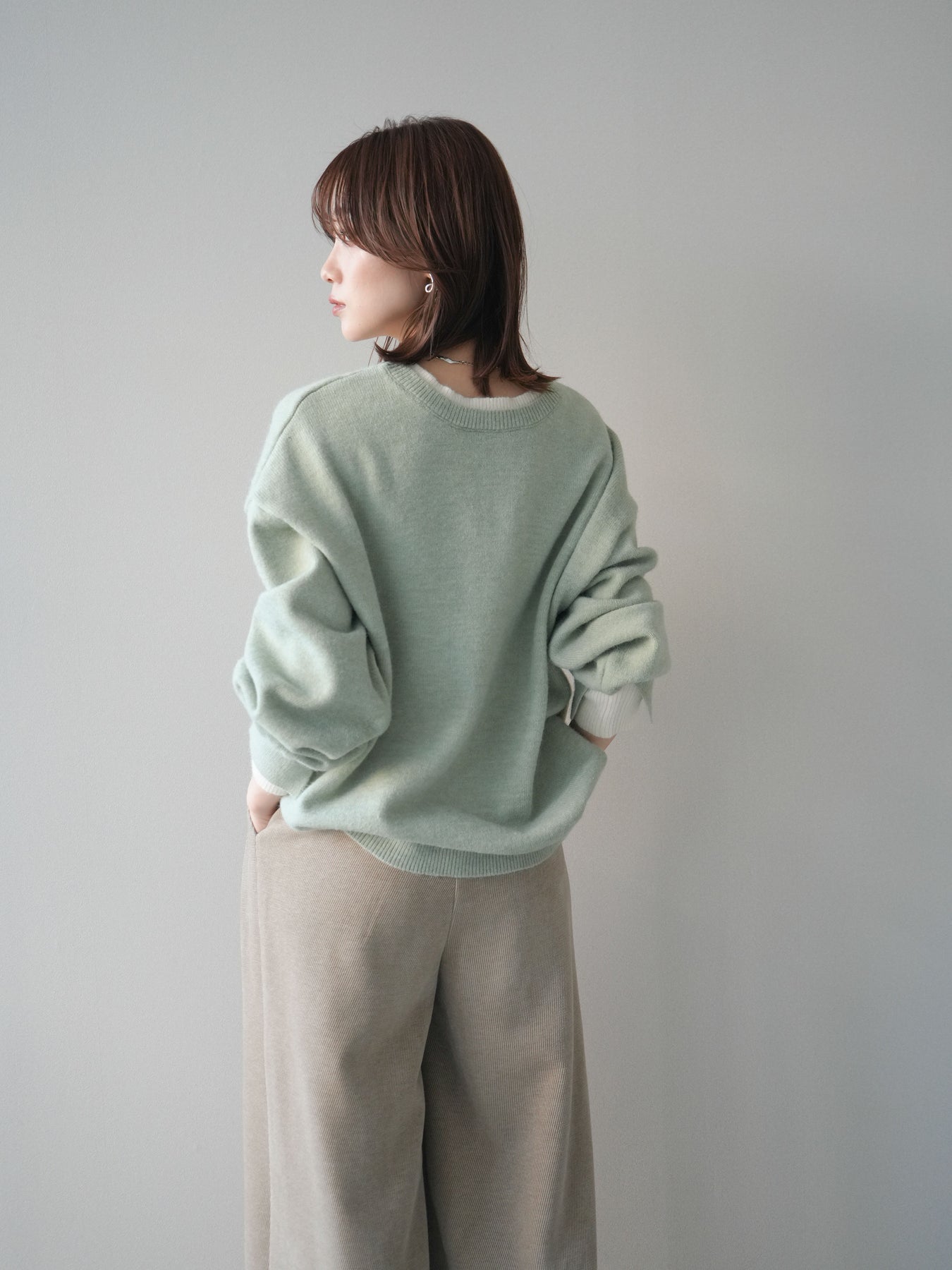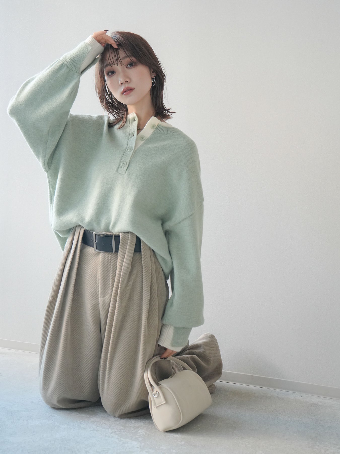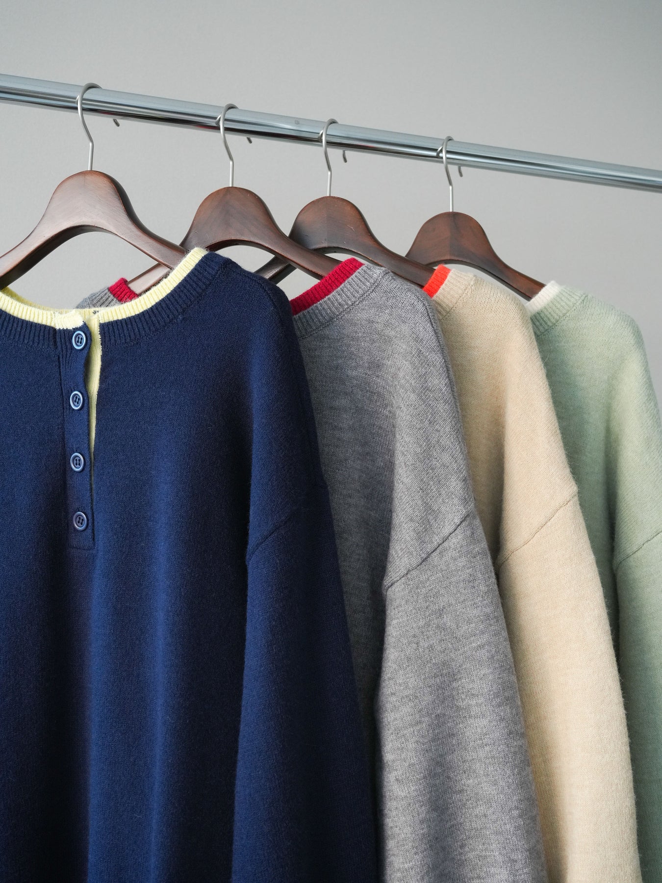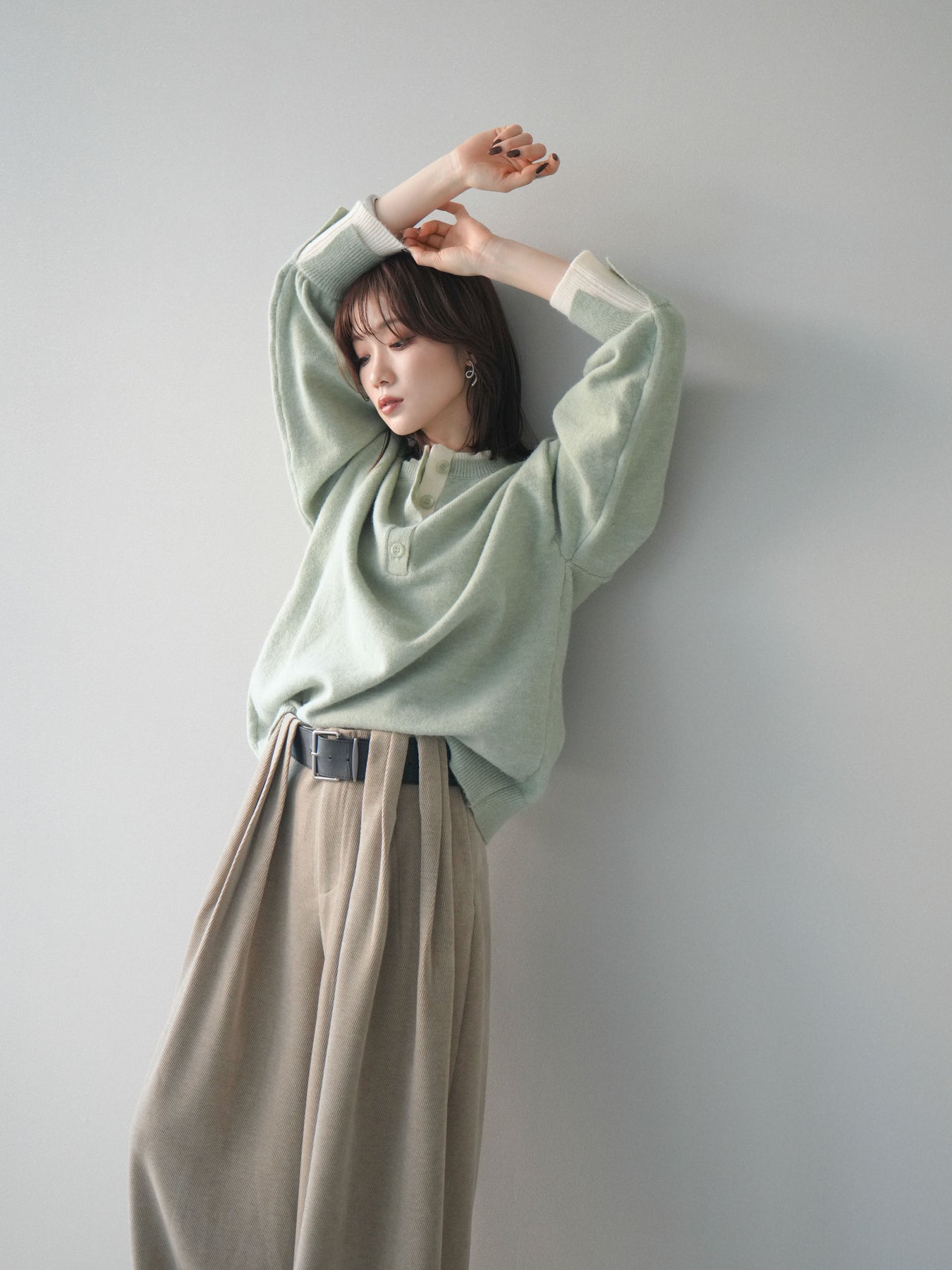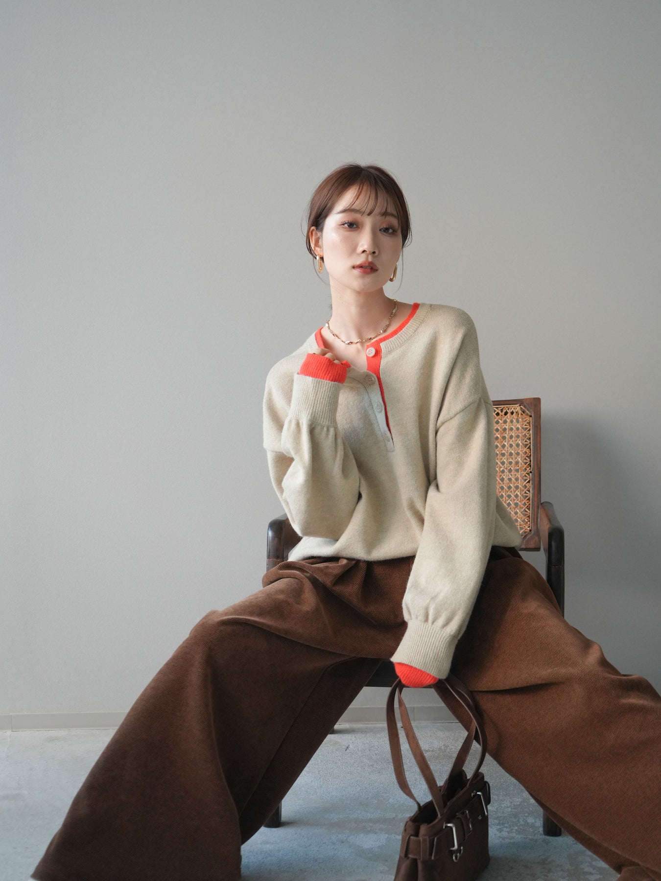 ◆ [予約]ヘンリーネック配色レイヤードニットプルオーバー