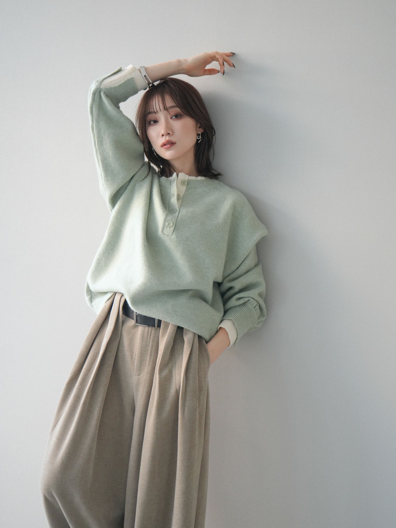 [予約]ヘンリーネック配色レイヤードニットプルオーバー