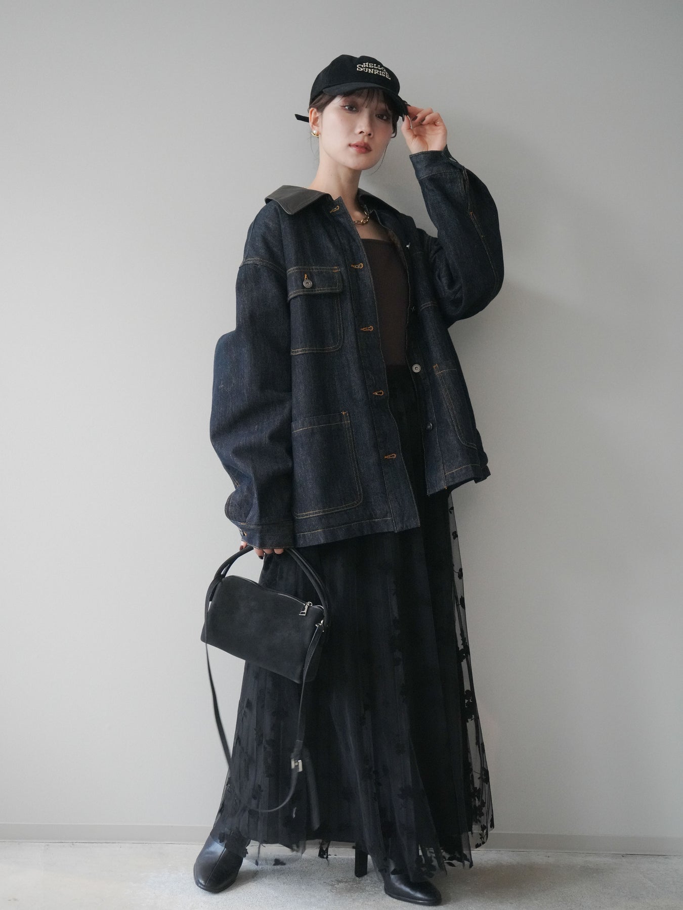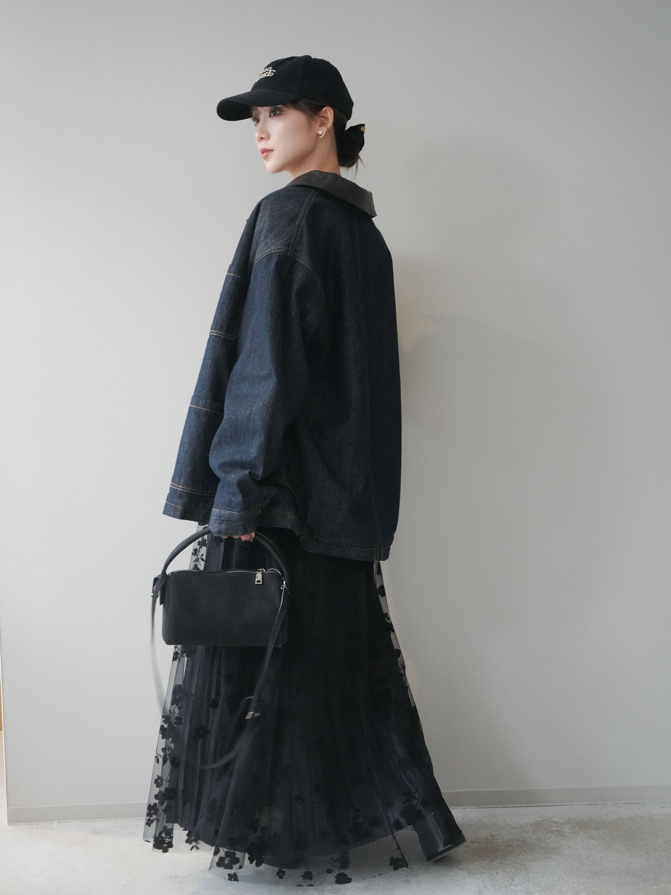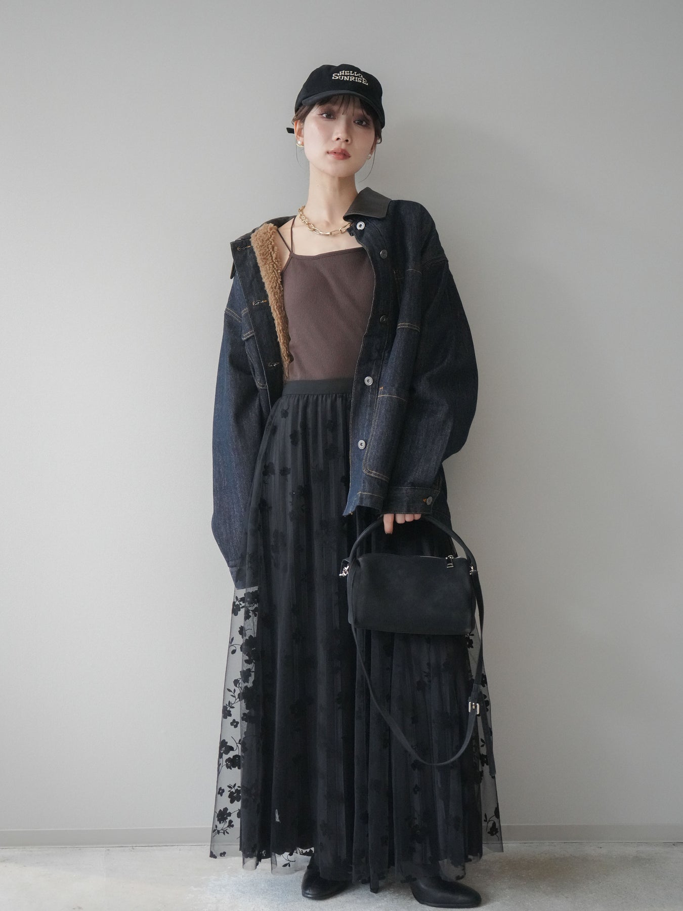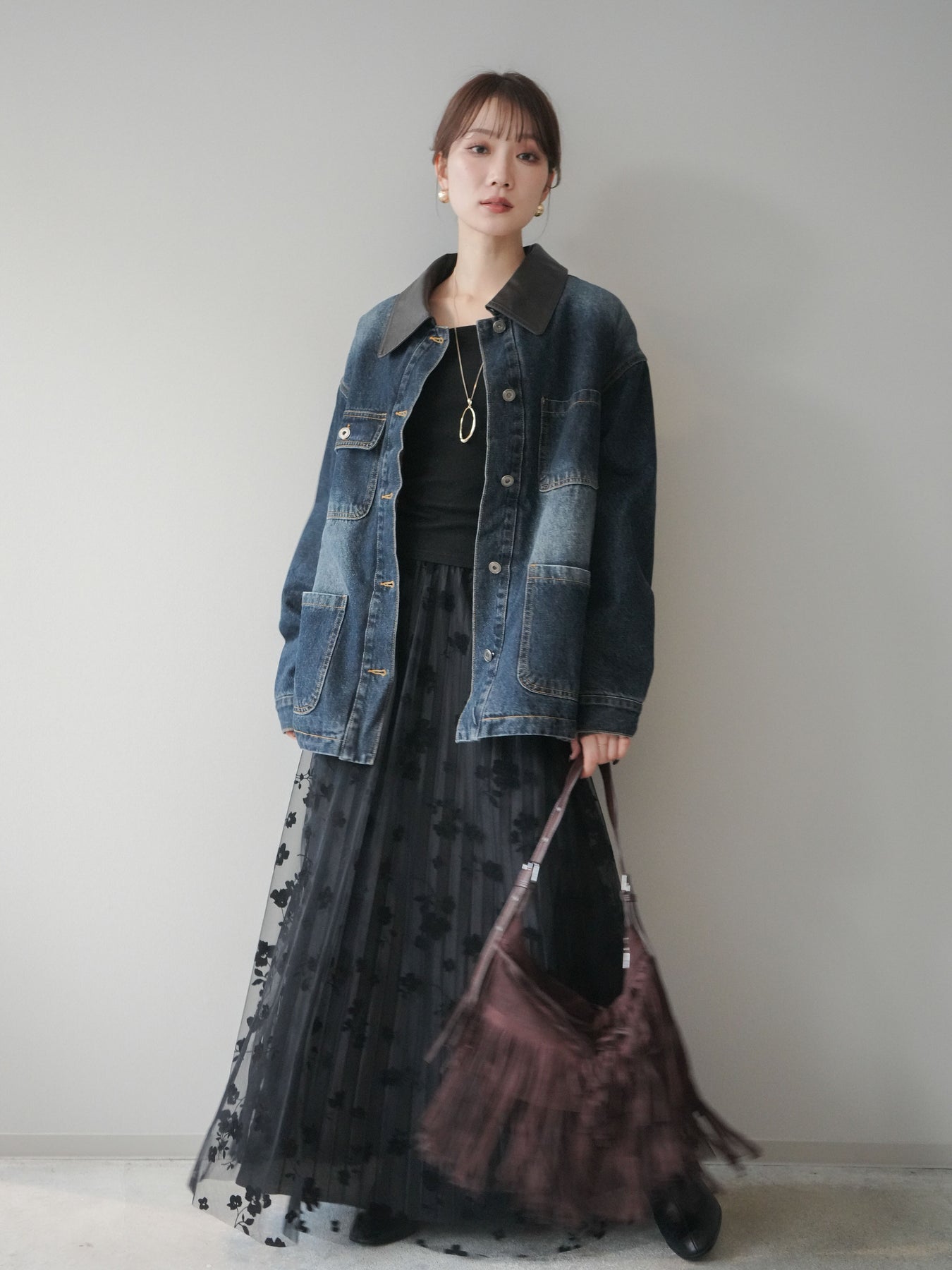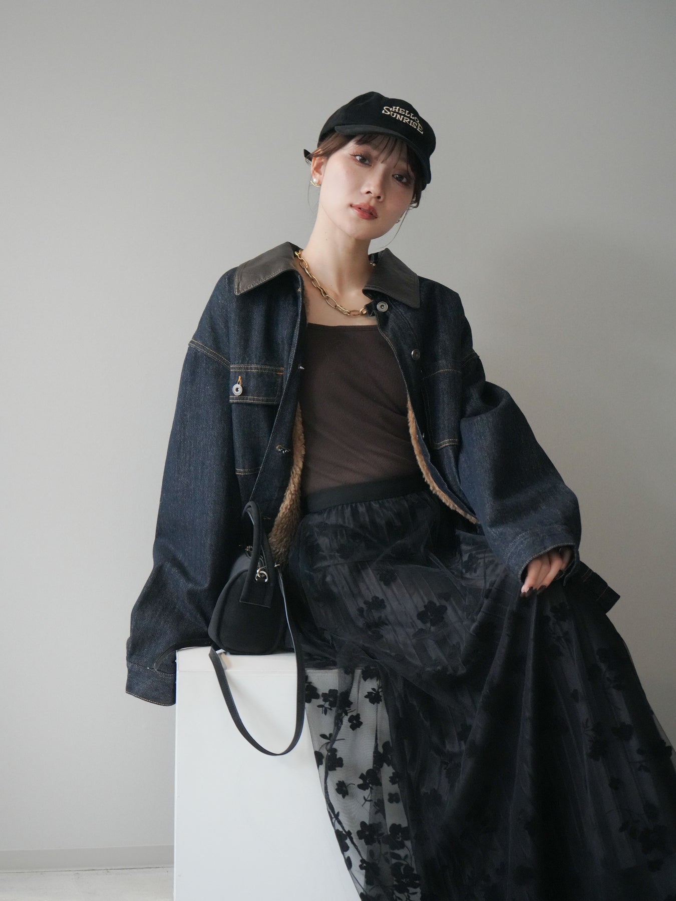 [SET]裏地ファーデニムフライトジャケット+フラワーフロッキーチュールプリーツスカート(2set)