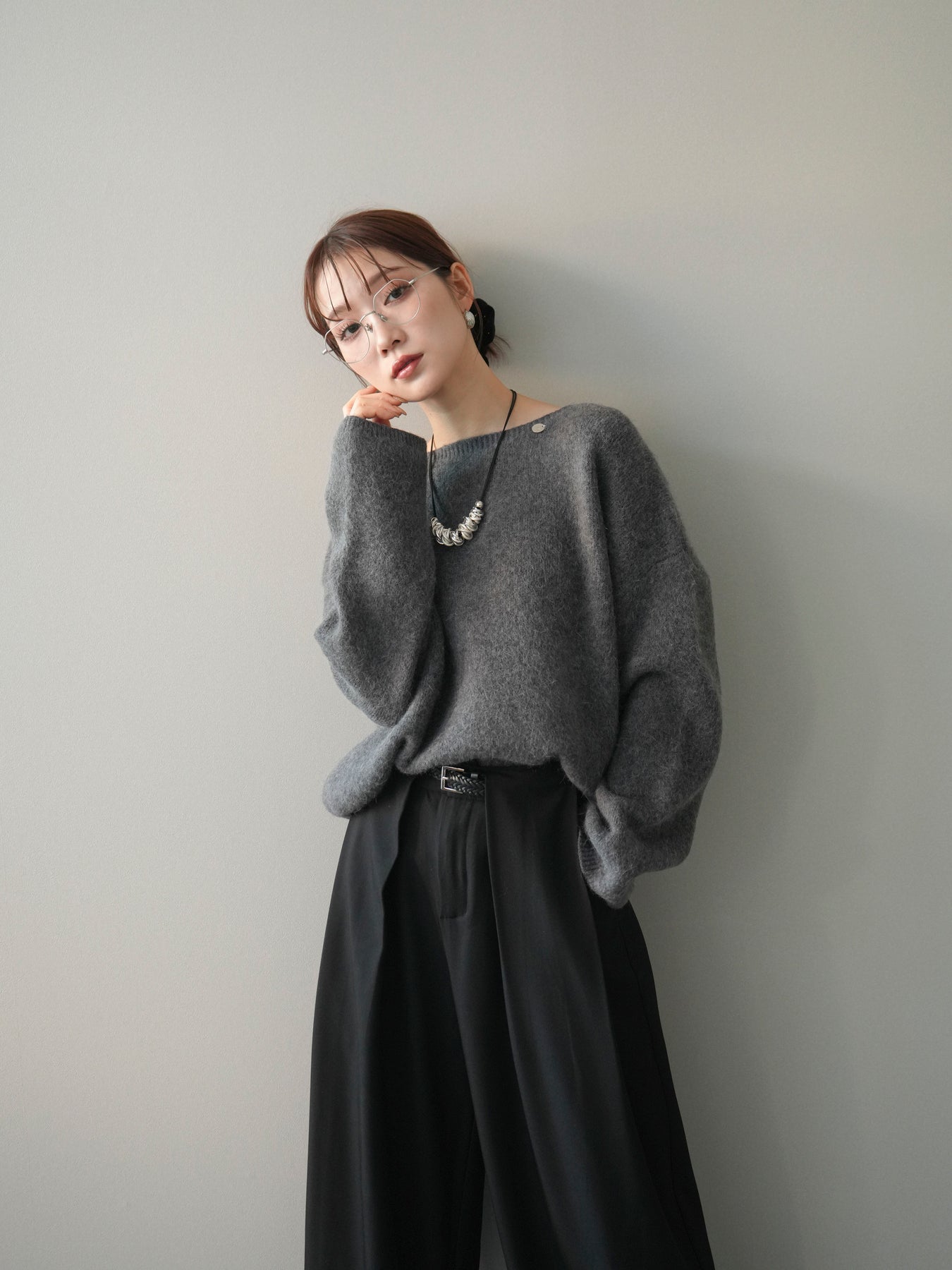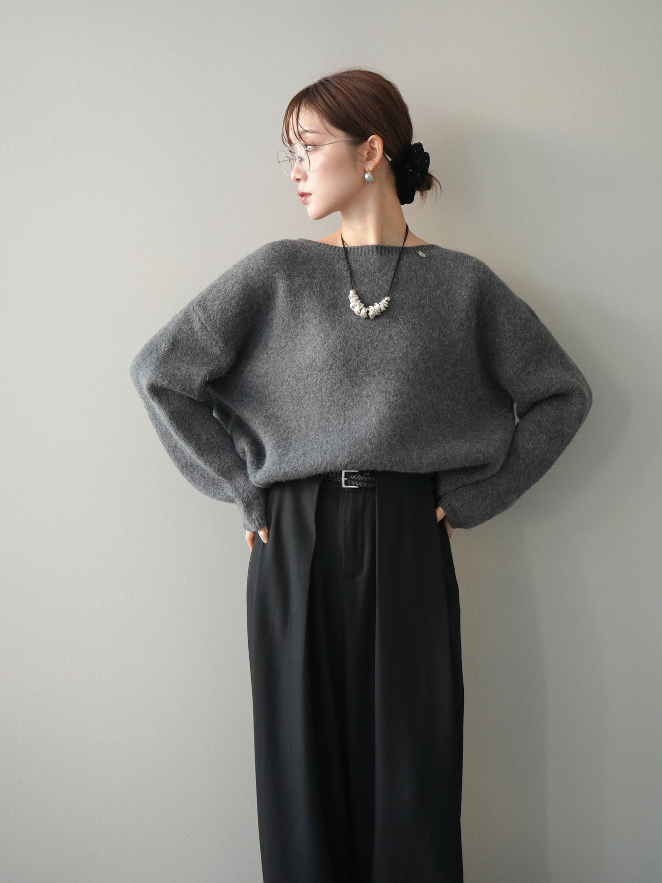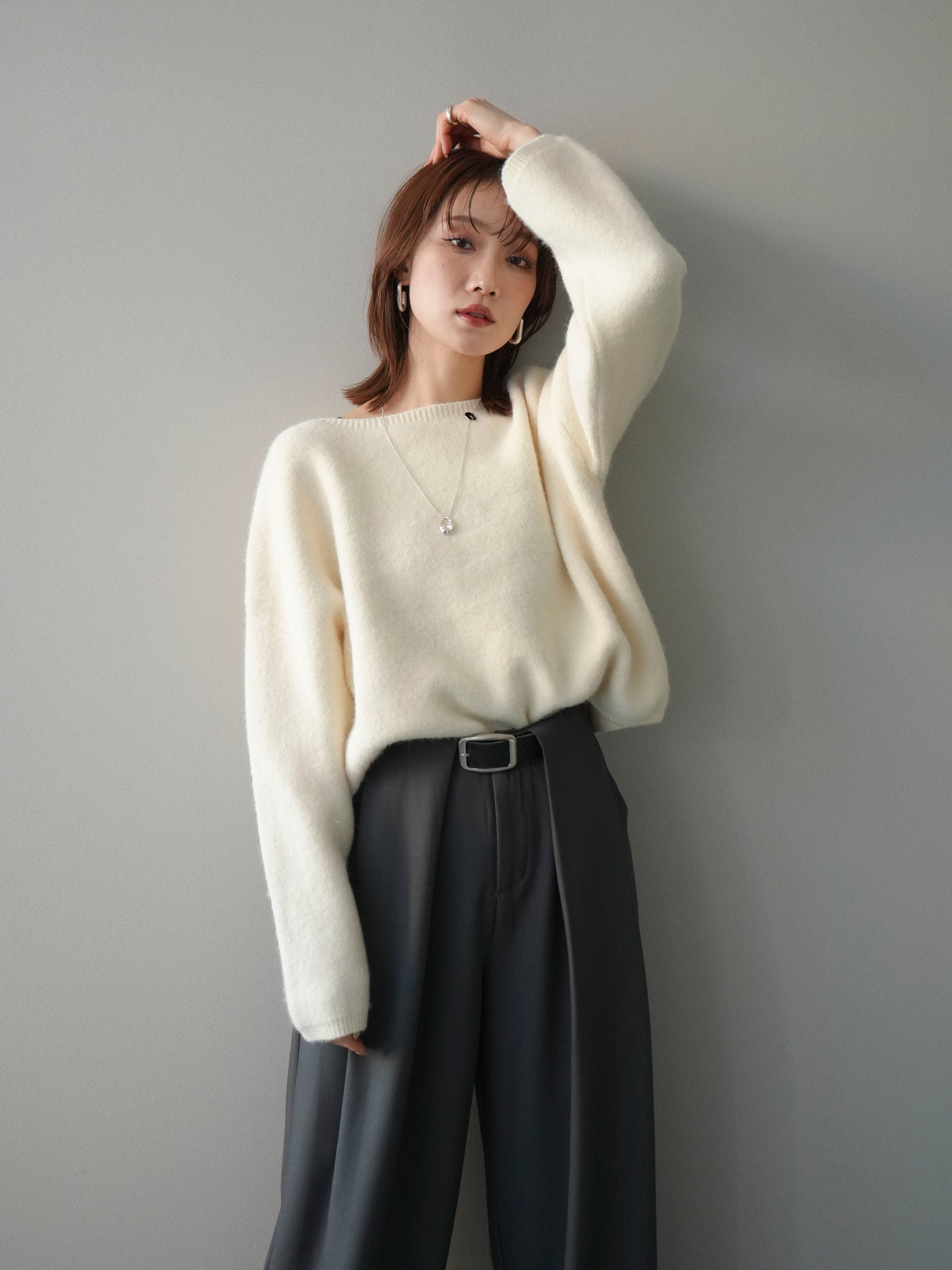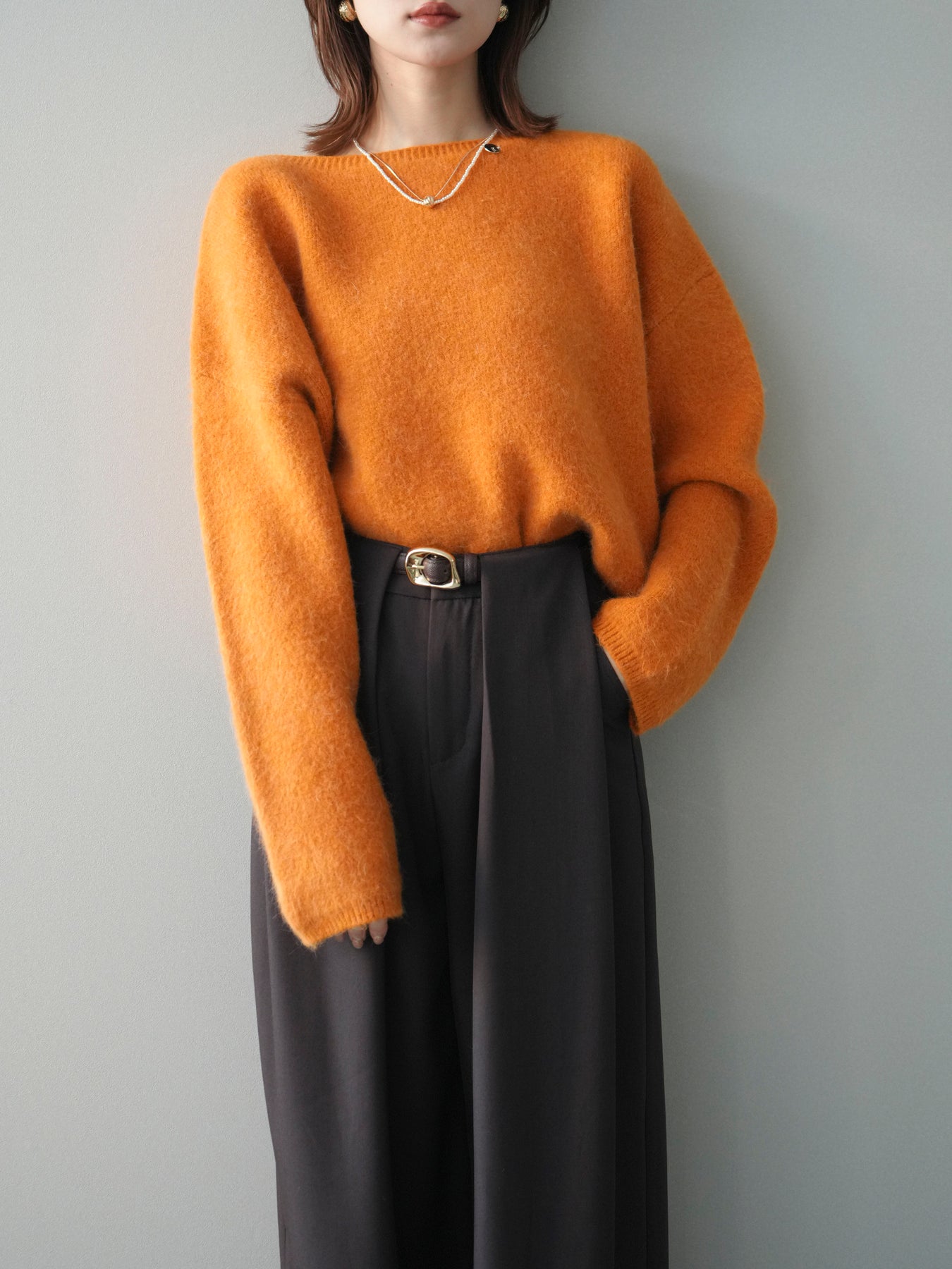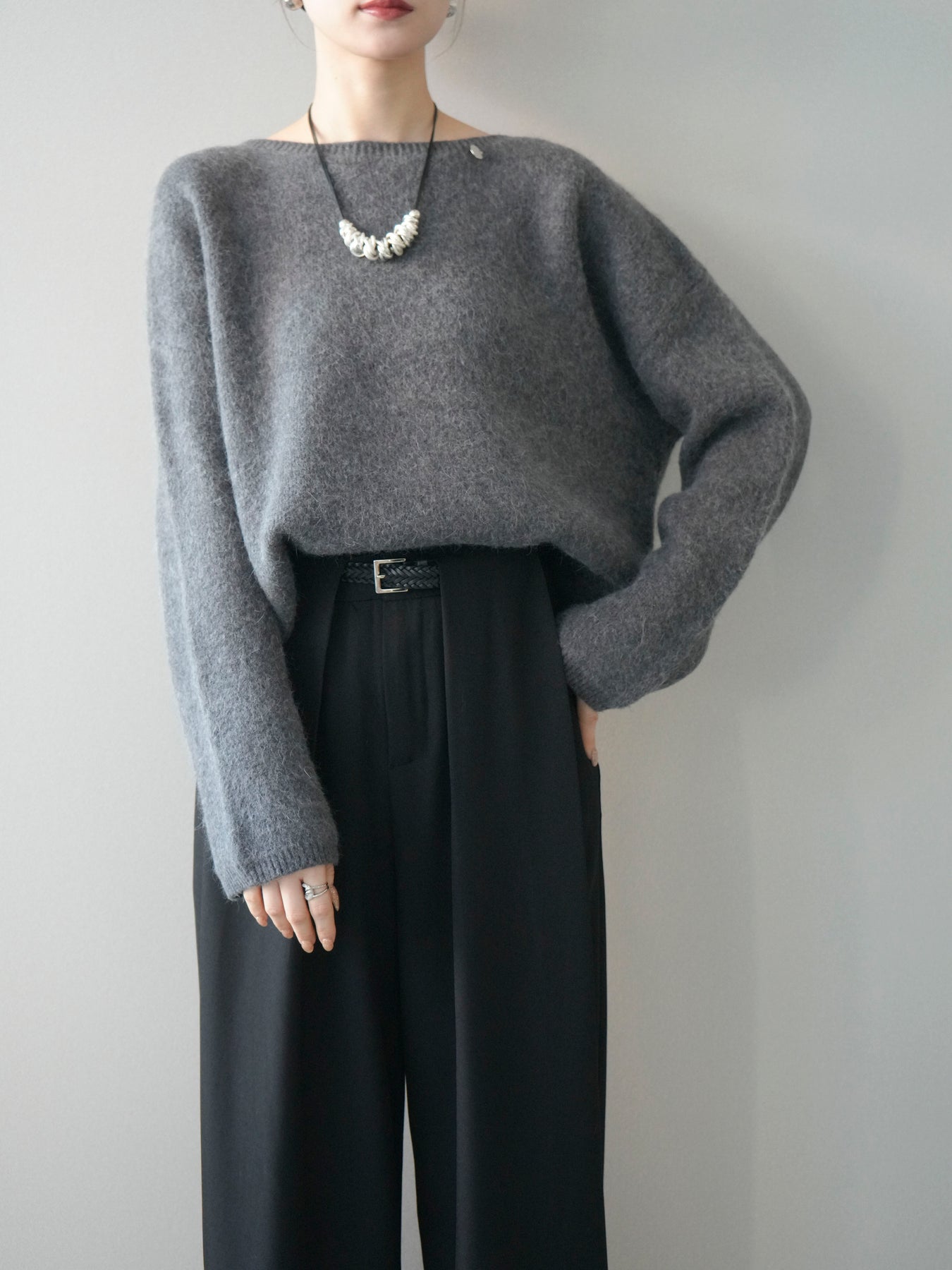 [SET]アンゴラタッチボートネッククロップドプルオーバー+選べるアクセセット(2set)