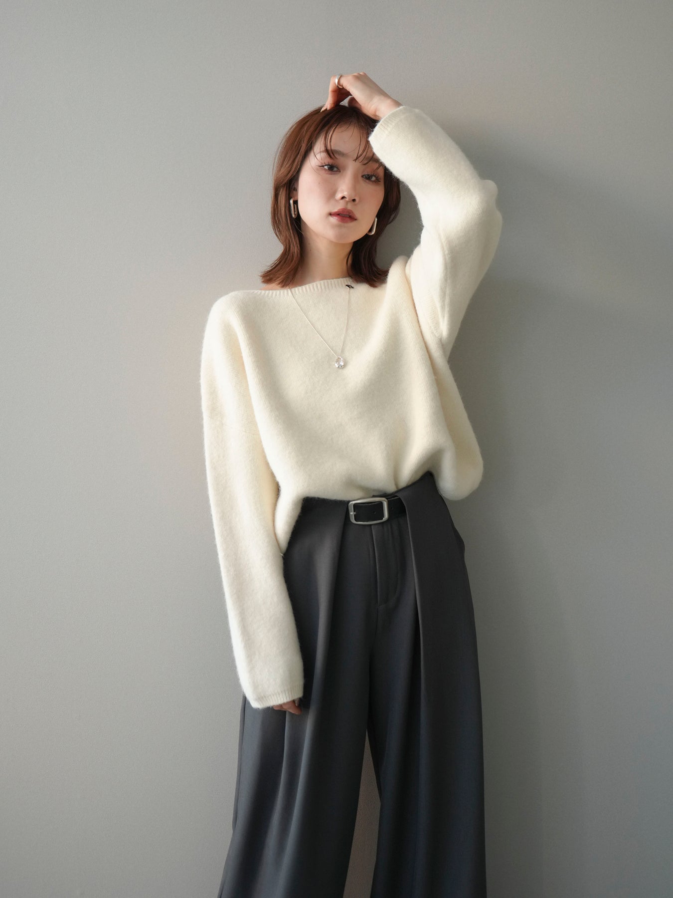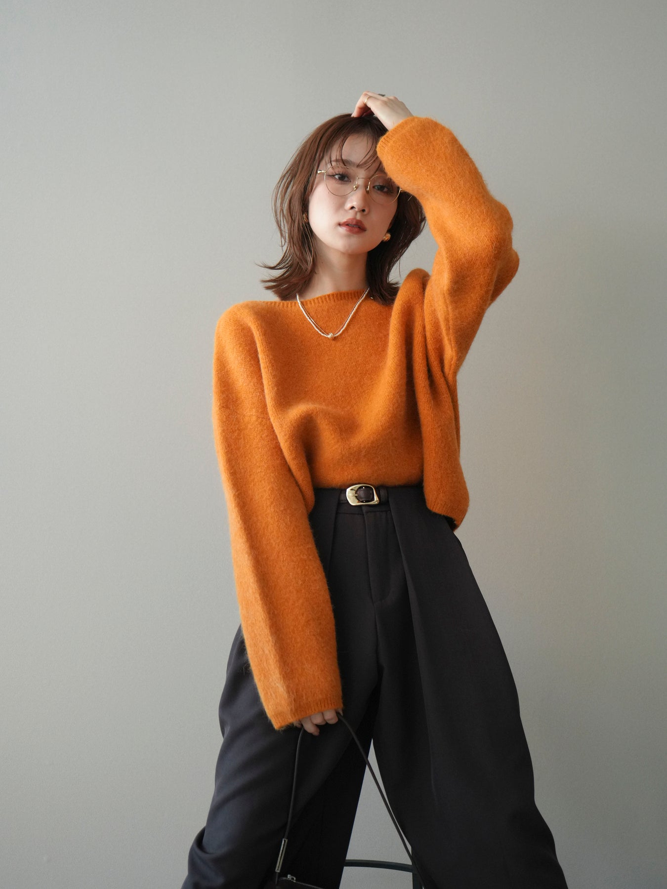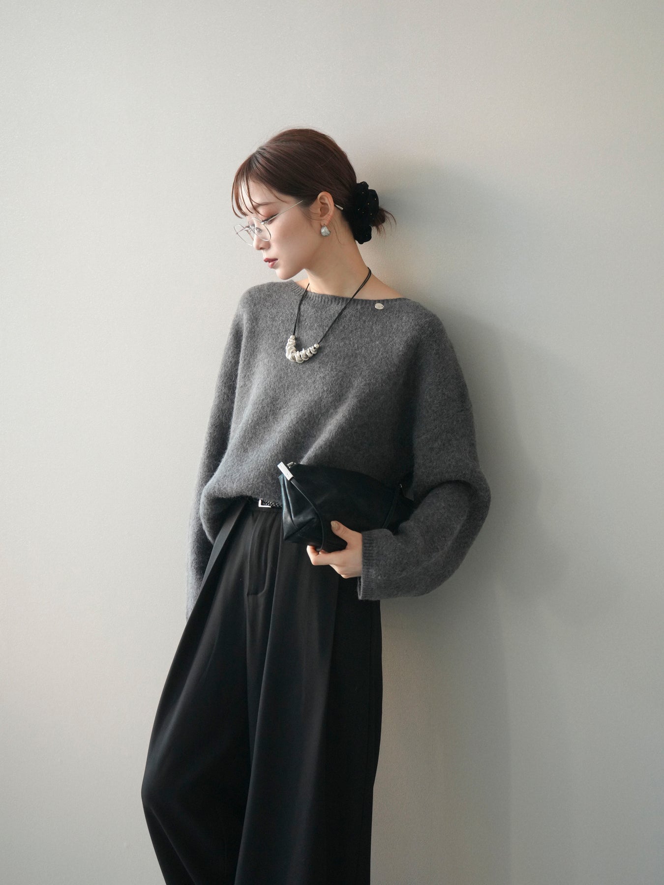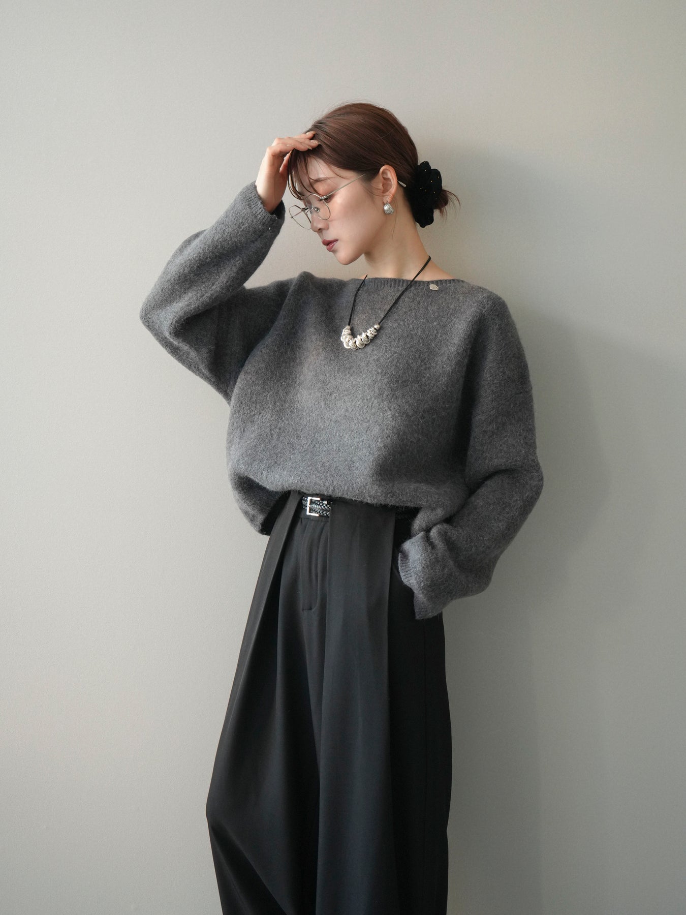 [SET]アンゴラタッチボートネッククロップドプルオーバー+選べるアクセセット(2set)