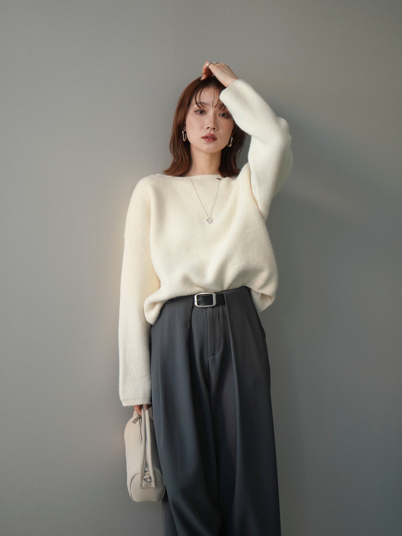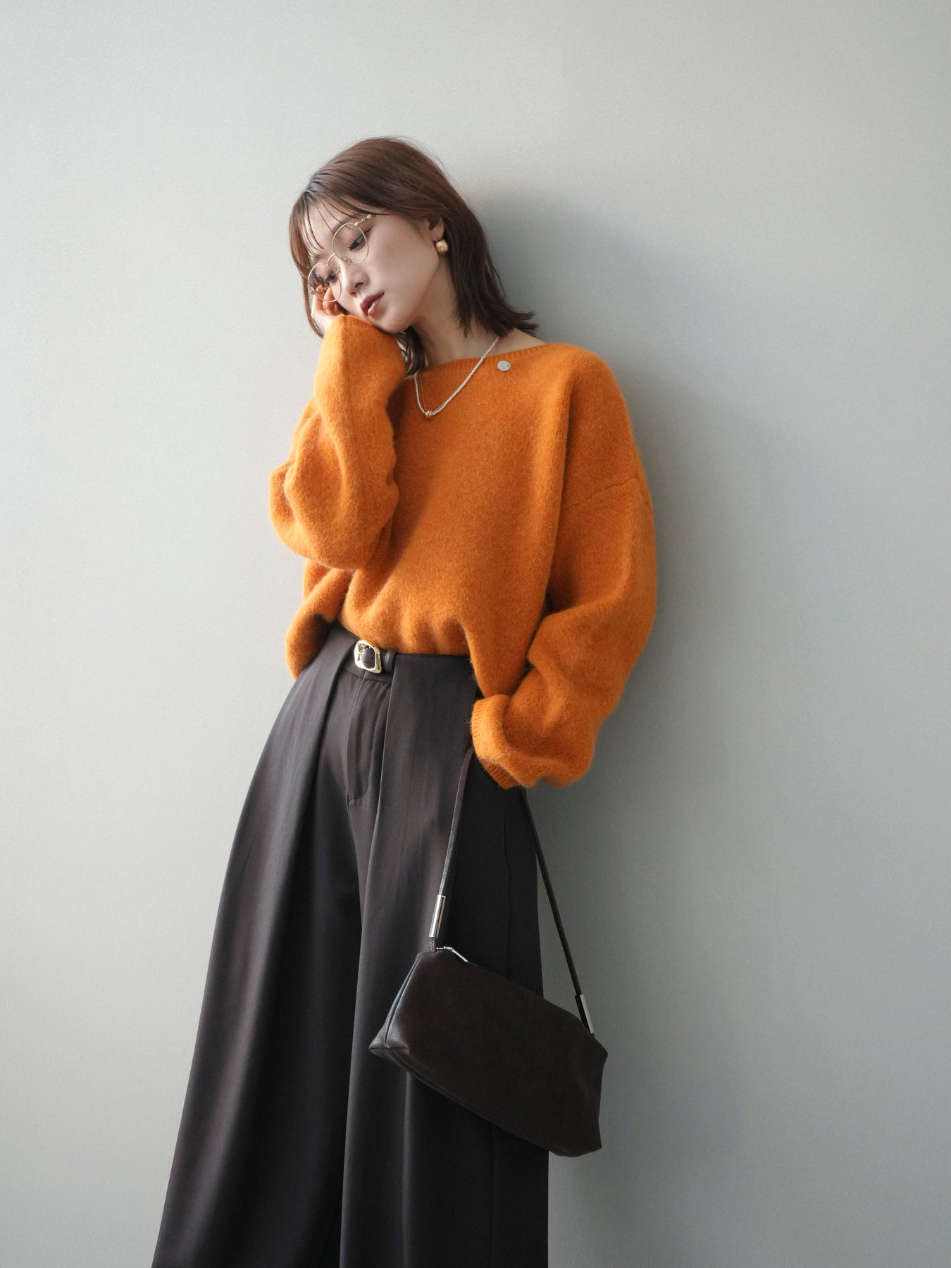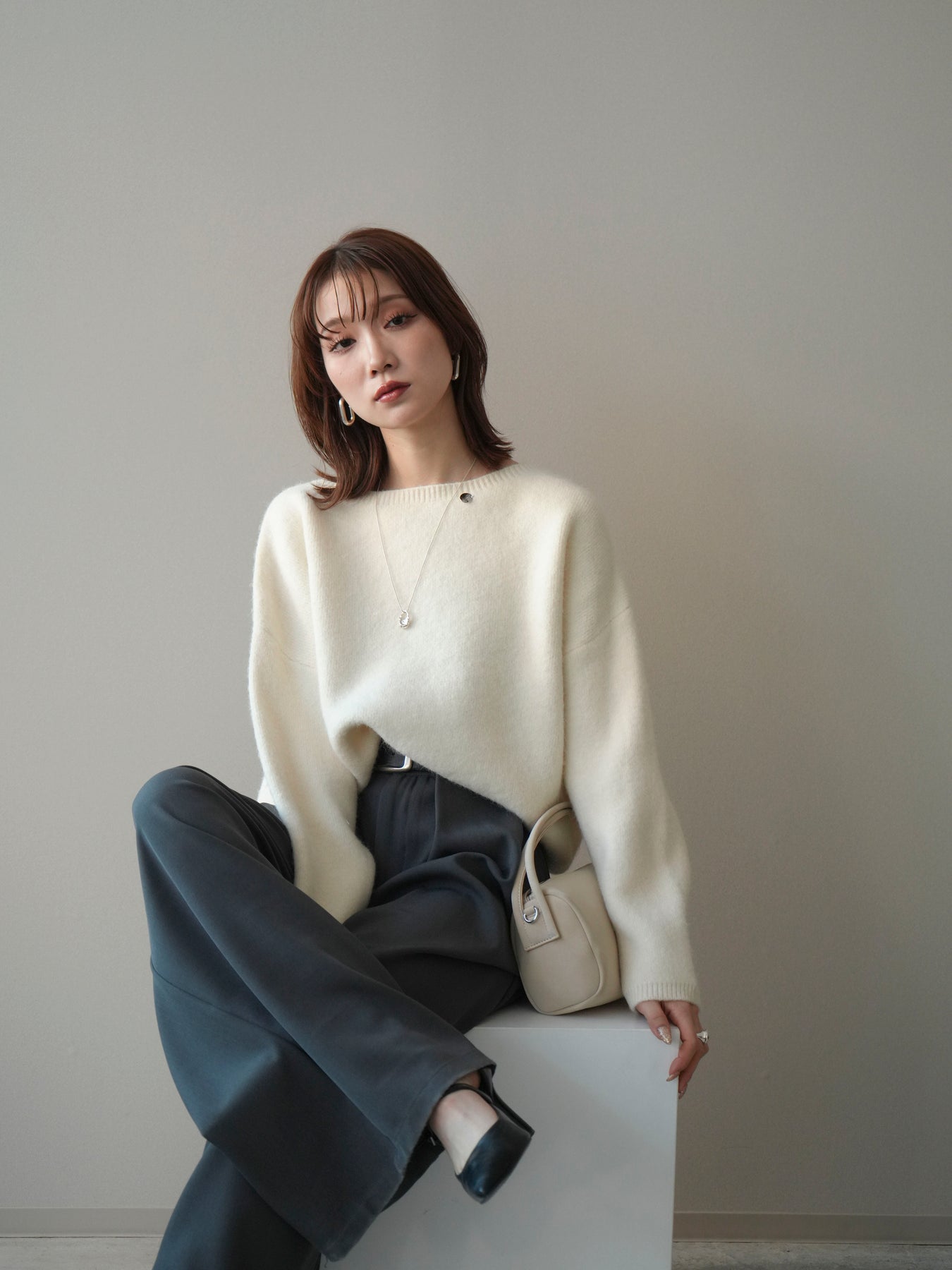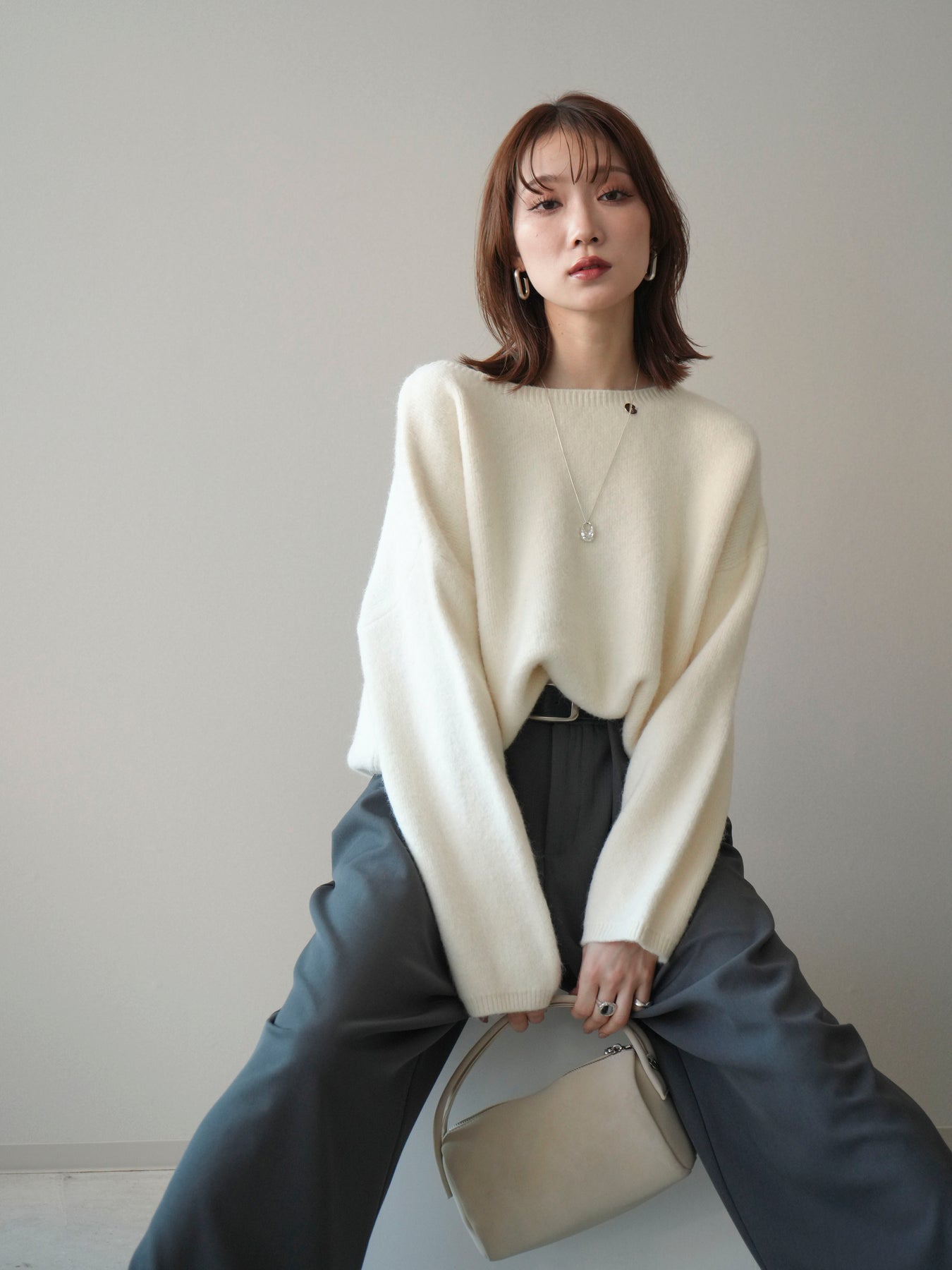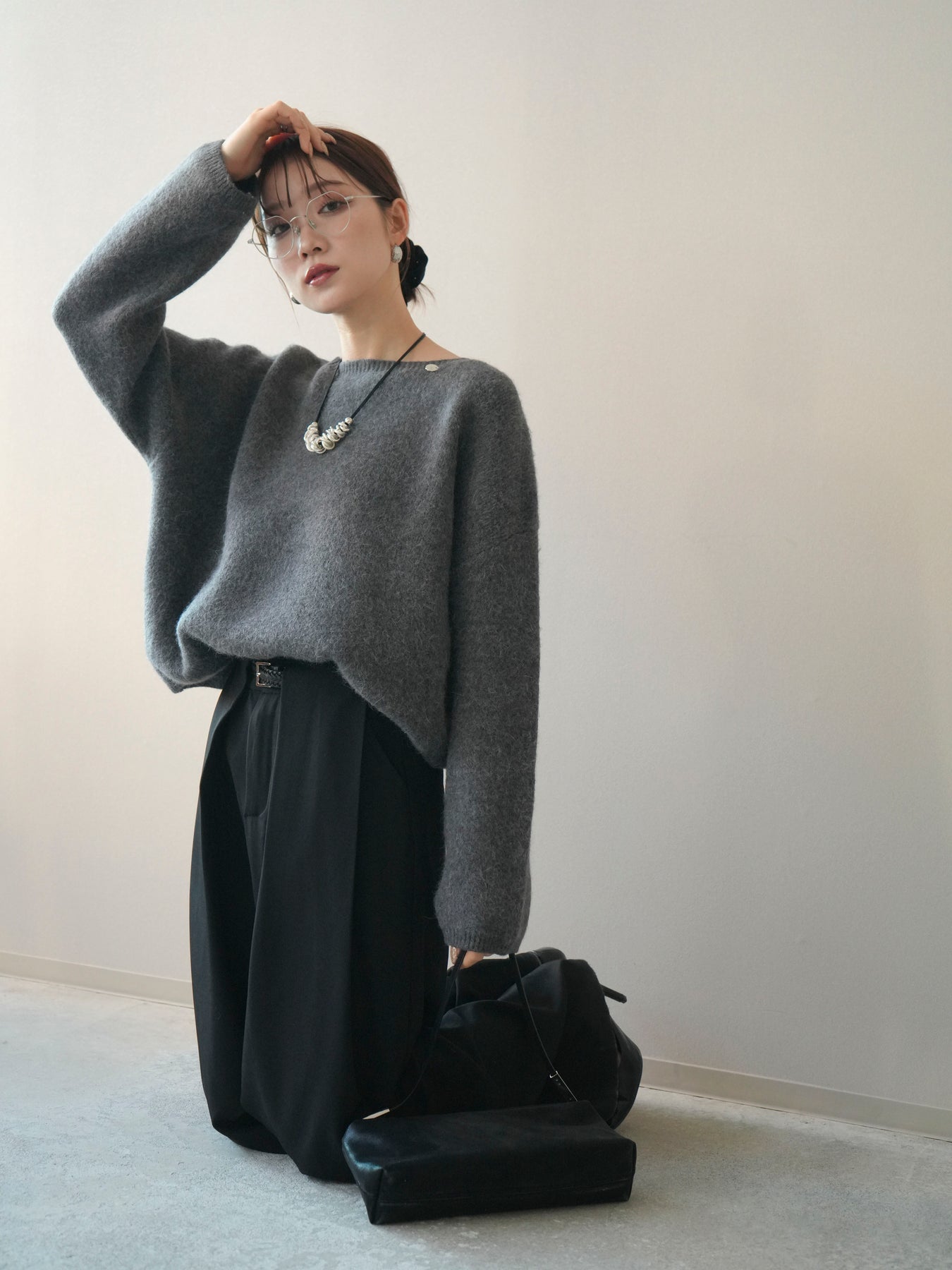 [SET]アンゴラタッチボートネッククロップドプルオーバー+選べるアクセセット(2set)