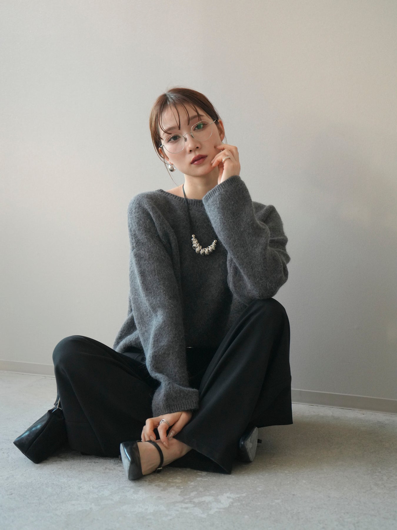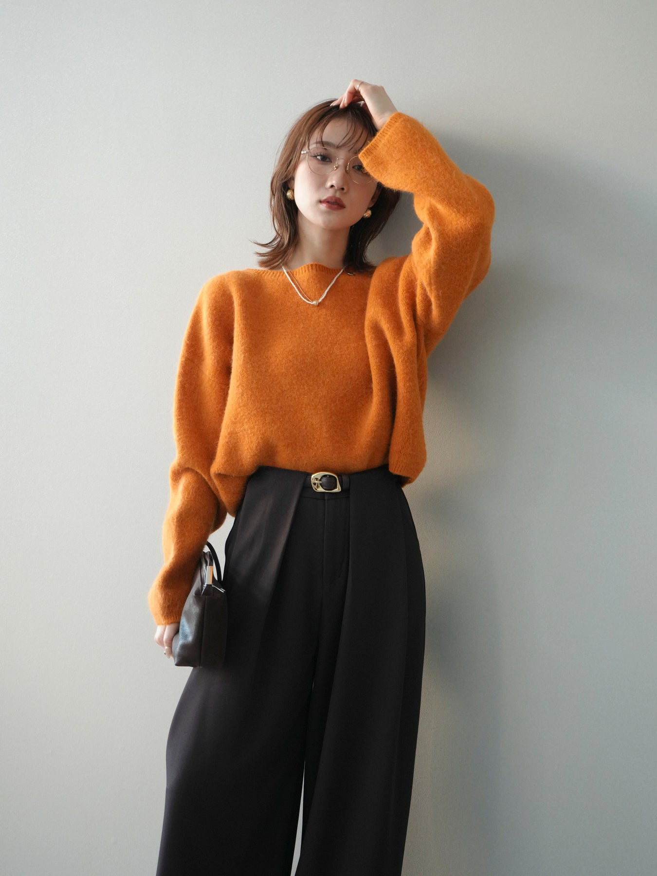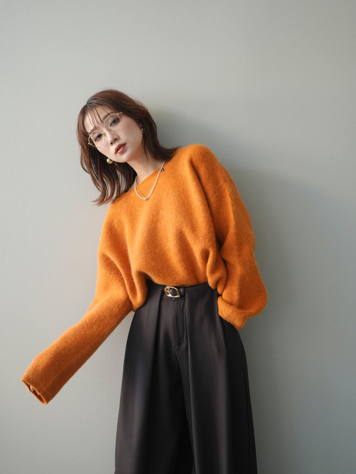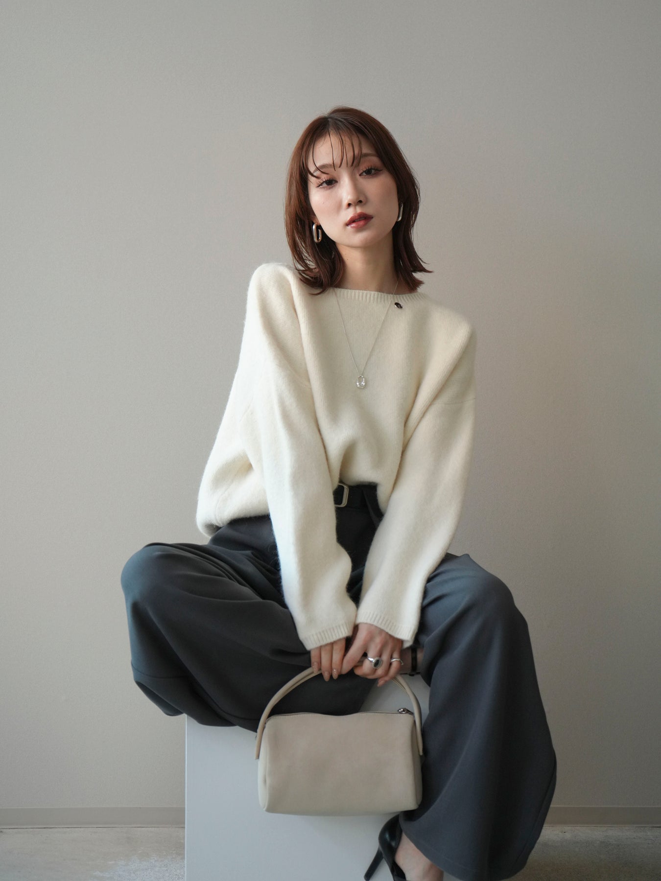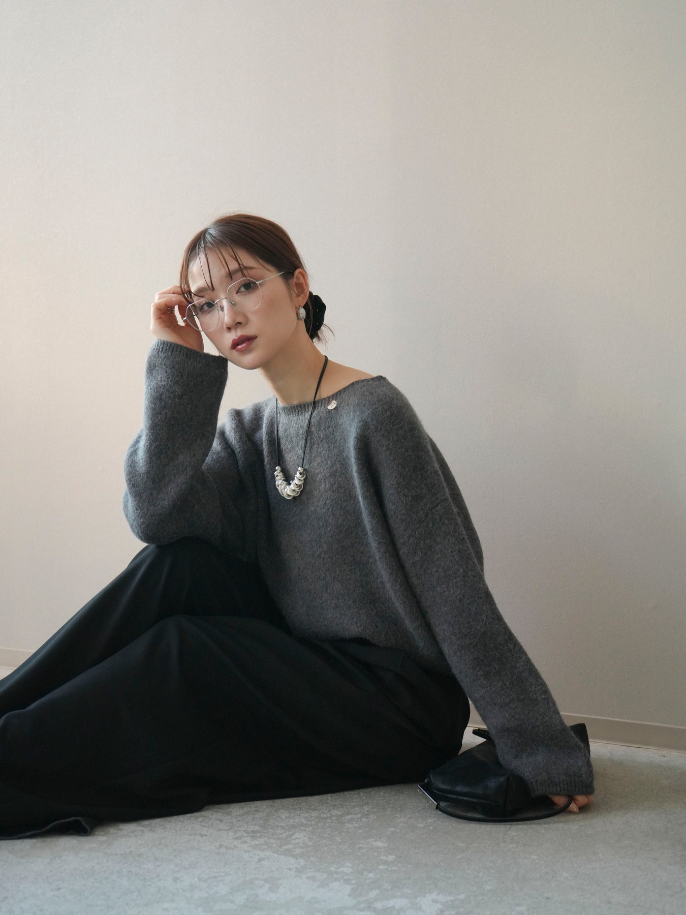 [SET]アンゴラタッチボートネッククロップドプルオーバー+選べるアクセセット(2set)
