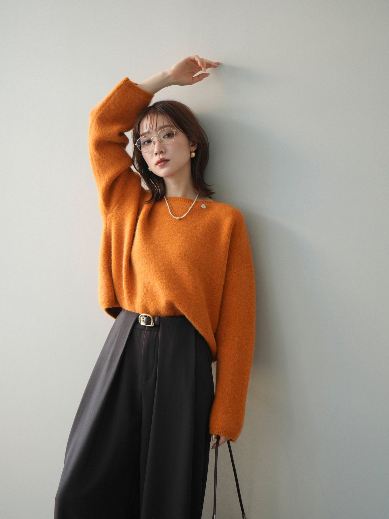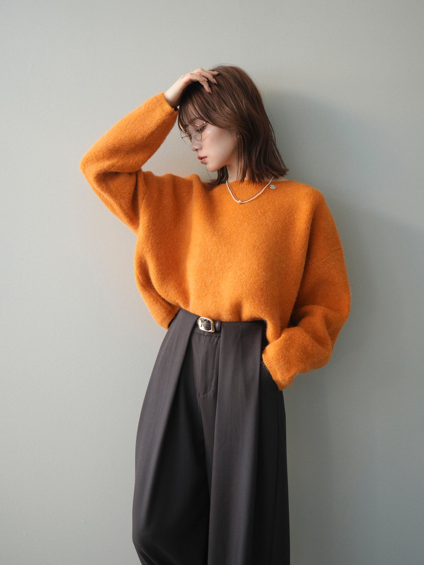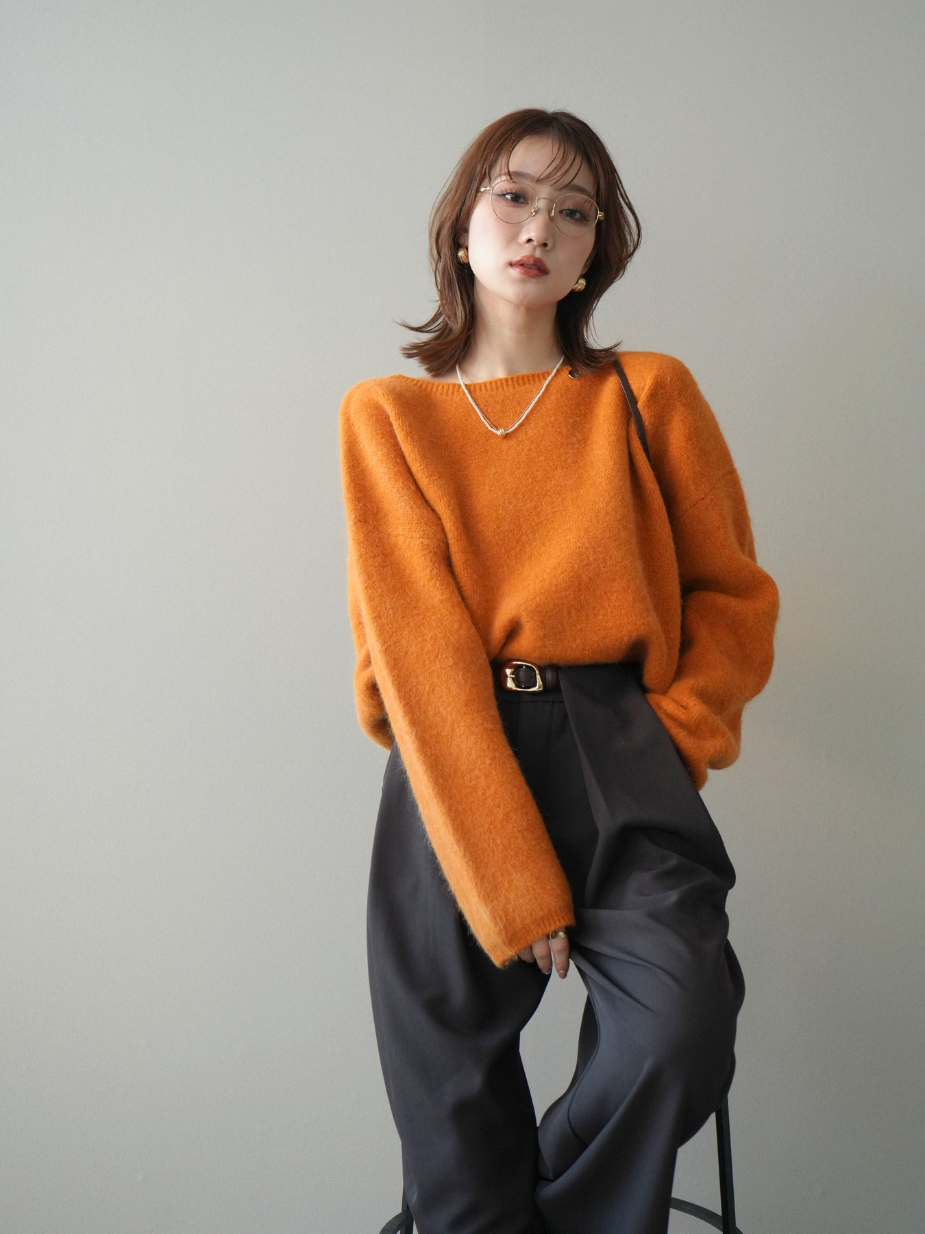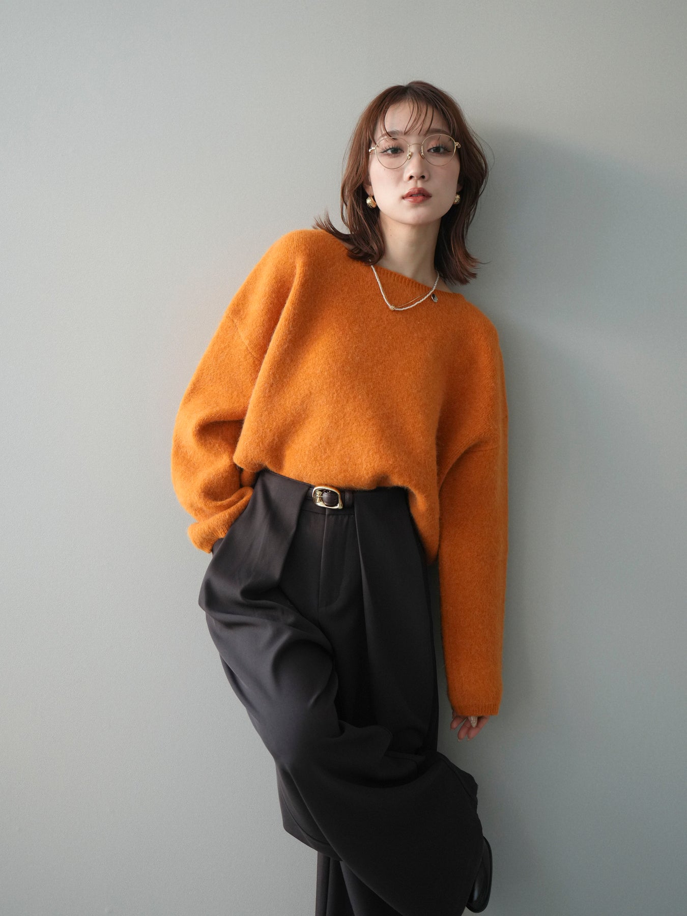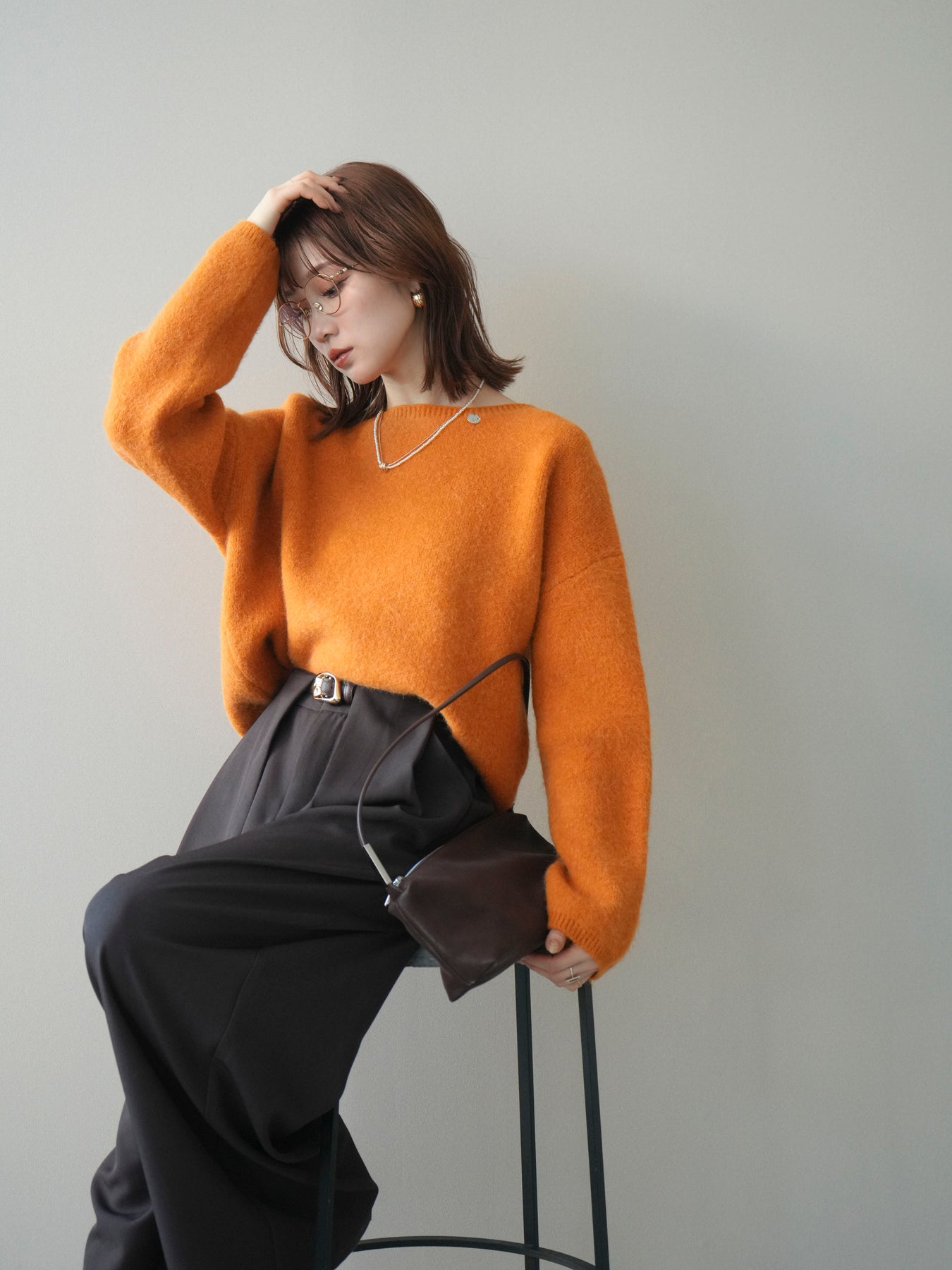 やわらかなアンゴラタッチの風合いが魅力のニットプルオーバー。 ふんわりとした起毛感が肌になじみ、シーズンムードを高めてくれる一着です。 首元をきれいに見せてくれるボートネックデザインが、程よい抜け感と上品さを演出。 コンパクトなクロップド丈でバランスが取りやすく、ハイウエストのボトムとも好相性です。 シンプルながらも素材感が引き立ち、デイリーからきれいめまで幅広く活躍します。