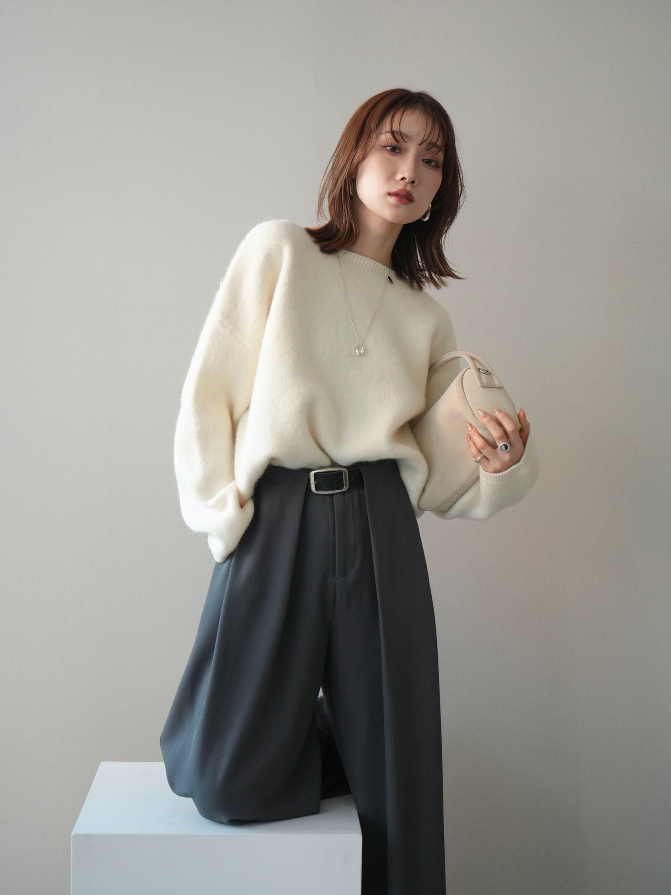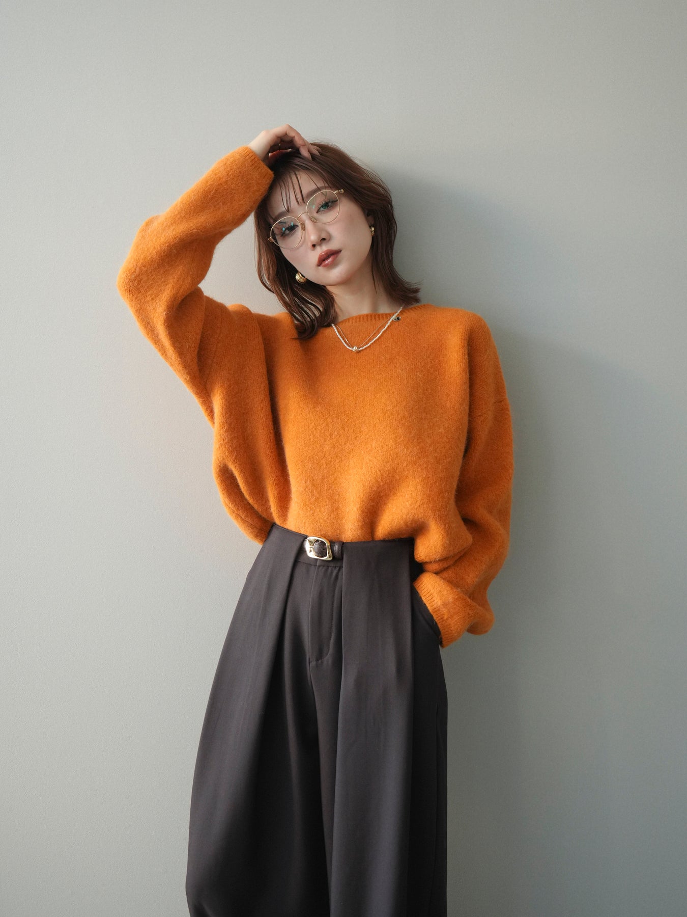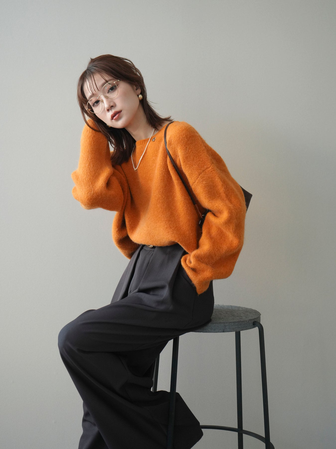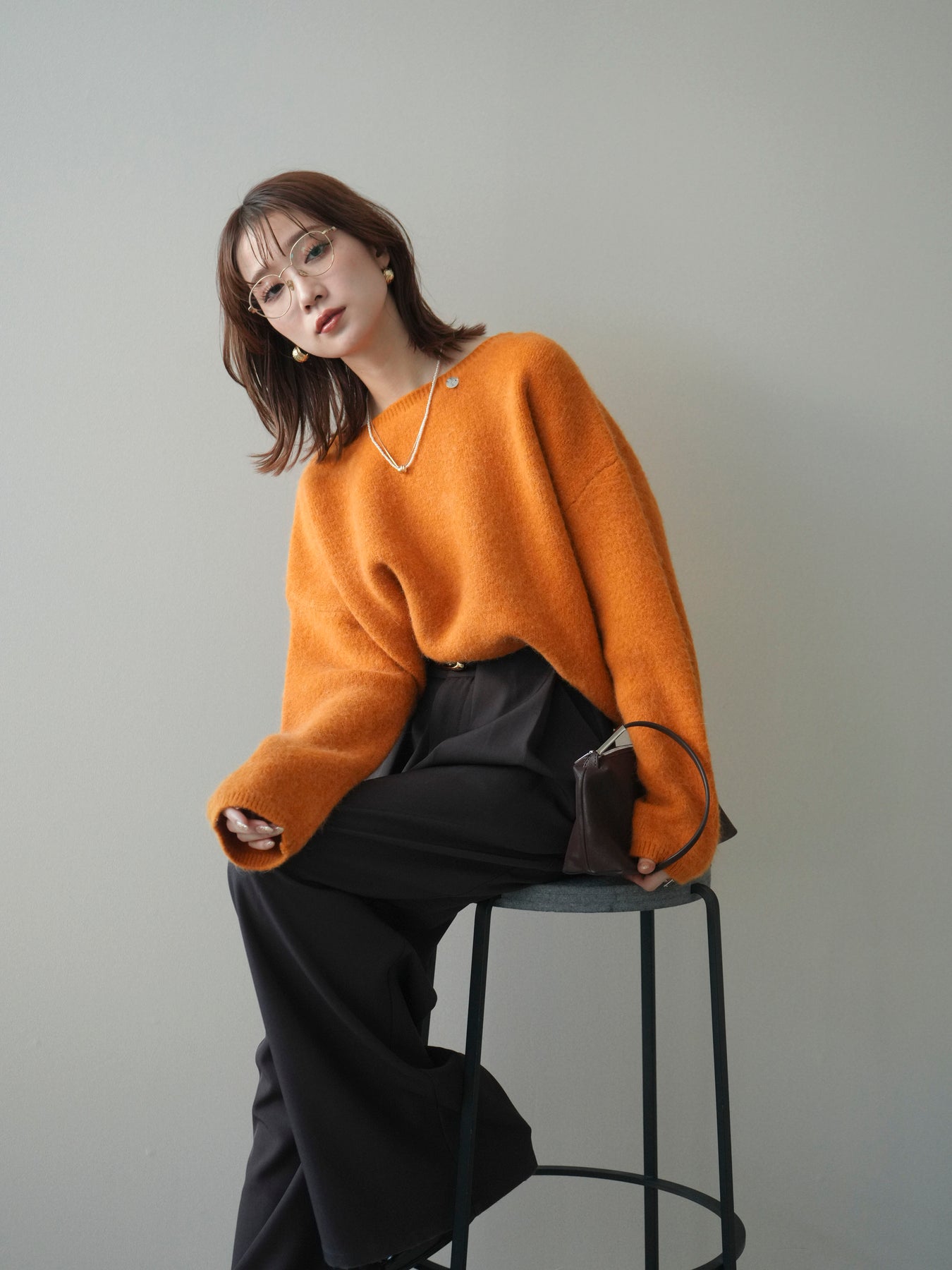 やわらかなアンゴラタッチの風合いが魅力のニットプルオーバー。 ふんわりとした起毛感が肌になじみ、シーズンムードを高めてくれる一着です。 首元をきれいに見せてくれるボートネックデザインが、程よい抜け感と上品さを演出。 コンパクトなクロップド丈でバランスが取りやすく、ハイウエストのボトムとも好相性です。 シンプルながらも素材感が引き立ち、デイリーからきれいめまで幅広く活躍します。