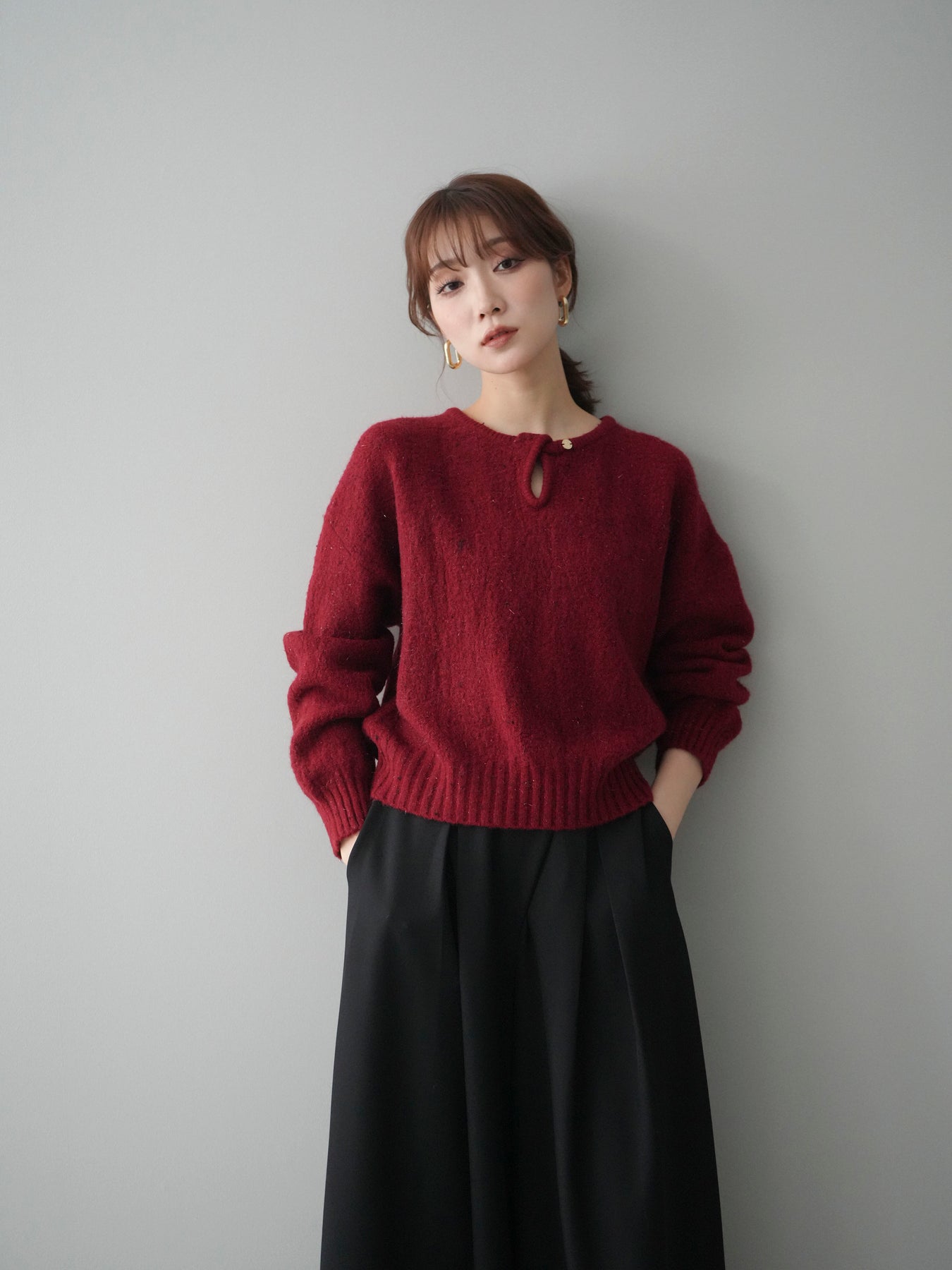 ◆ [予約]ツイストネックラメネップヤーンニットプルオーバー